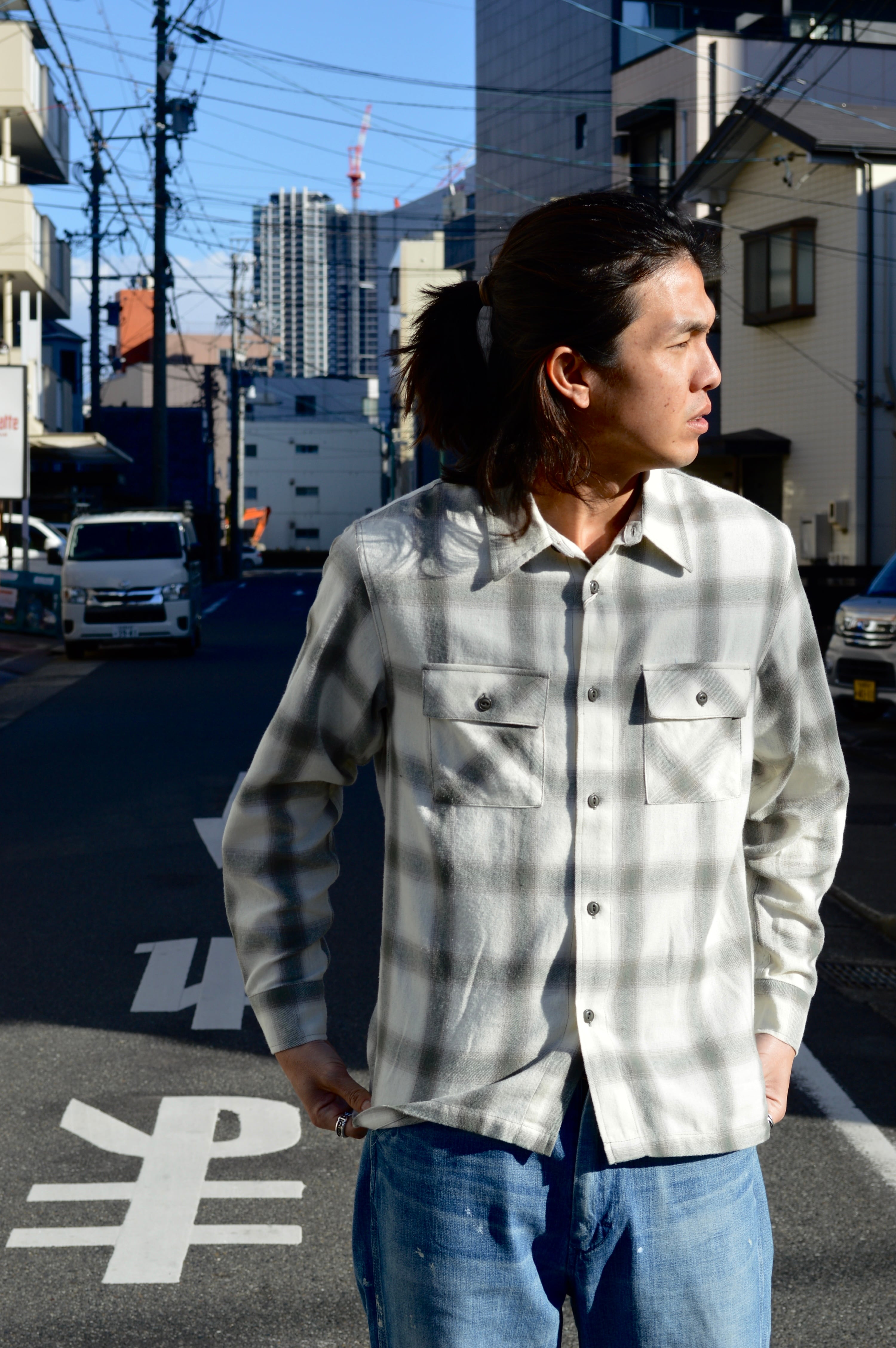 BIG MIKEの代名詞とも言えるチェックシャツ。その中でもフェードのチェック柄で起毛生地であるフランネルシャツをセレクト。