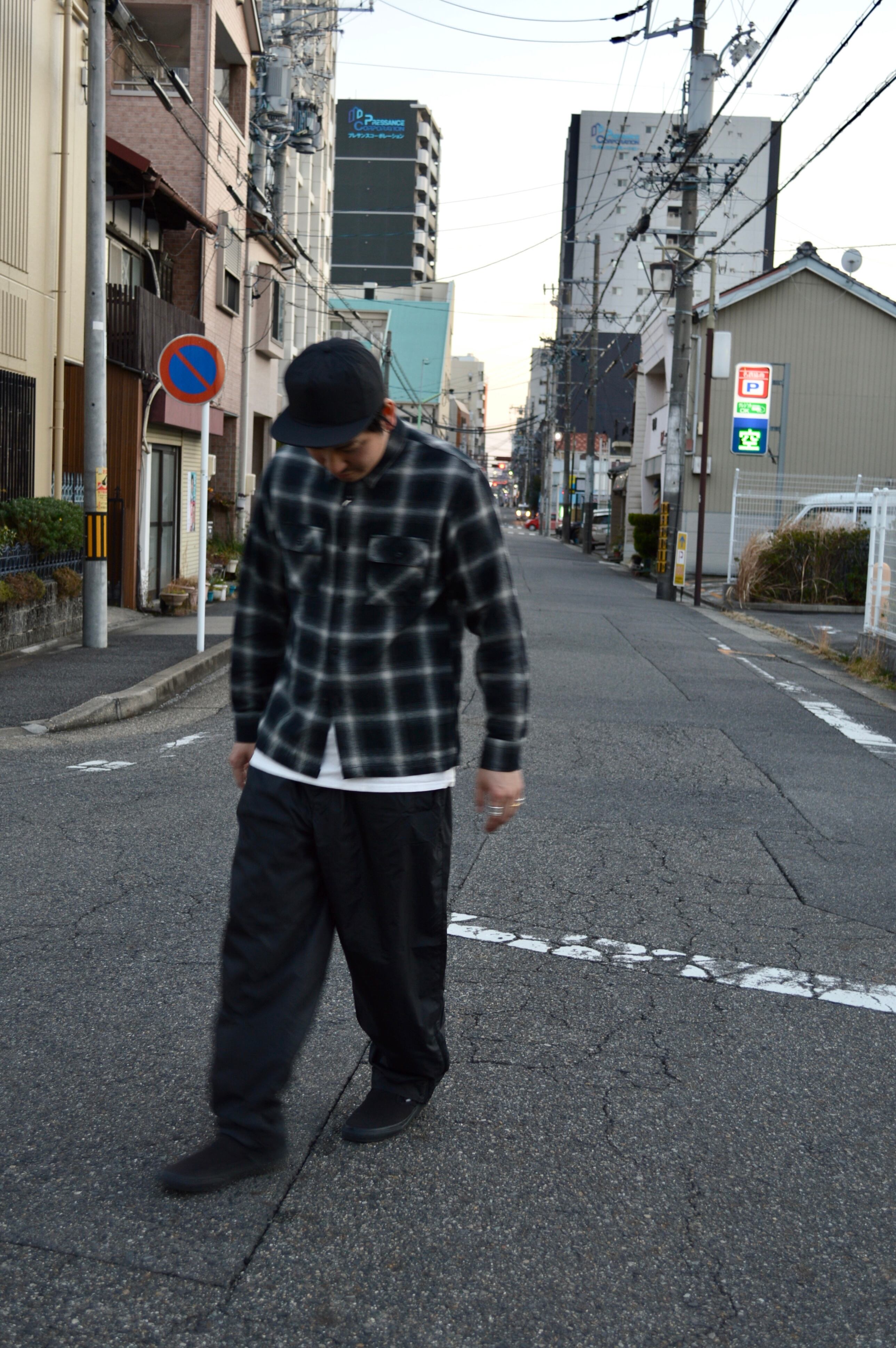 ややワイドルーズなシルエットがファッションとして活用しやすいナイロンパンツです。