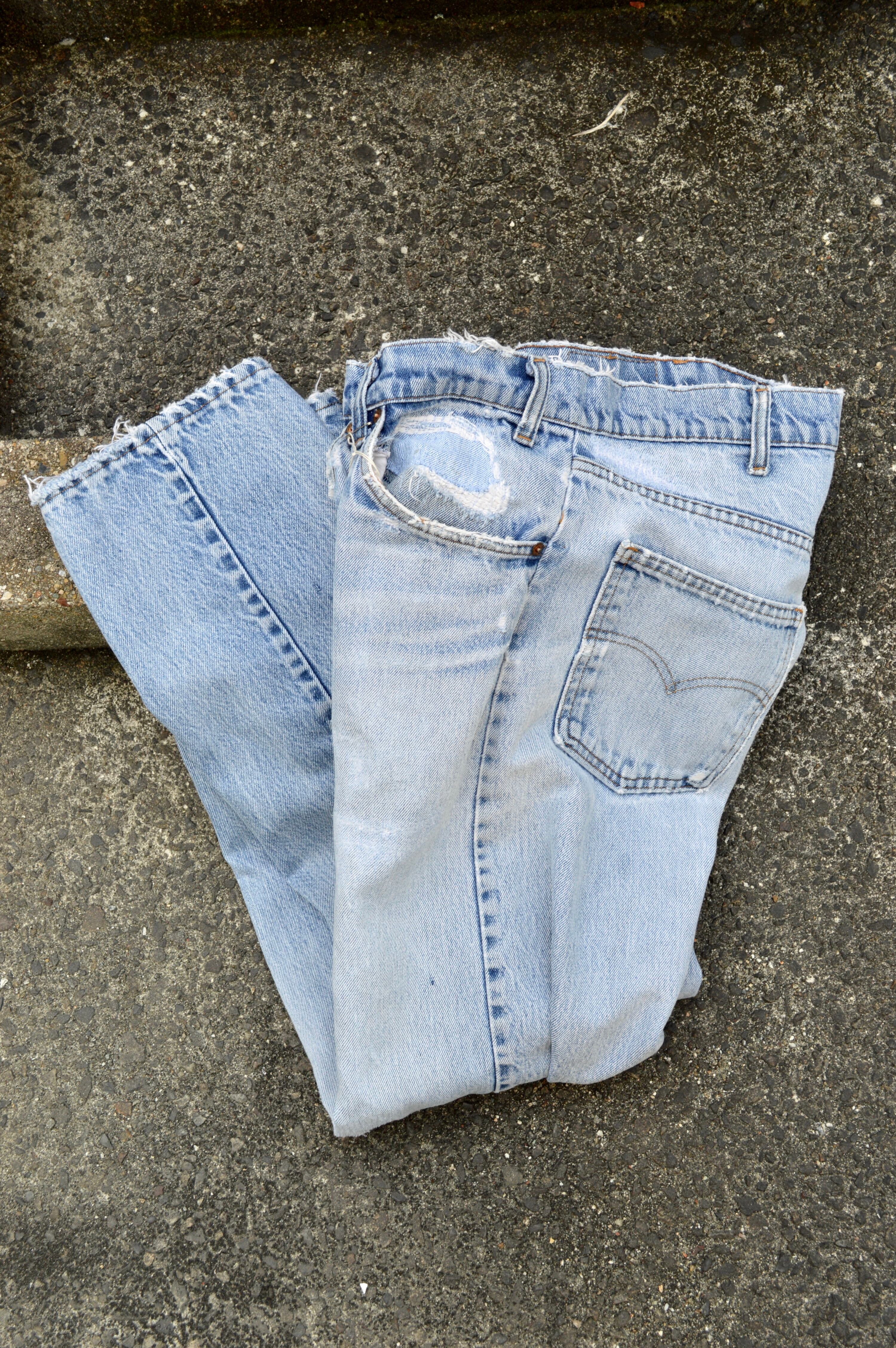 激しく抜けた色、自然にできた全体のダメージ、経年変化で良い仕上がりになった風合いが絶妙の505。