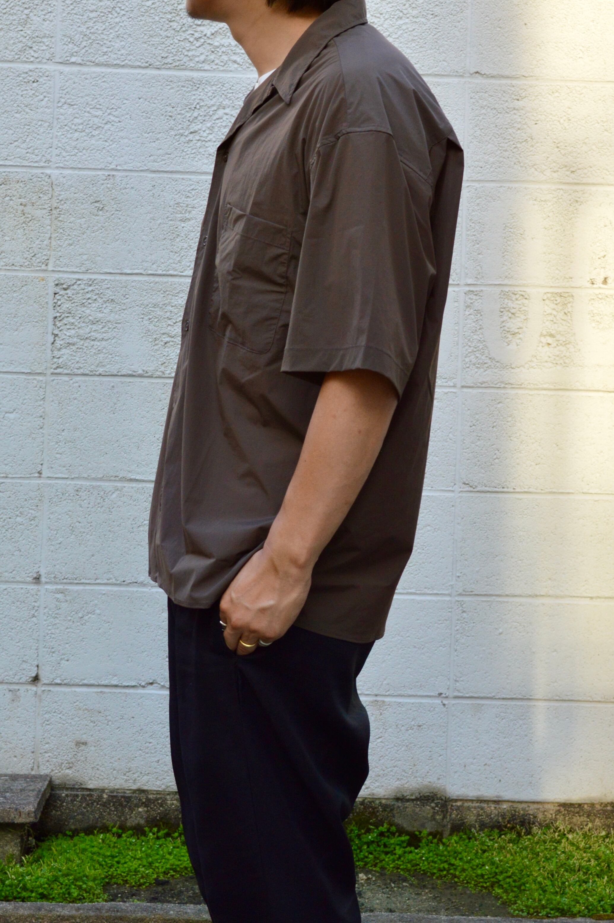 サマーシーズンで使えるダークブラウンのシックな半袖ナイロンシャツになります。