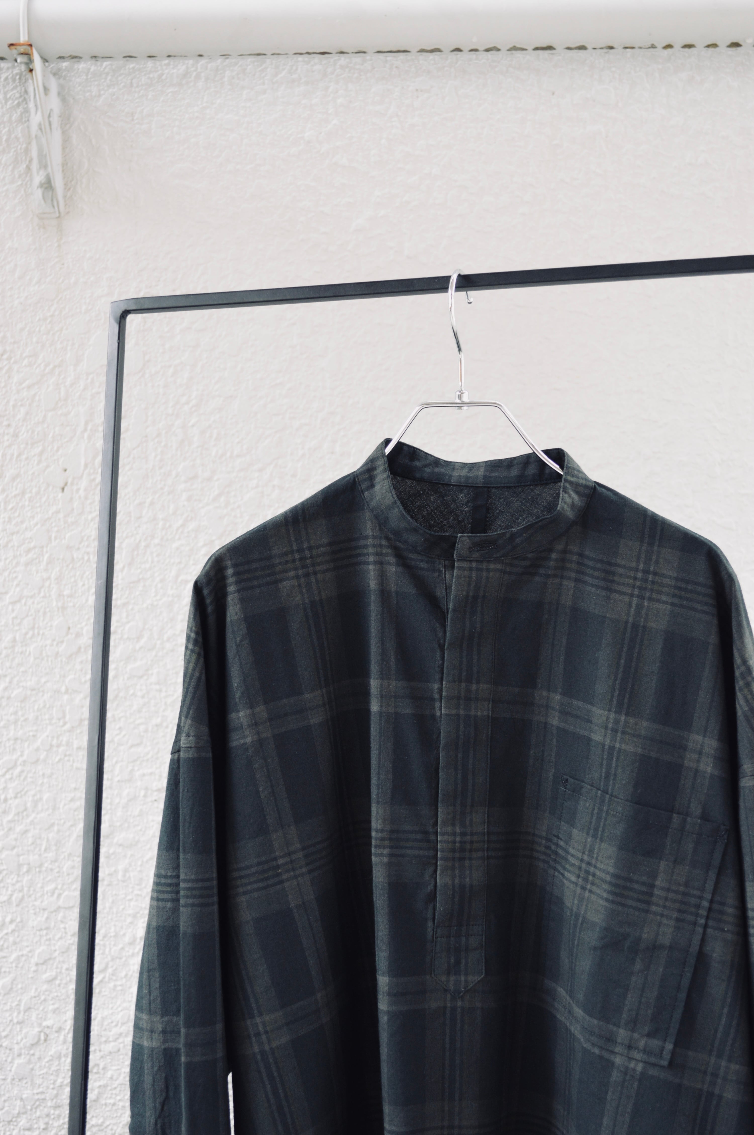 墨汁染のマドラスチェックプルオーバーシャツ。