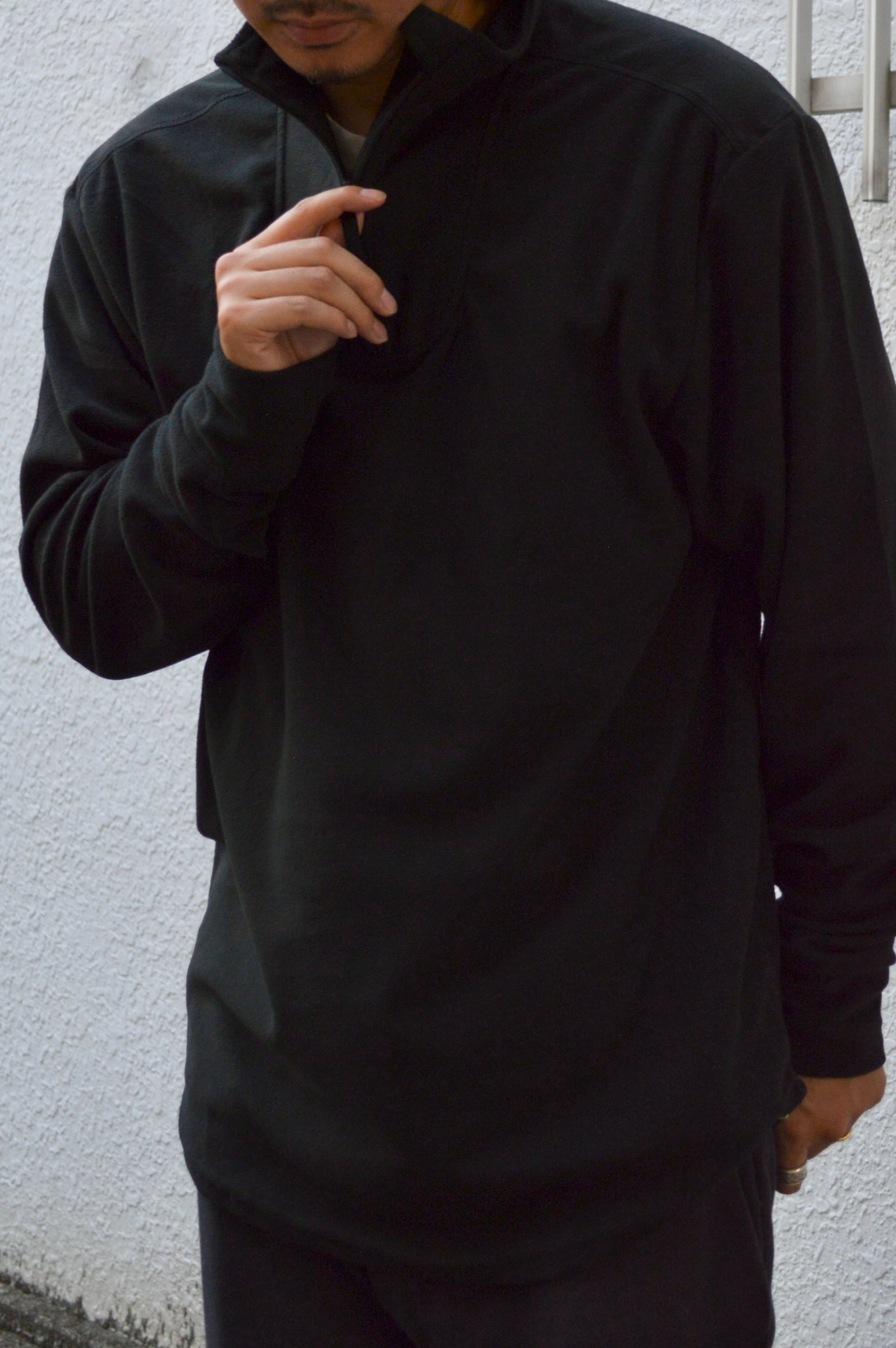 ビンテージのスリーピングシャツやミリタリーウェアと異なり、サイズ感は現代の仕様で、薄手フリースならではの立体的なドレープ感が際立つフリースサーマルです。