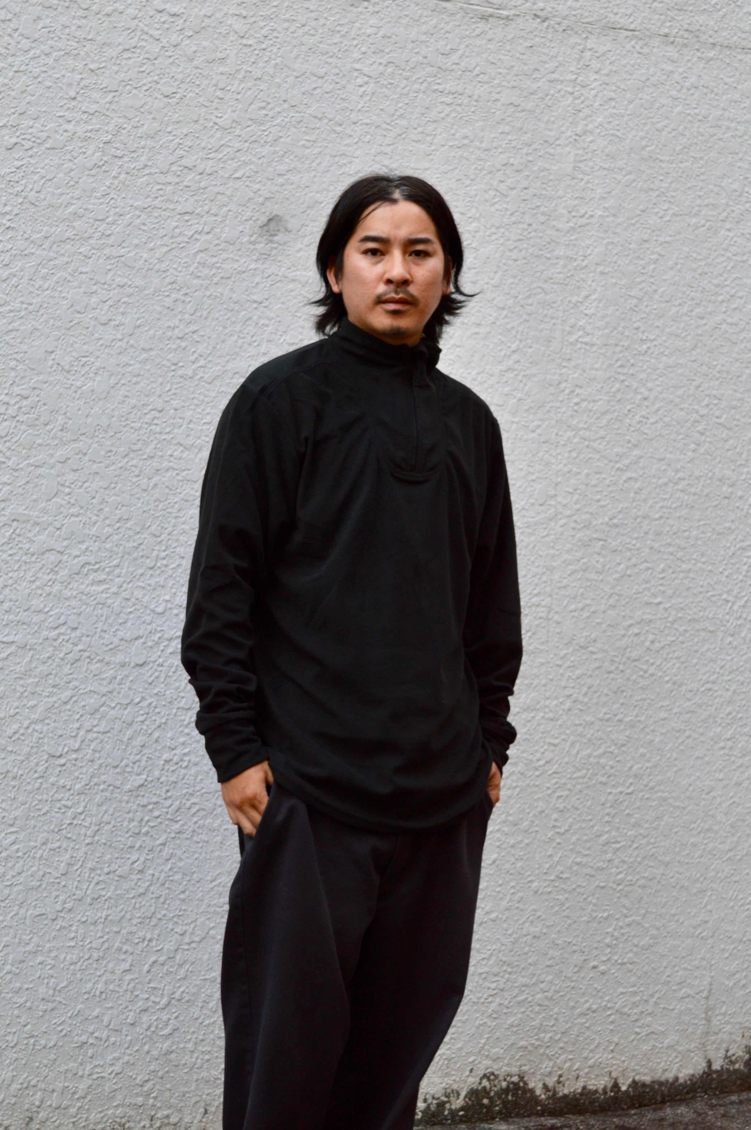首元はハーフジップのハイネック仕様で、ミリタリーウェアながらに品のあるデザインでファッションに落とし込みやすいモデル。背面のラウンドロングテイルもミリタリーらしい仕様となり、ユーロミリタリーならではのデザイン。