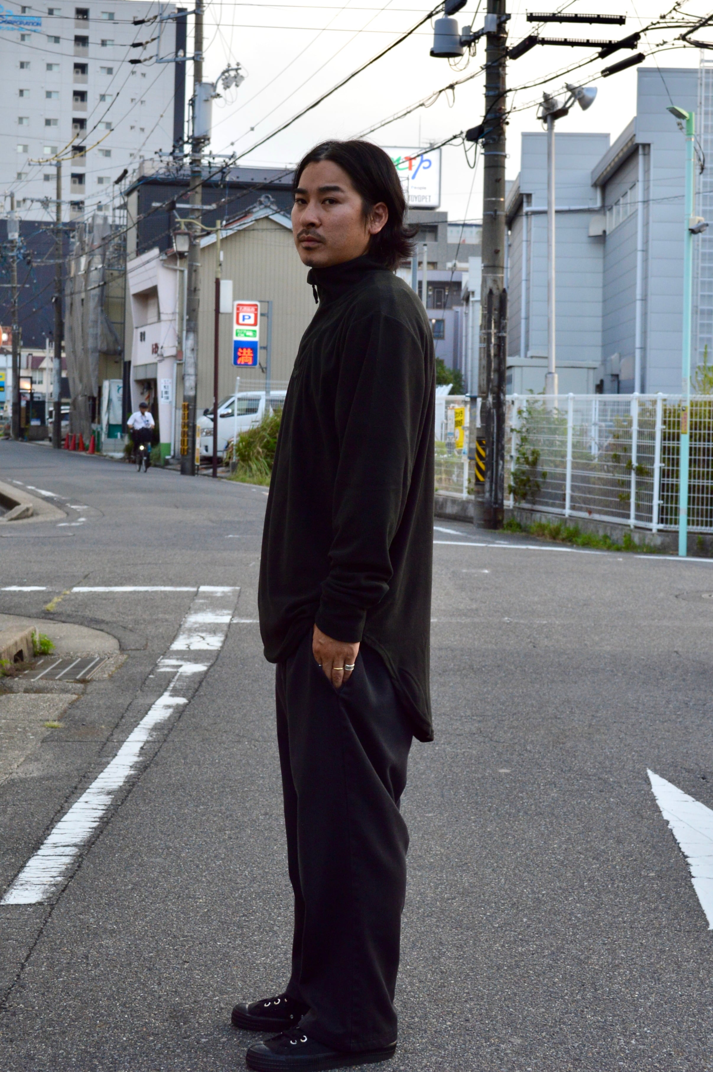 (Lで通常着用/XLでややオーバーシルエットに着用)