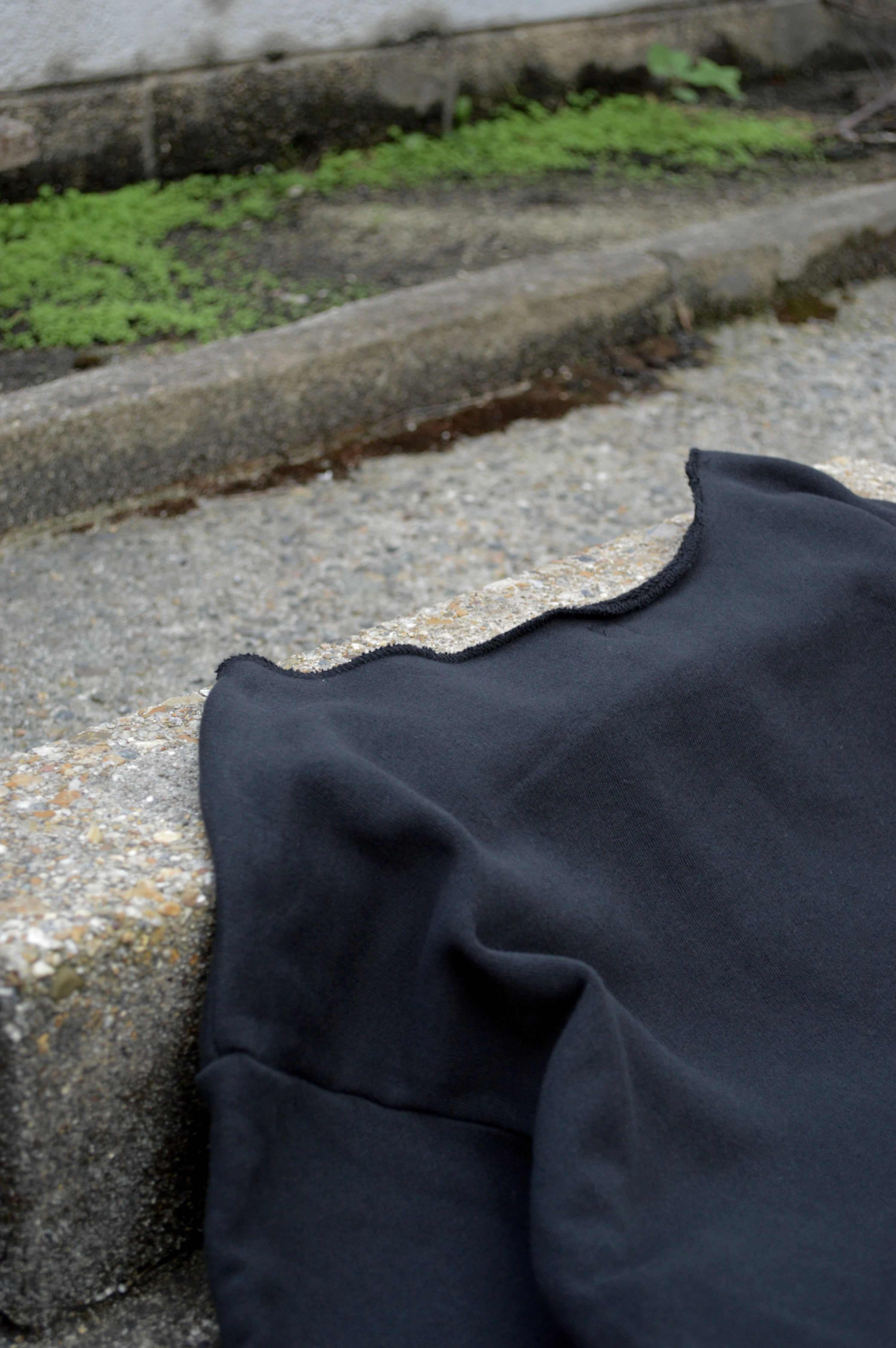 ネック部分、袖先、裾は切りっぱなしのロック仕様と特徴がありながら、シンプルなデザインにより、年齢性別問わず着用できる汎用性あるアイテムです。