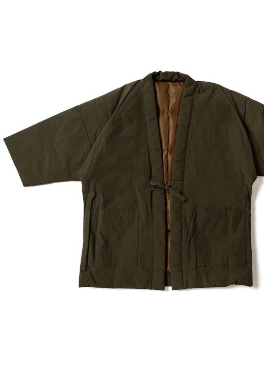 日本古来の部屋着「半纏」にダウンを挿入したモデルのハンテンダウン。表裏着用可能なリバーシブル仕様。