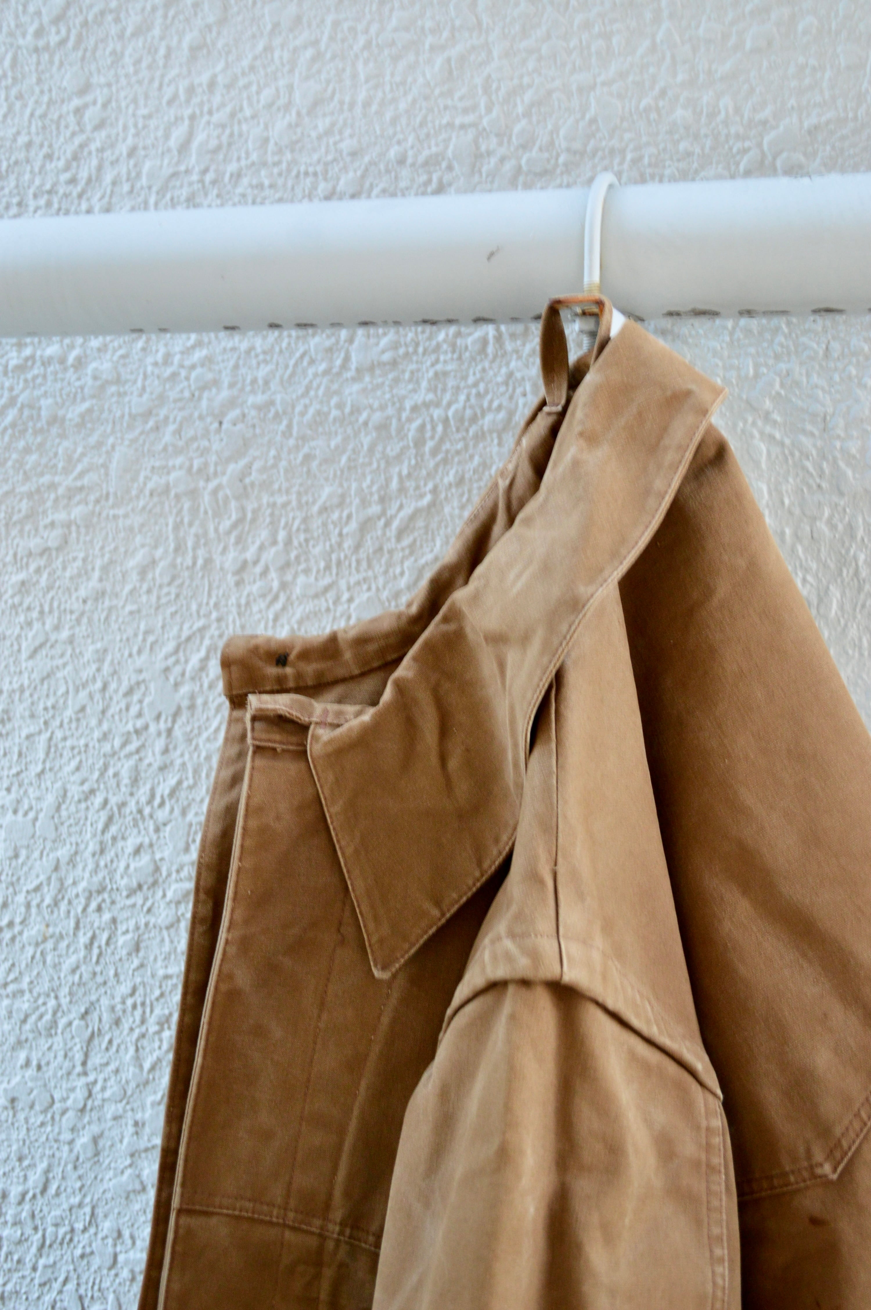 過酷な重労働に耐え凌げる厚手のダック生地でできた当時の作業着になり、縦に入ったシワや色の抜け具合など非常に風合い良く仕上がっている50sレイルロード。