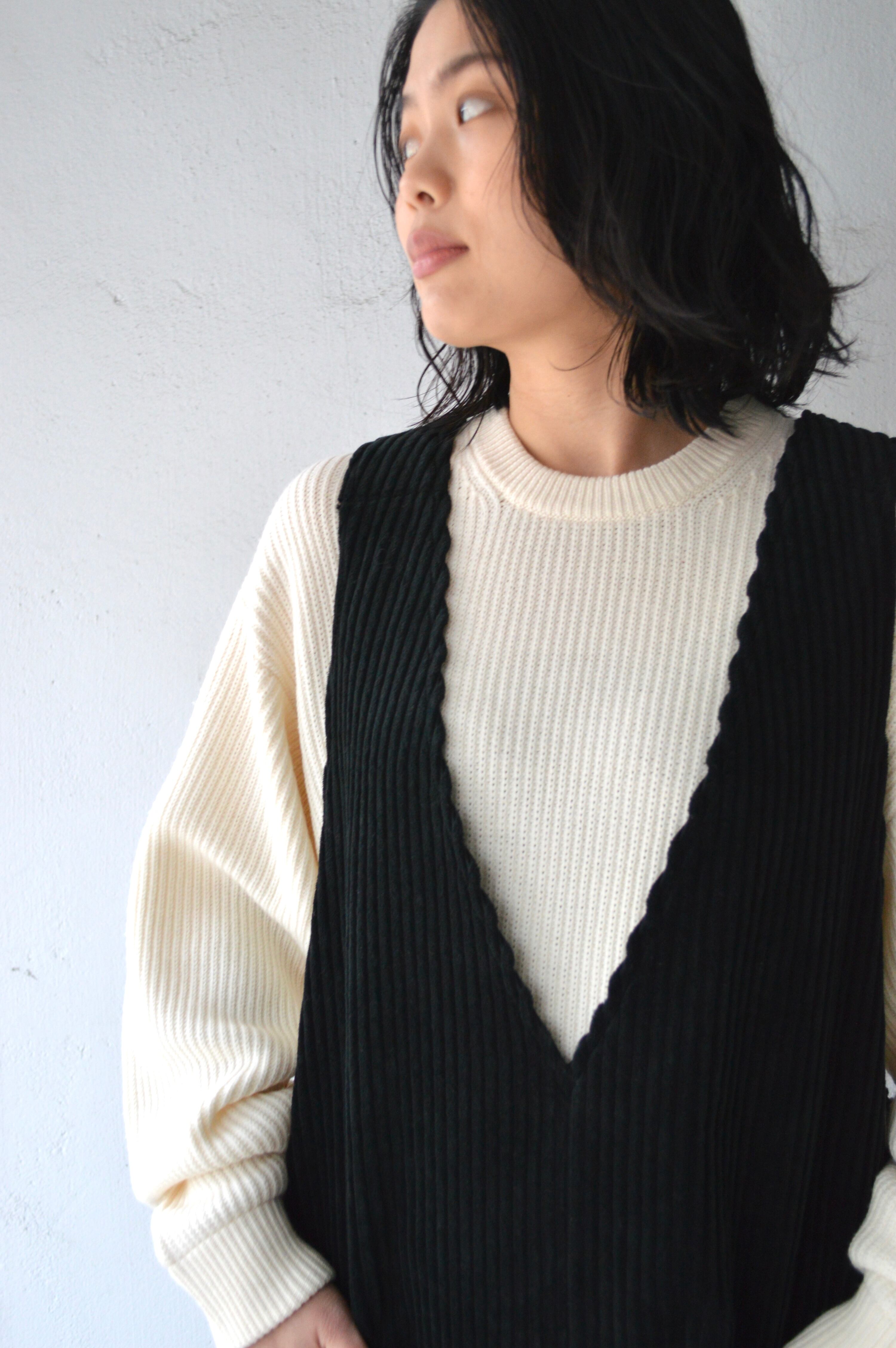 シンプルながらに生地感、デザイン共に珍しく、デザイナーズブランドならではのコーデュロイオールインワンピース。