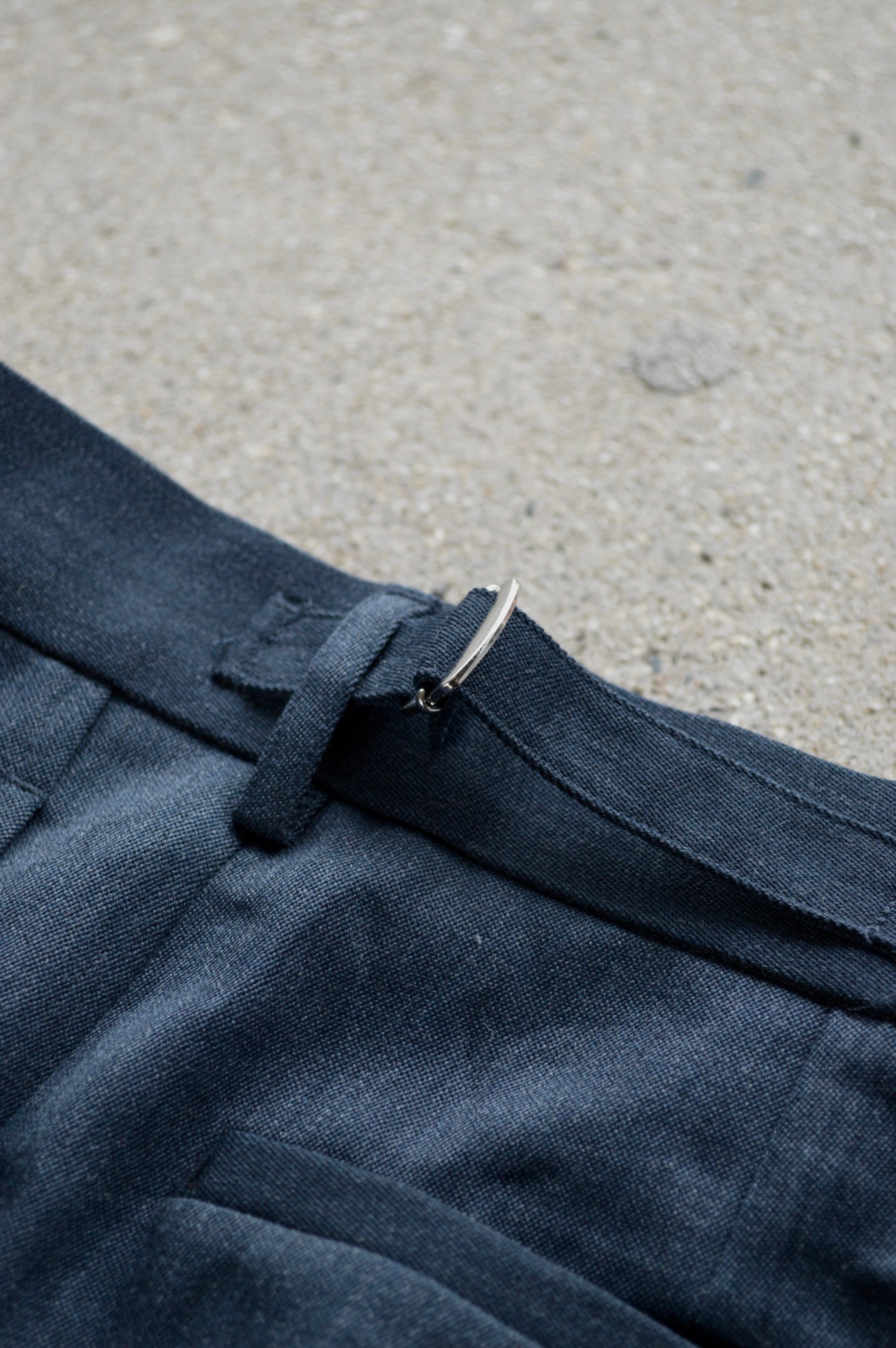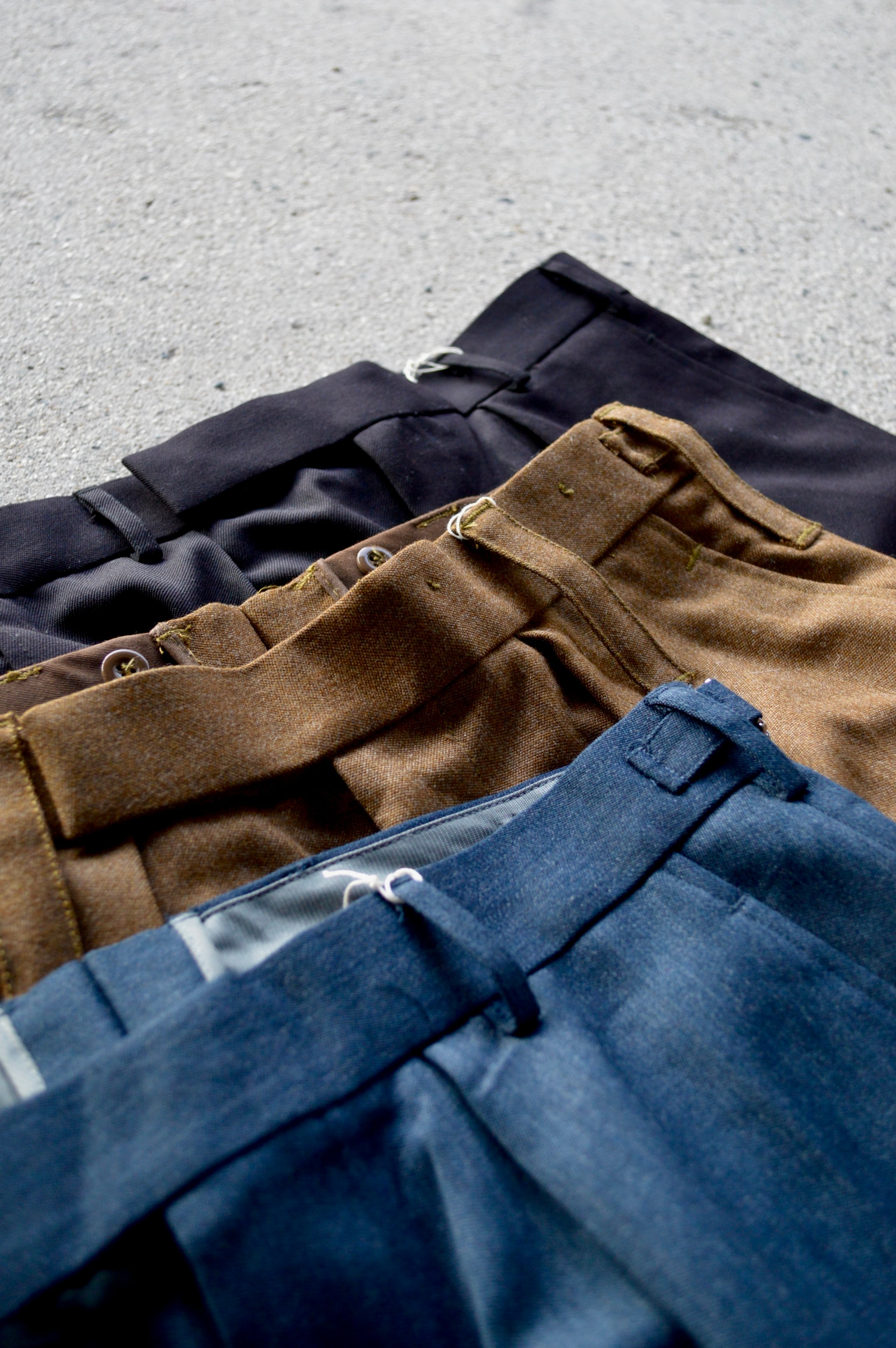 きれいなドレストラウザーですが、合わせるトップスによって印象を変えれるスラックスとなり、カジュアルなスタイリングからクラシックなスタイリングまで幅広いシーンで着用頂けます。