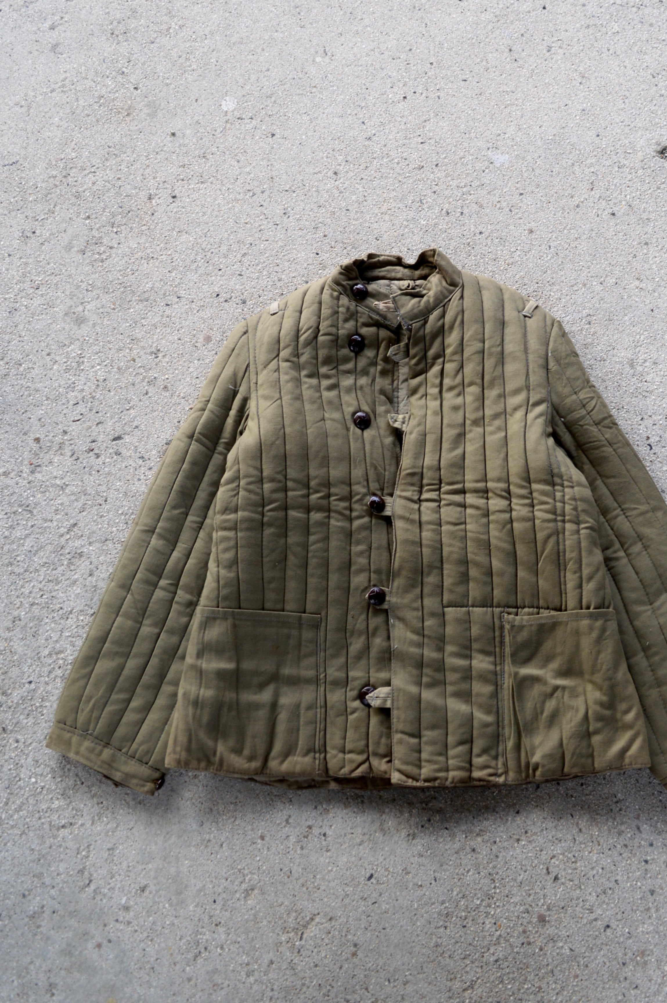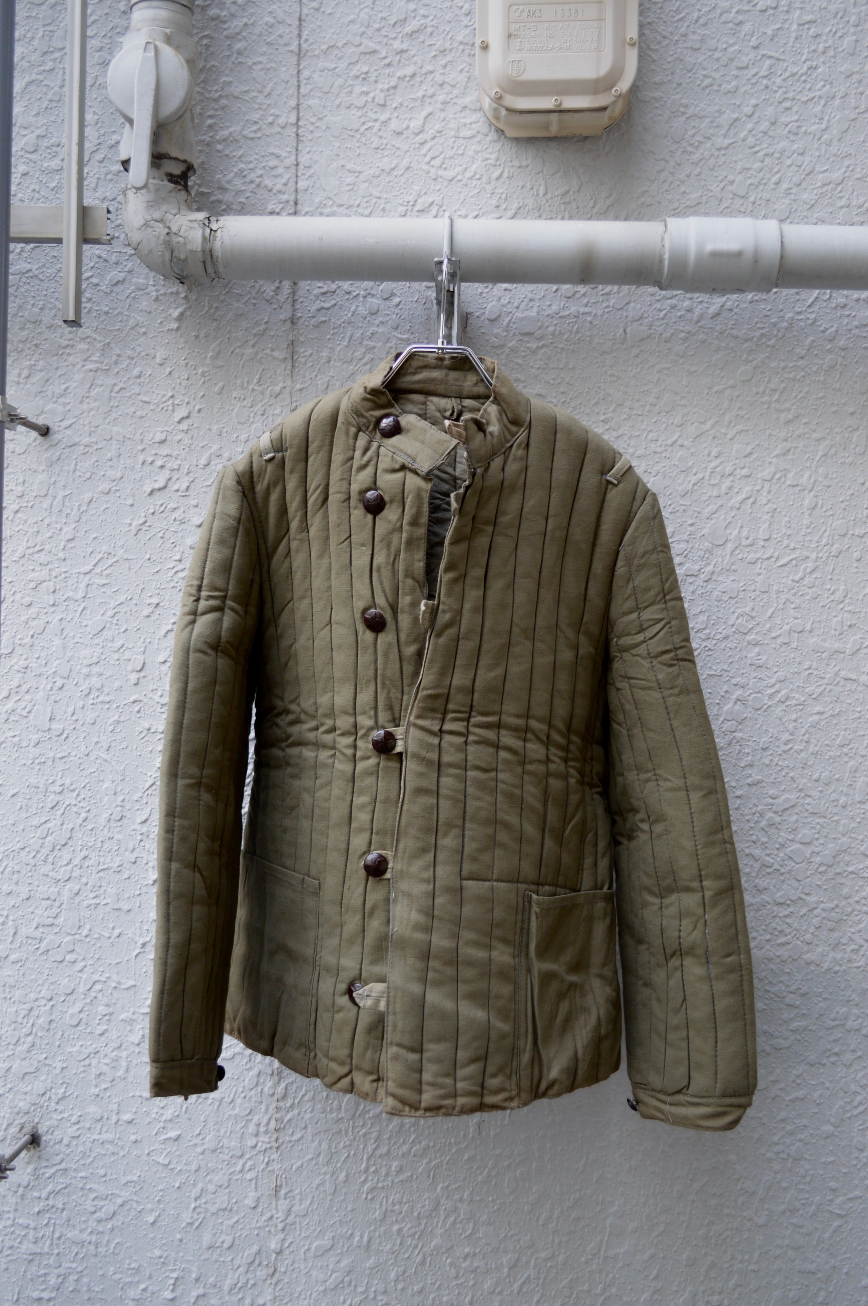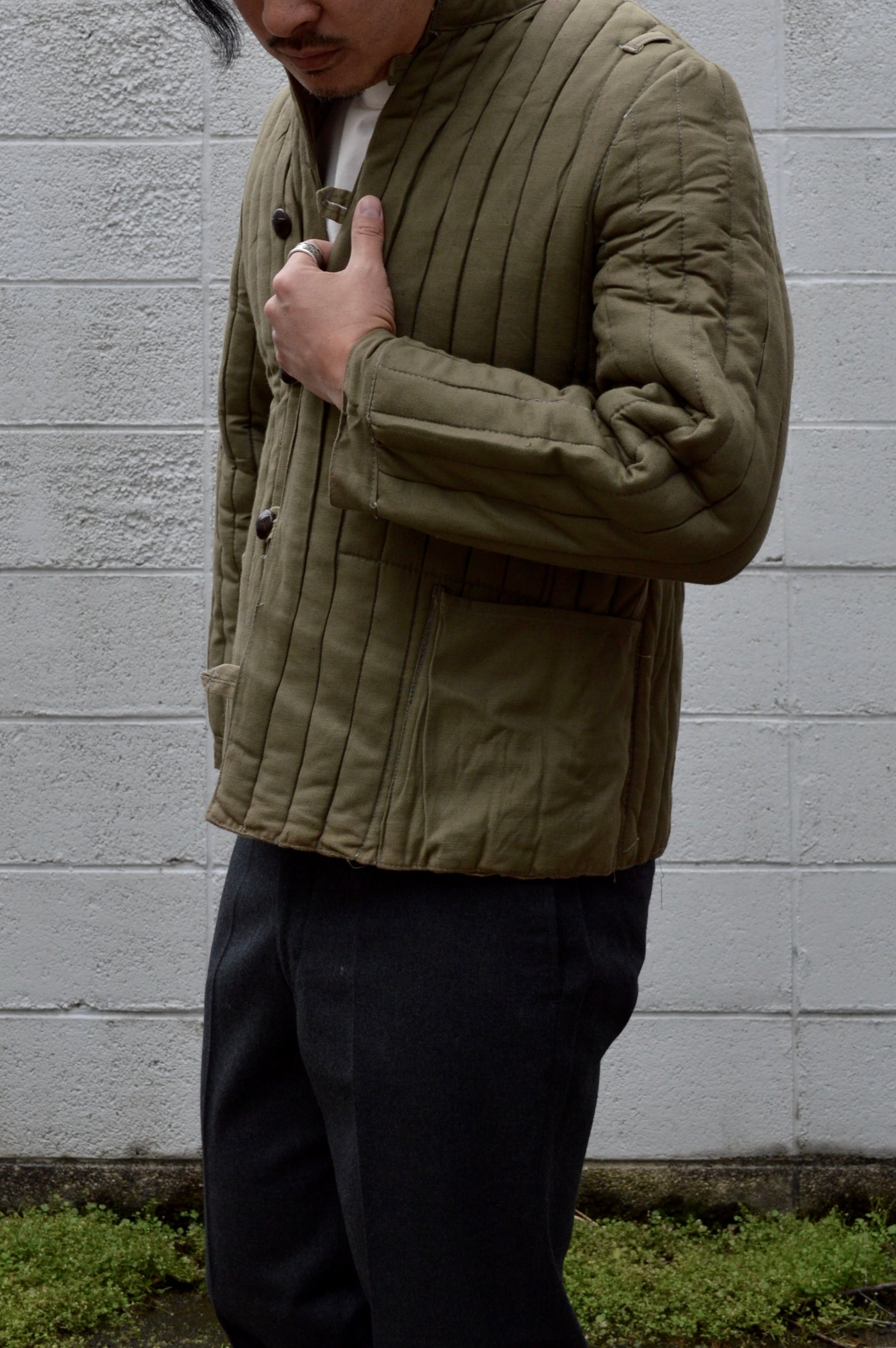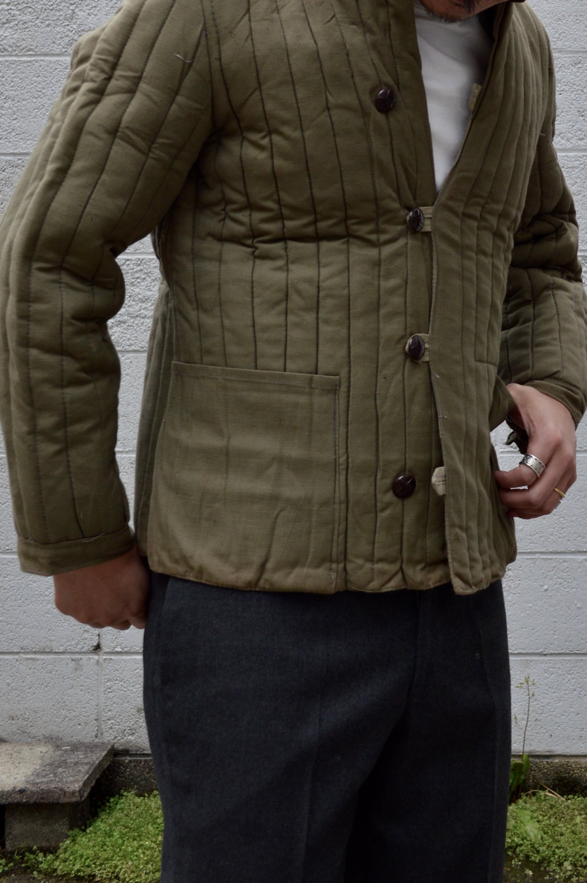 ブルガリア特有の細かいフロントボタンにスタンドノーカラーデザインでシンプルさが際立った年代相応の珍しいキルティングライナーです。