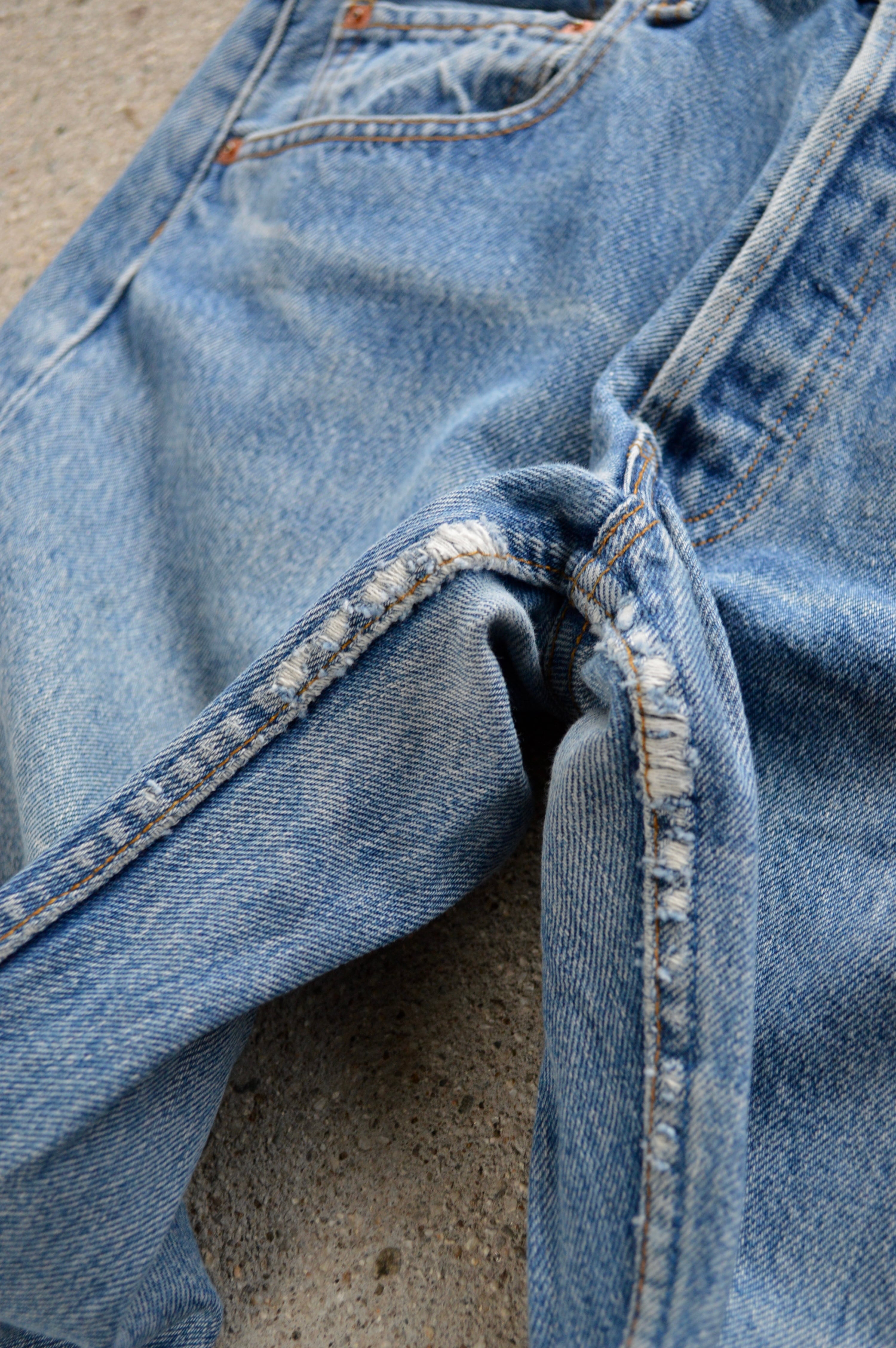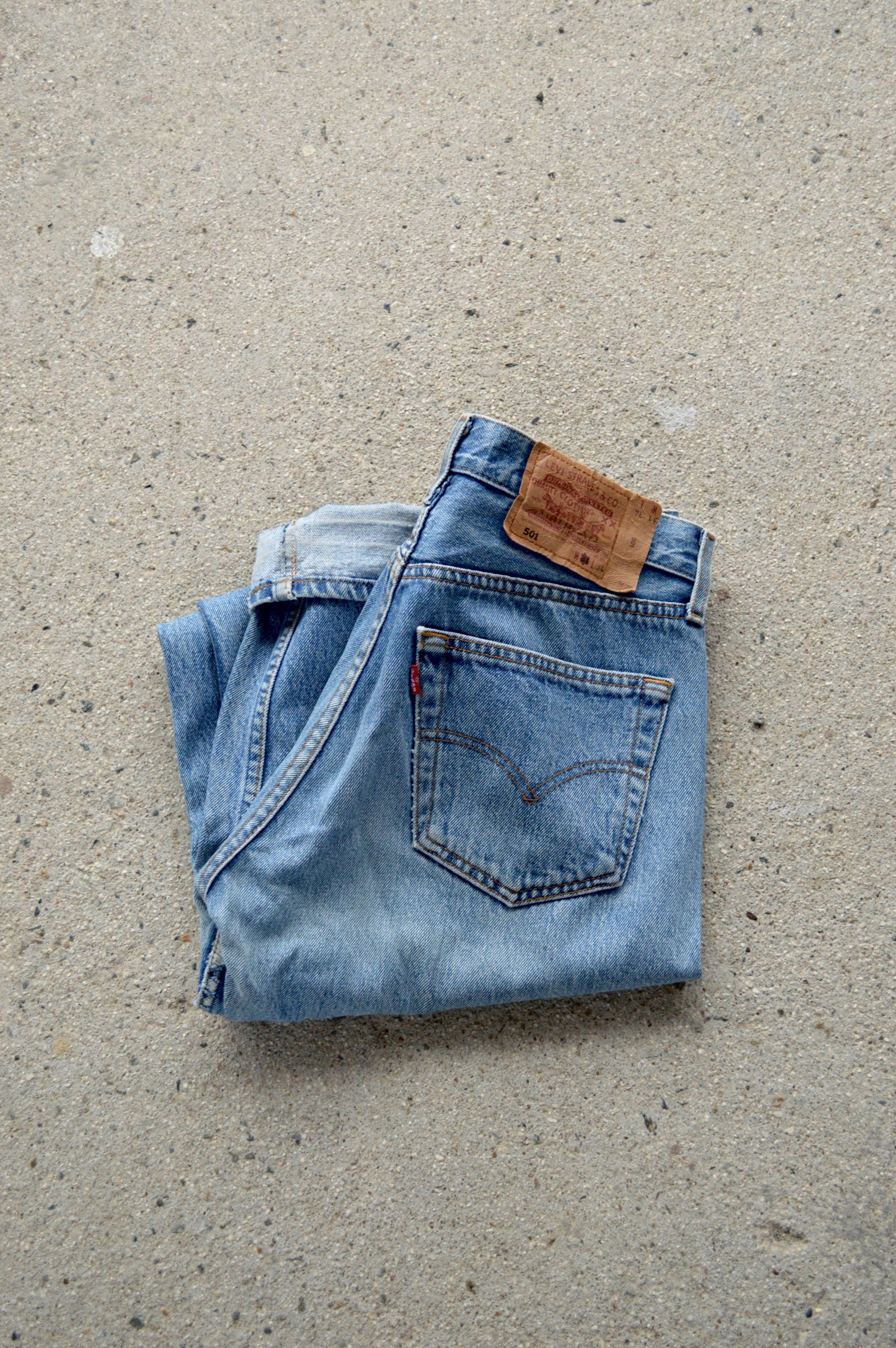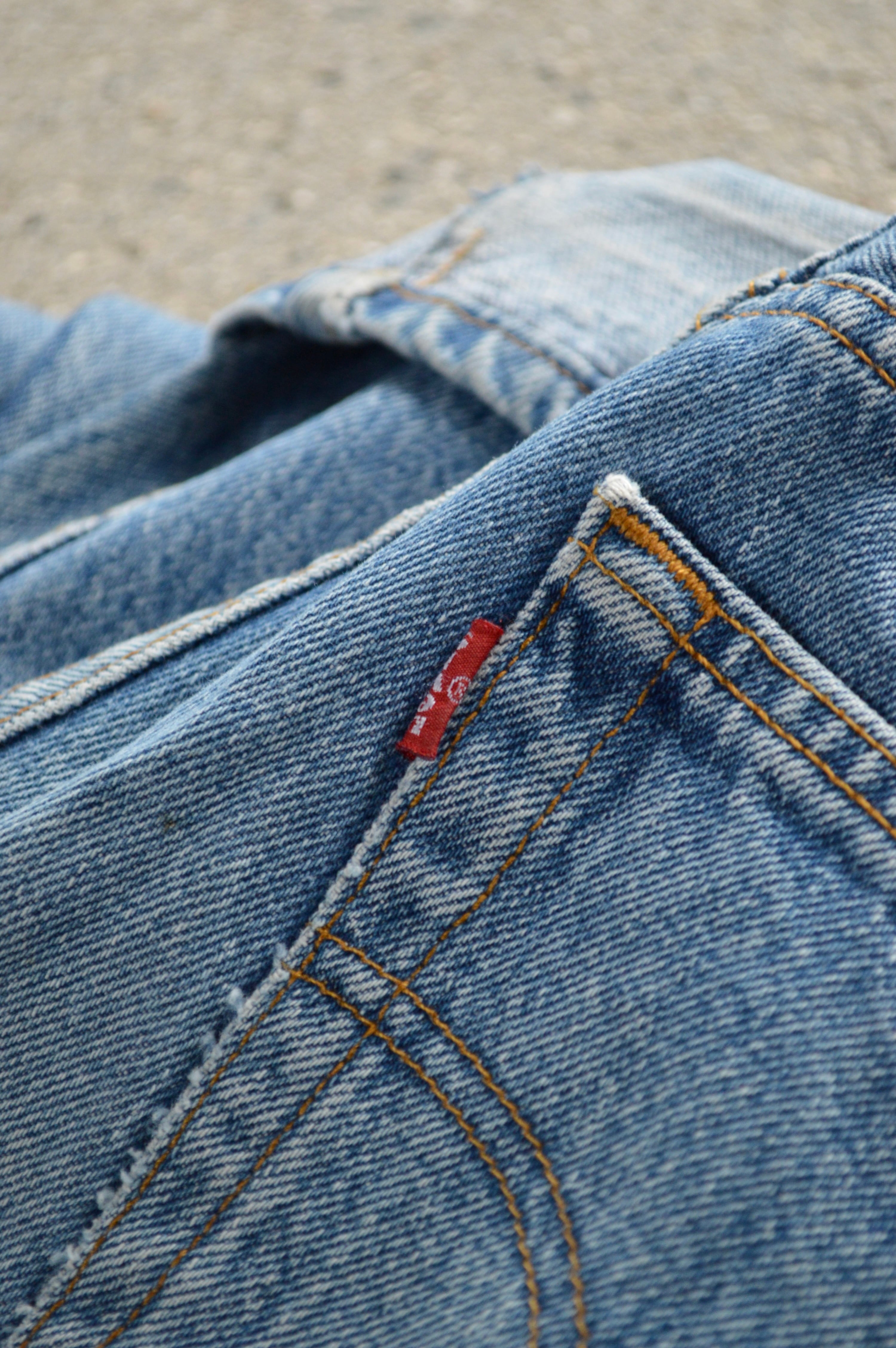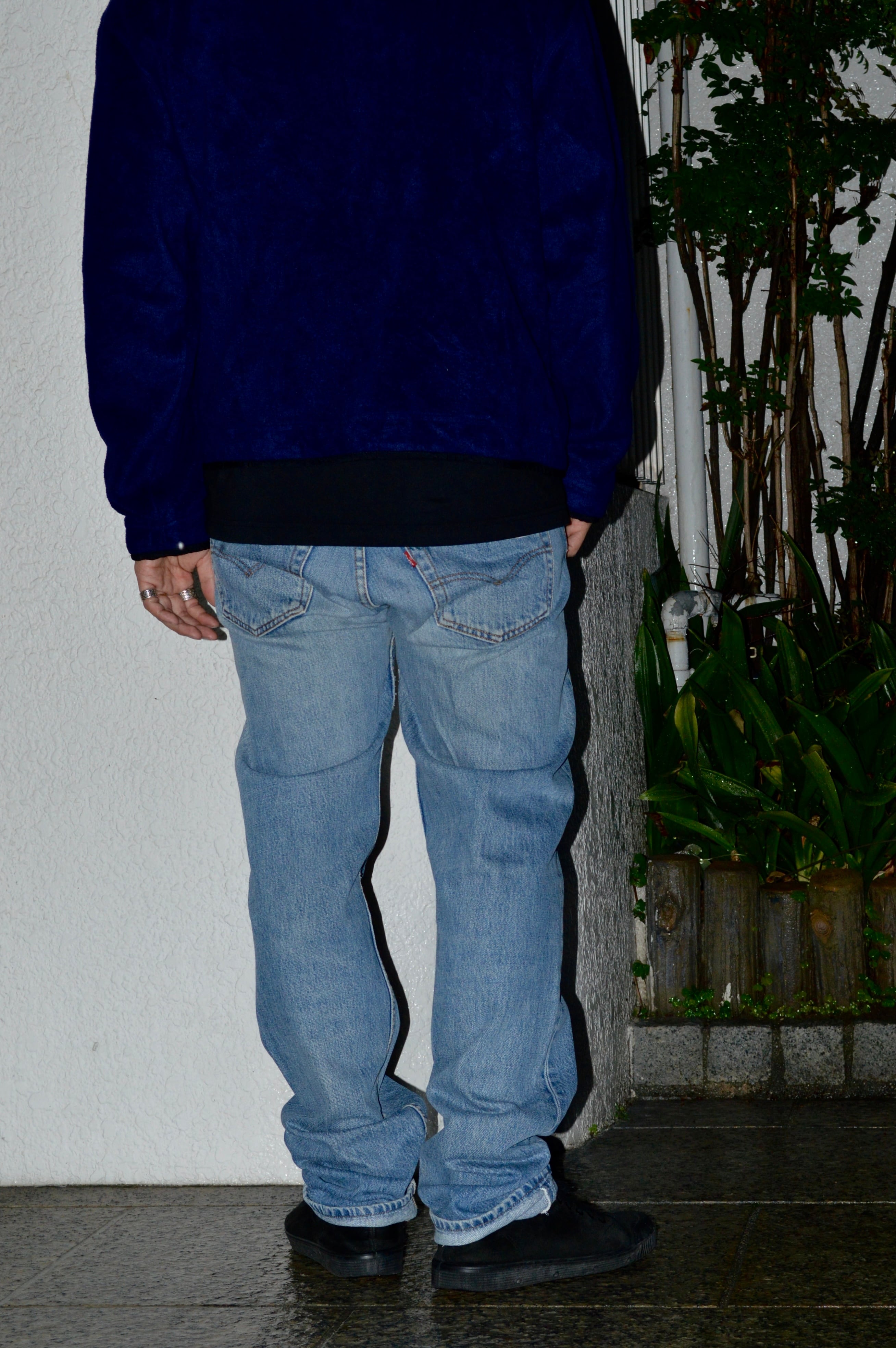 ユーロリーバイスは青みの表情が良く現れるモデルで生地薄れもなく、全体的にコンディション良好な一本。