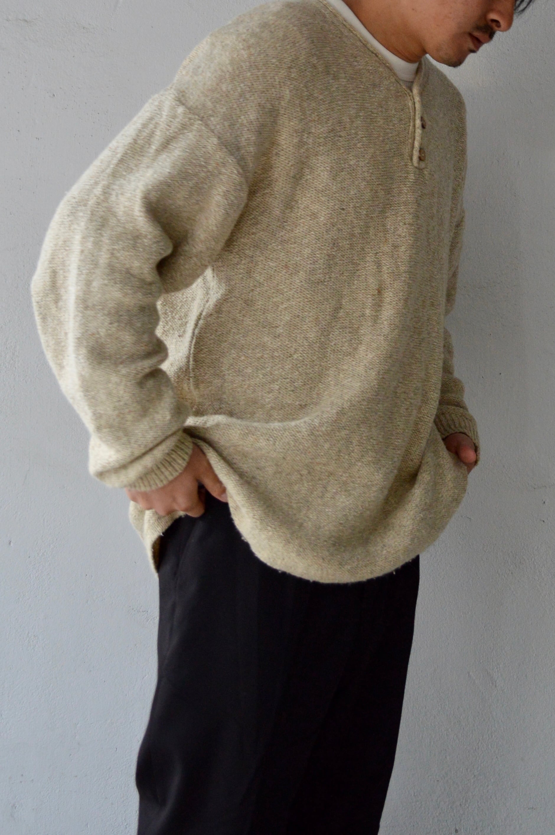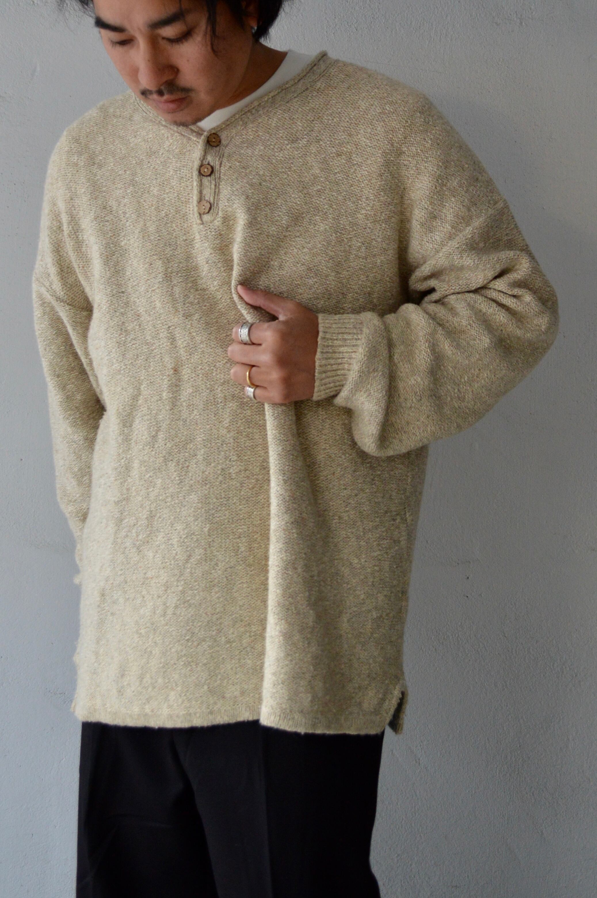 抜けたサイジングはそのままルーズに着こなしていただけると、雰囲気が増すヘンリーニットになります。