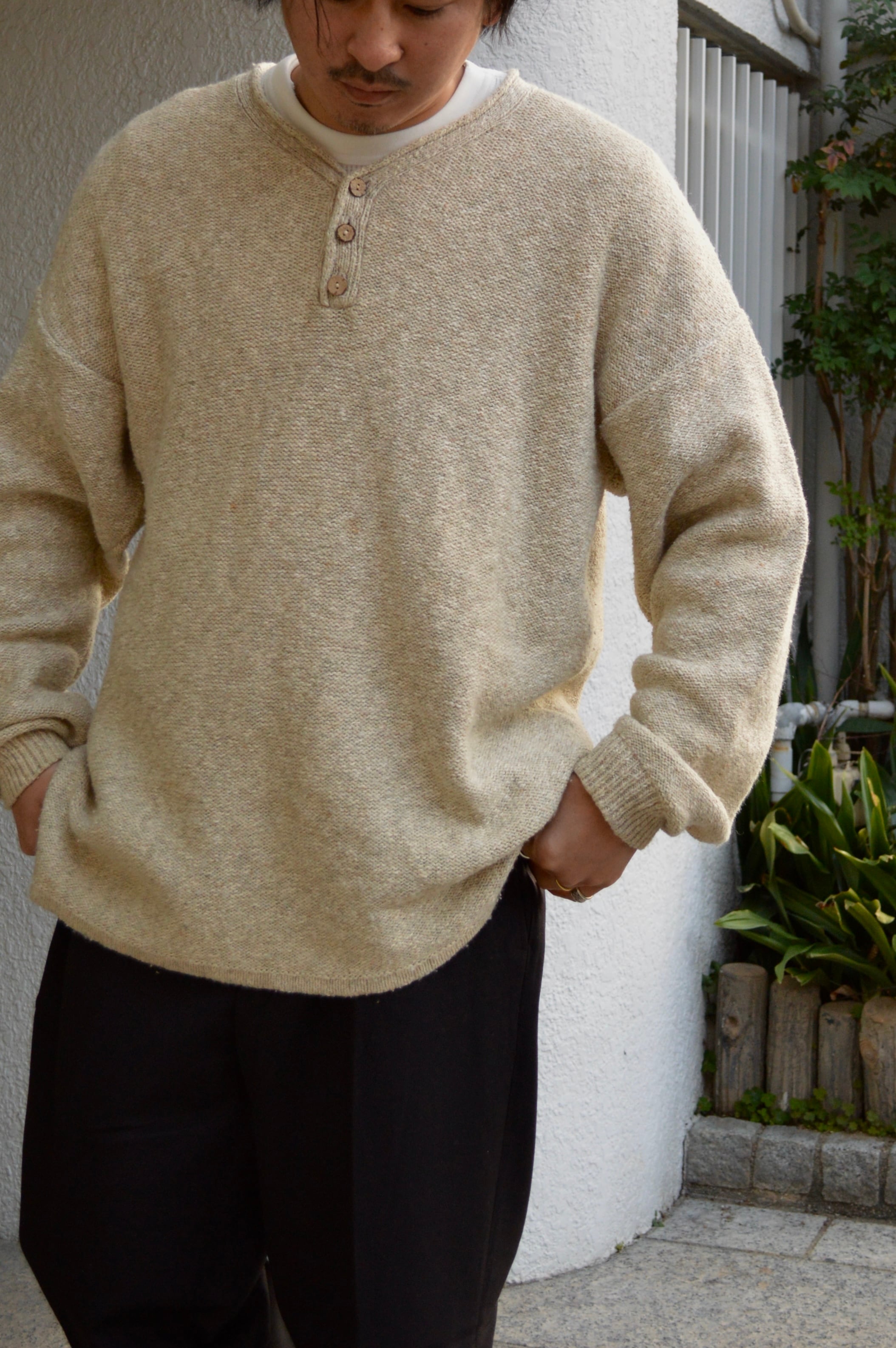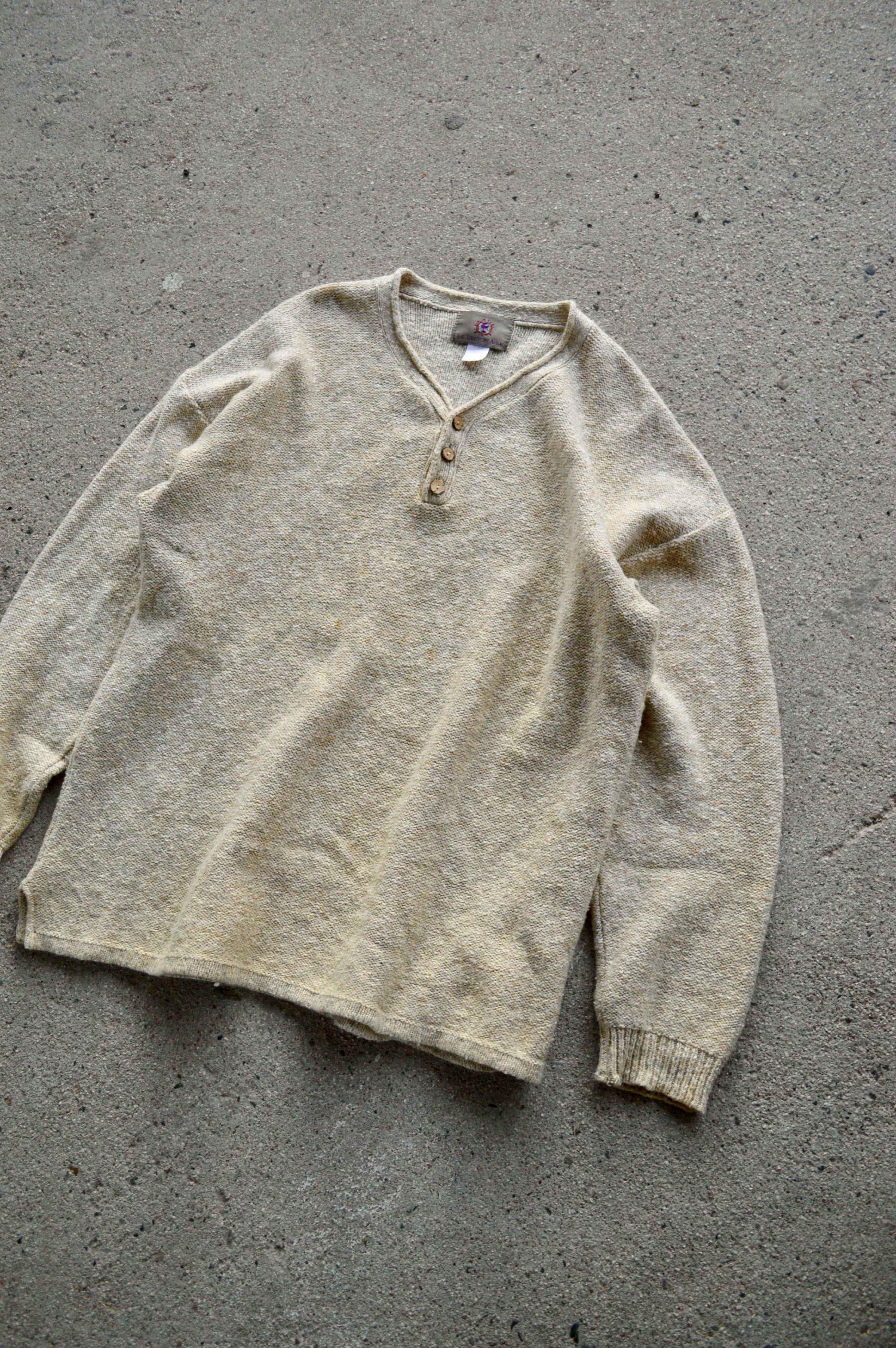 THE TERRITORY AHEAD 1990s Mix Nep Fabric Henley Cotton Knit Made in USA テリトリーアヘッド 90年代 ヘンリーニット