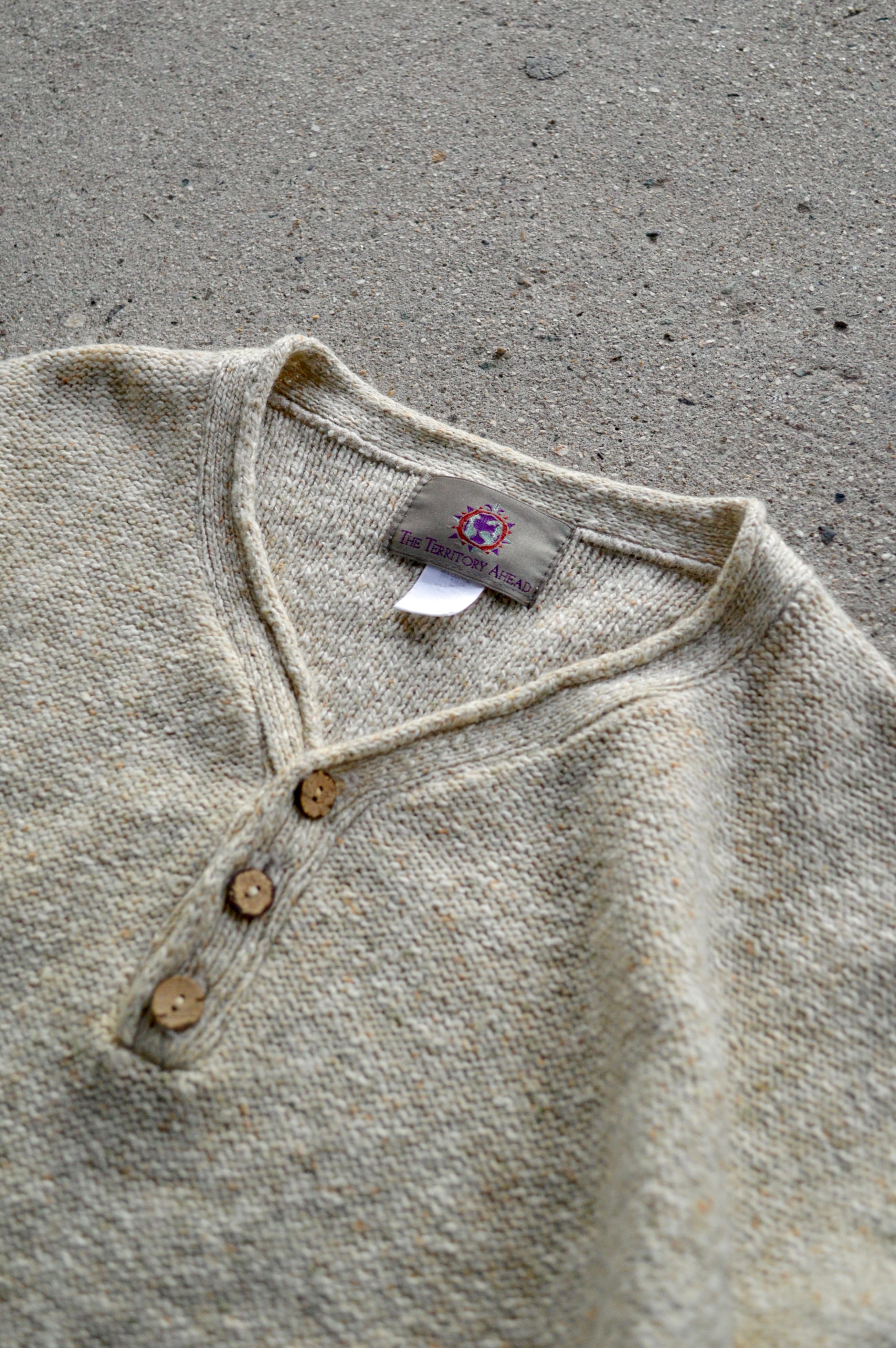 《THE TERRITORY AHEAD 1990s Mix Nep Fabric Henley Cotton Knit Made in USA》