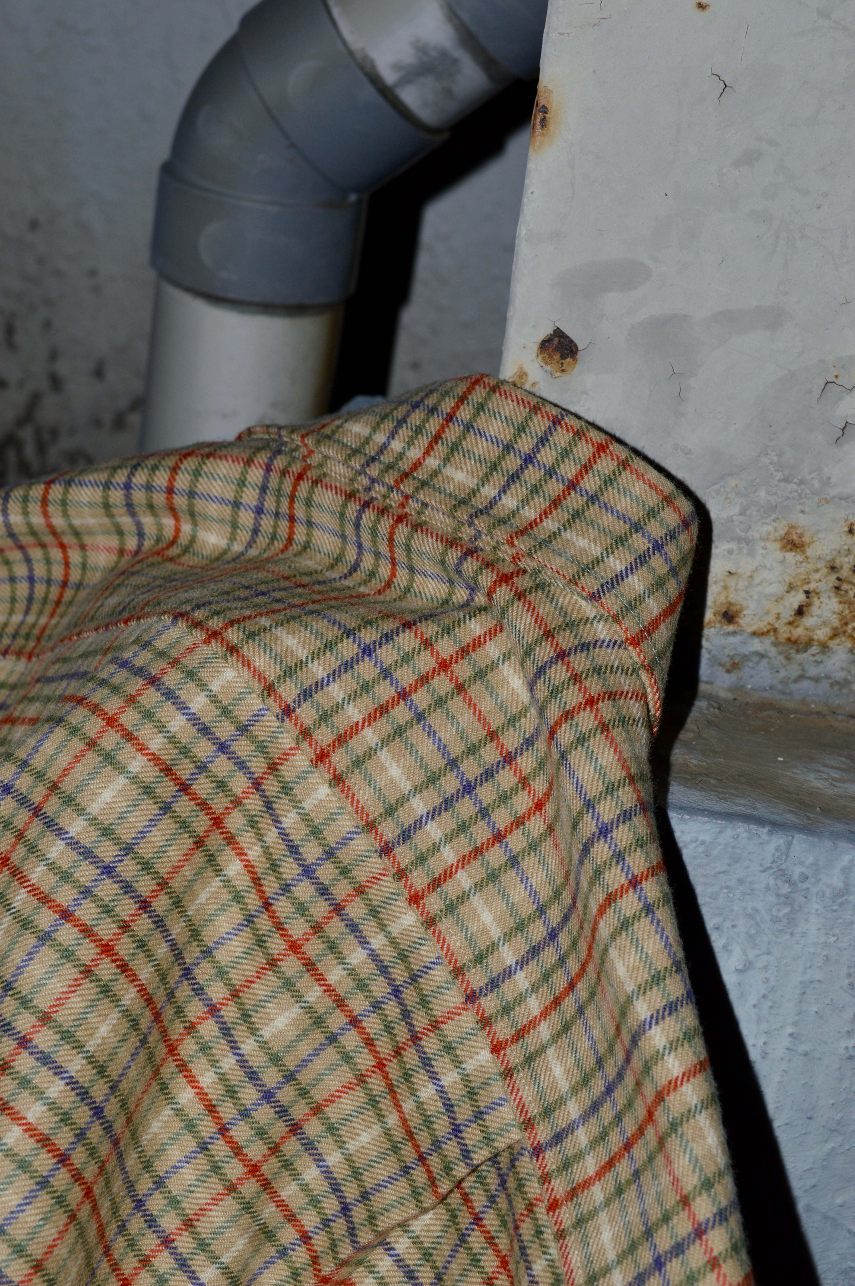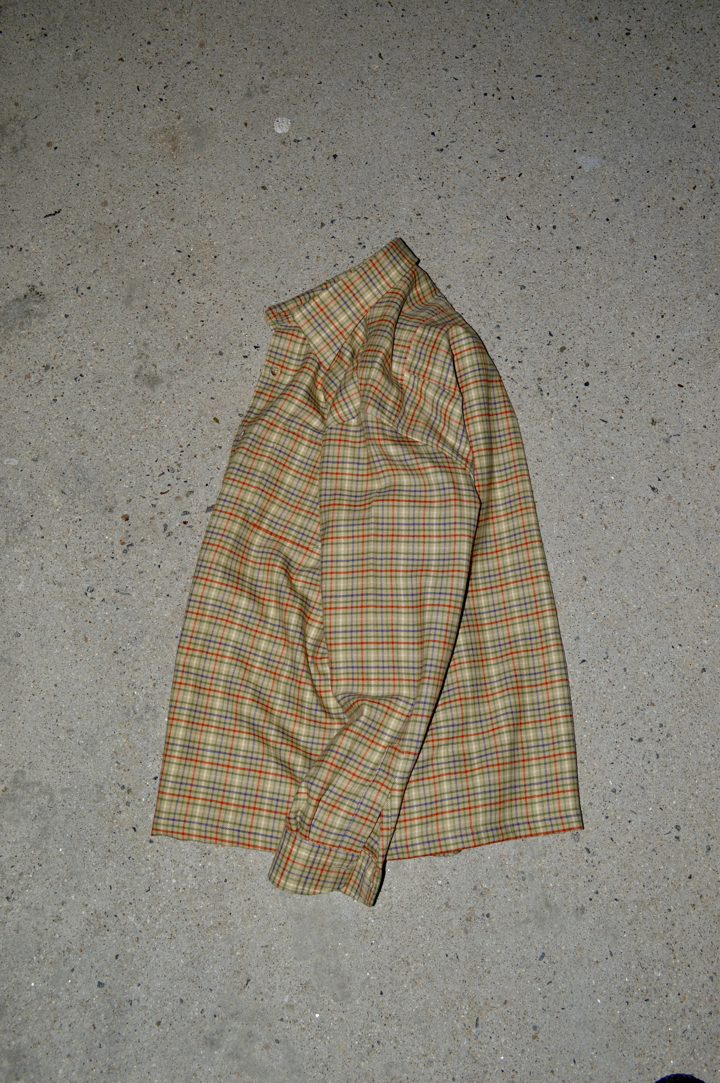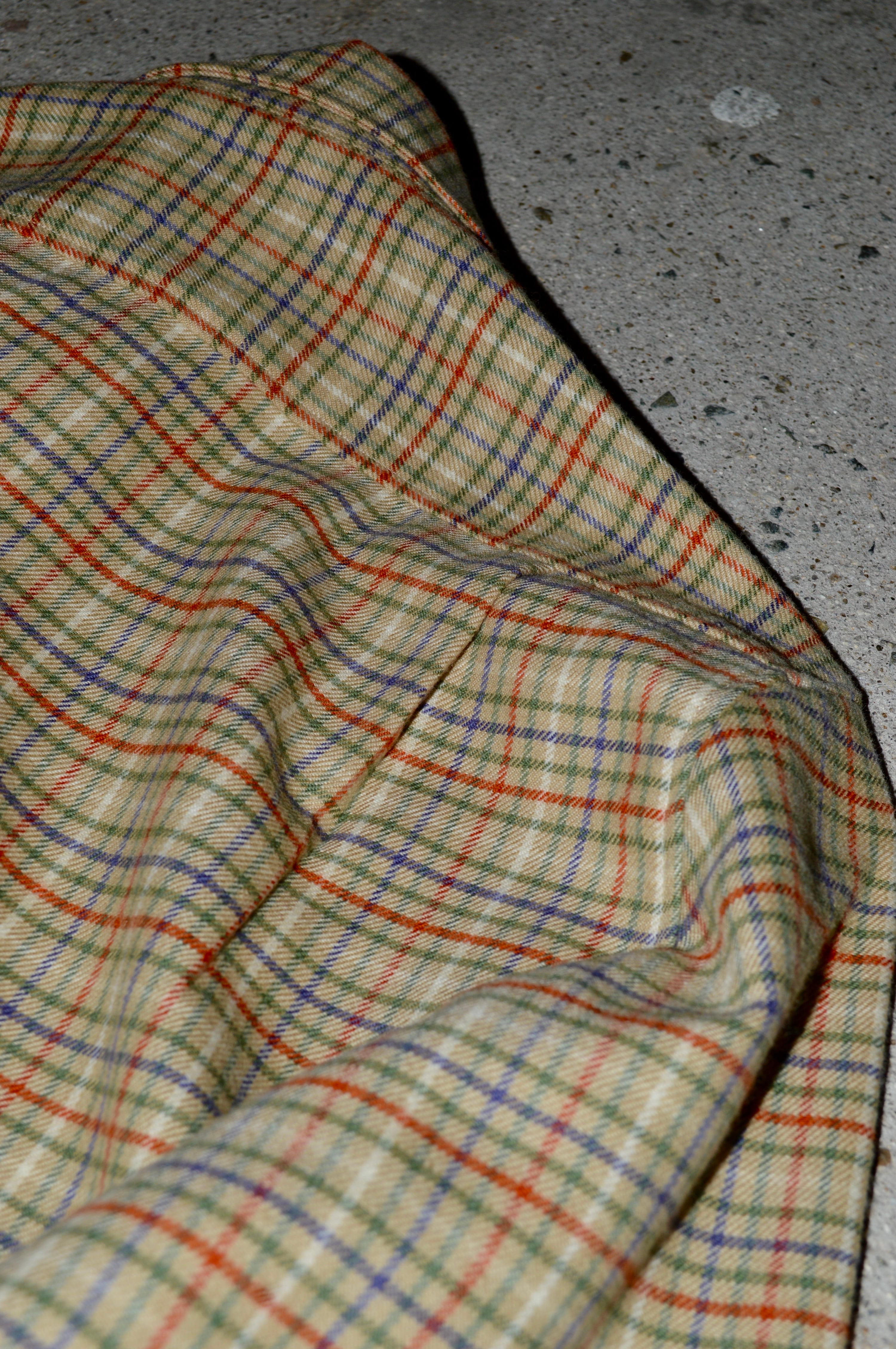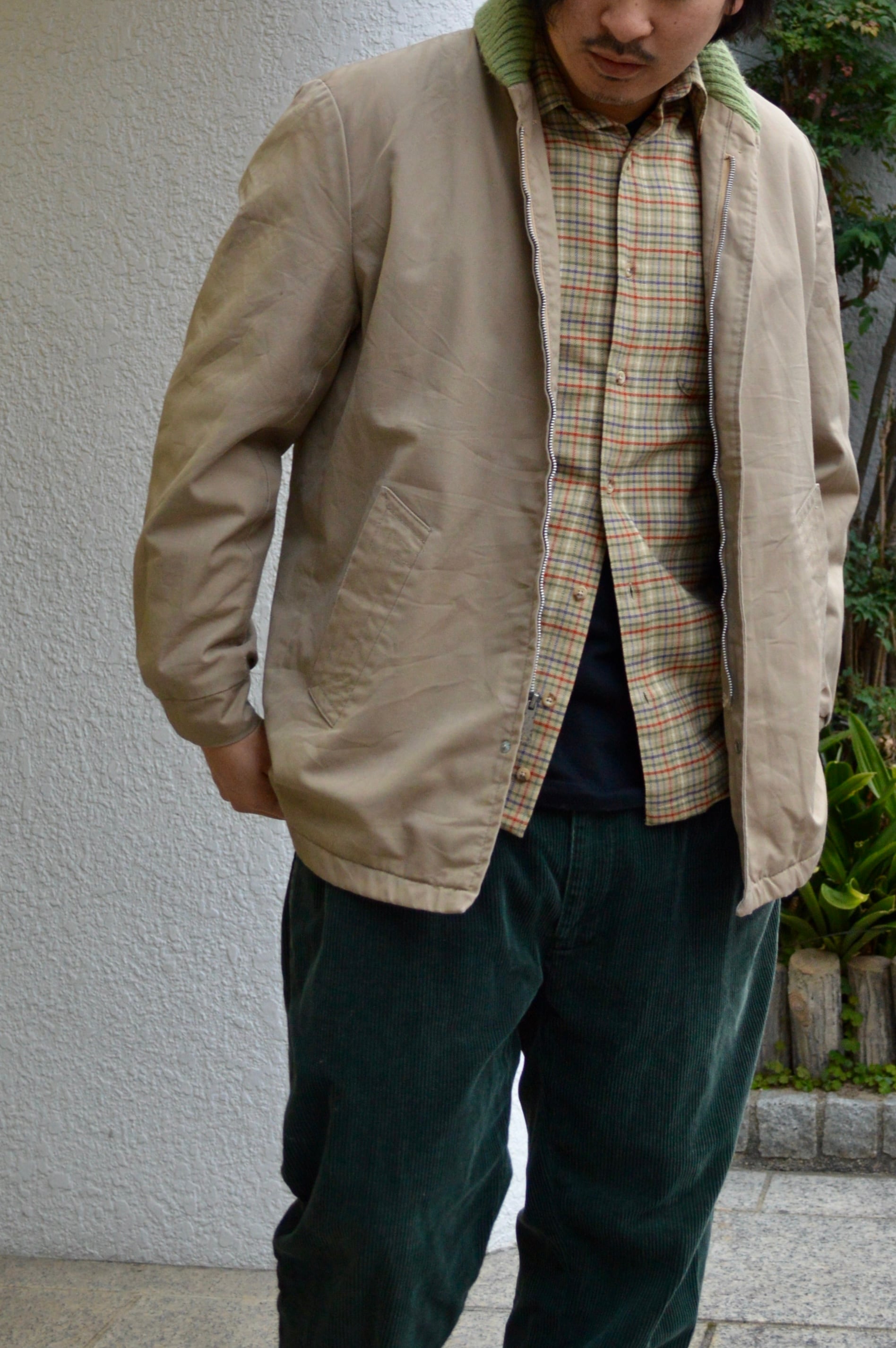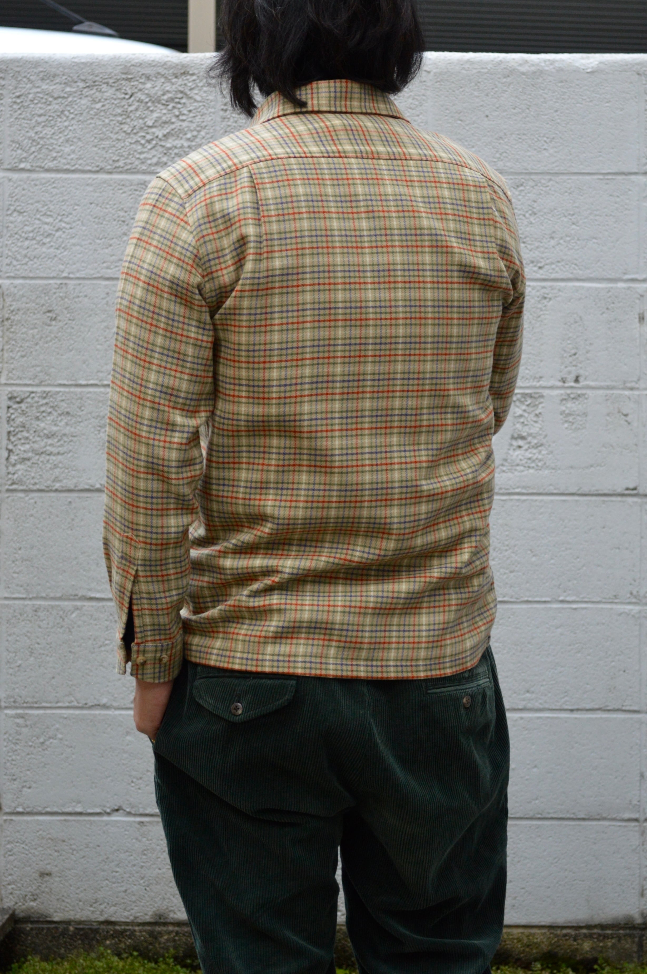 カジュアルウェアではあまり見かけないベージュのガンクラブチェックは落ち着いた印象で古着ならではの珍しさと高級感がある一着。