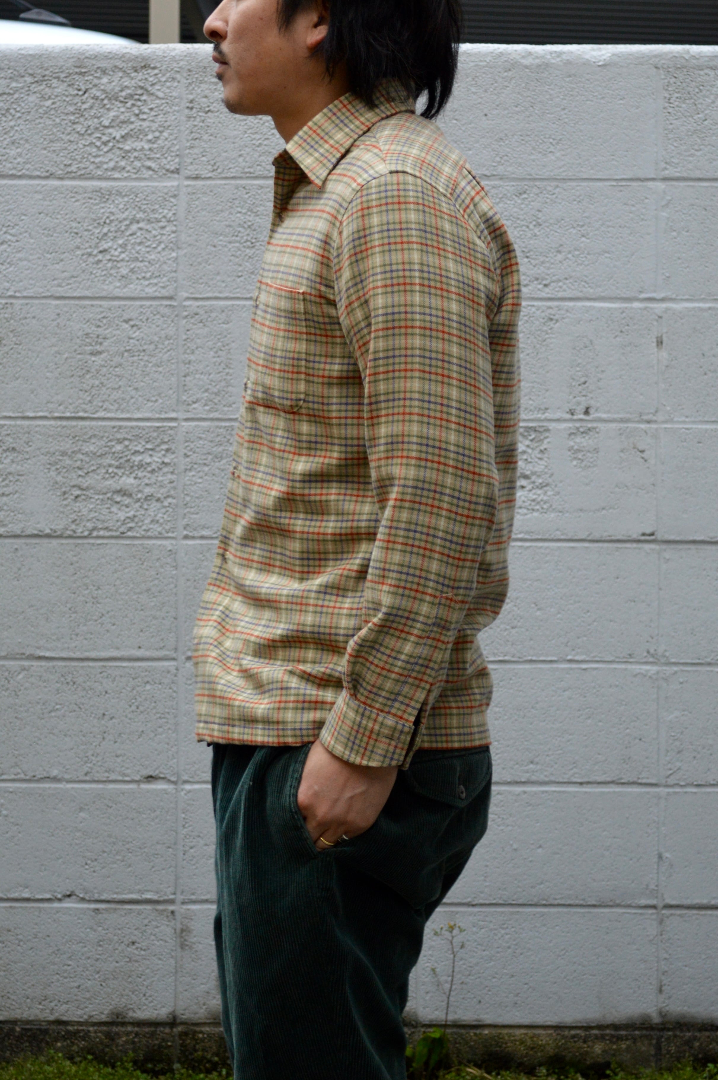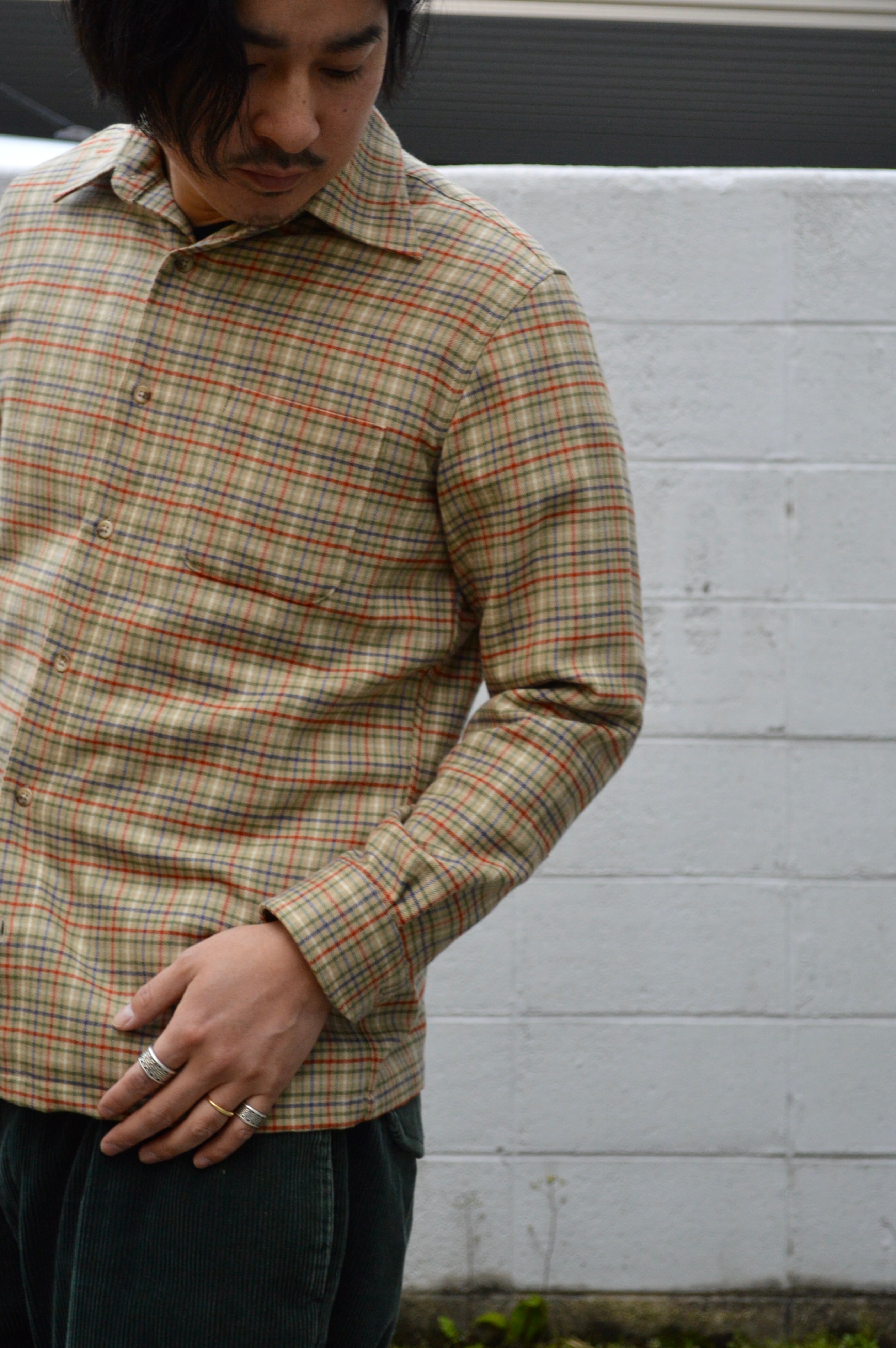 US古着とは異なった少し珍しいウールシャツで品あるベージュベースのガンクラブチェック。