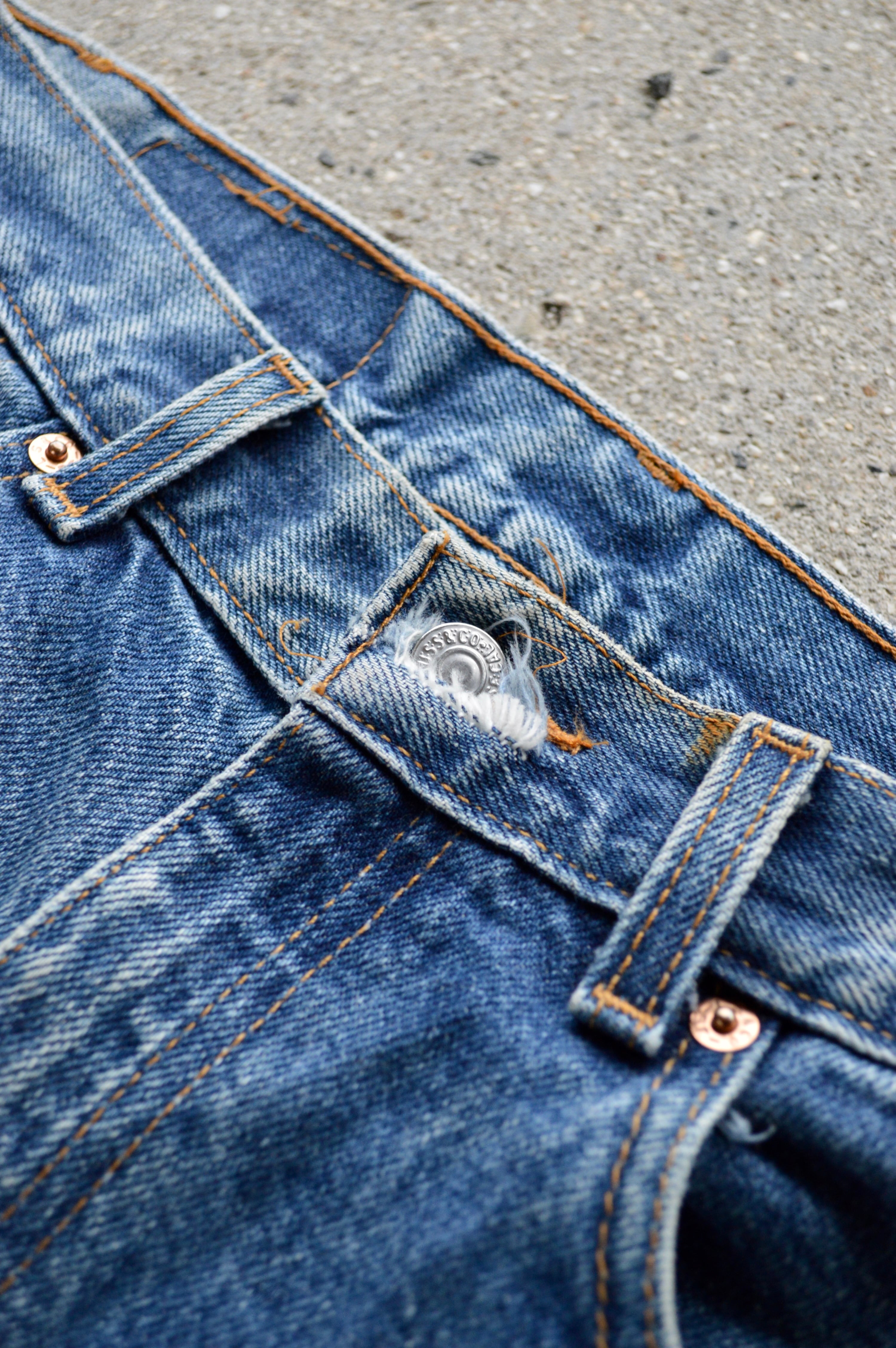 まだまだ生地薄れもなく、全体的にコンディション良好な一本。