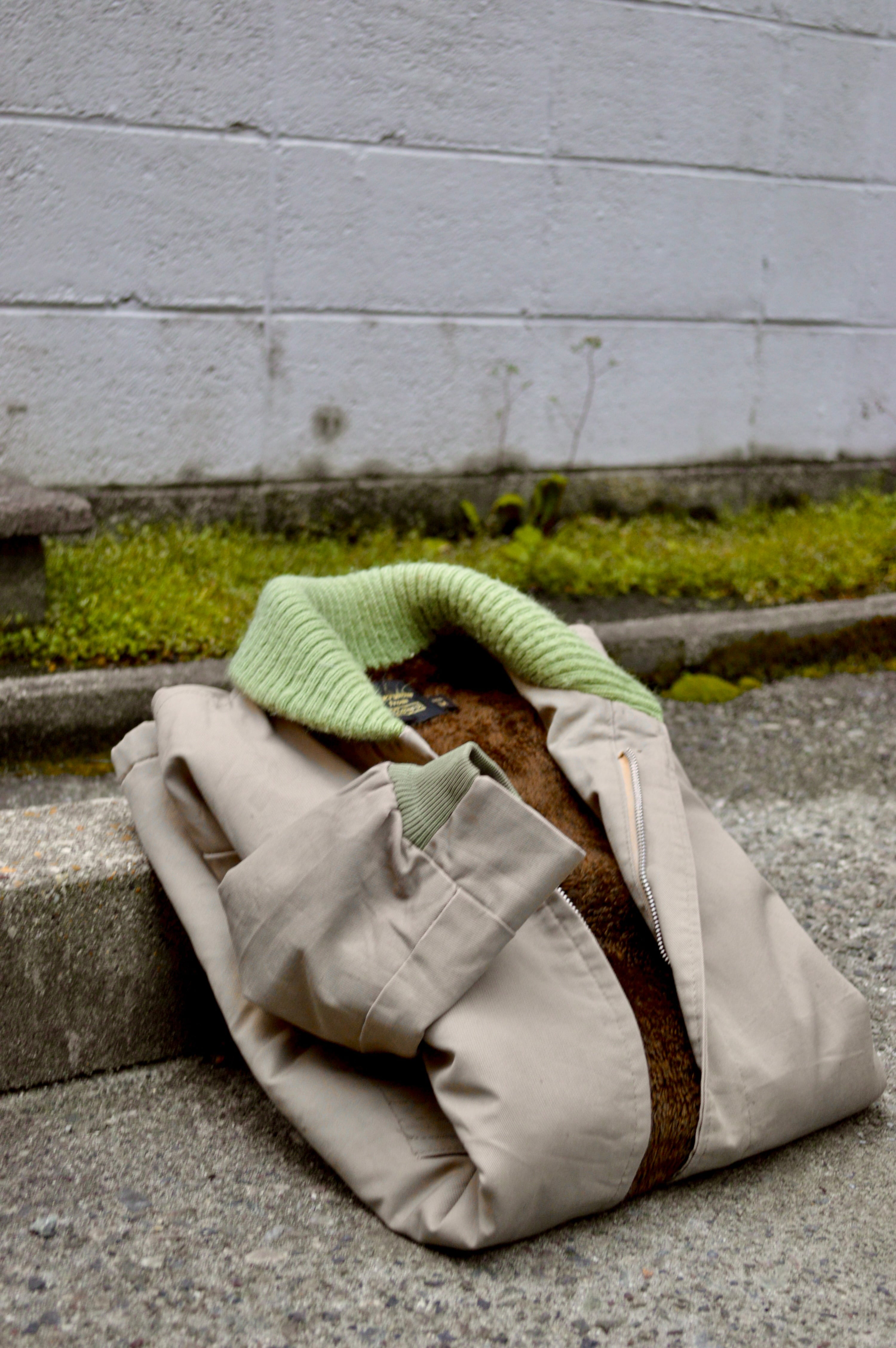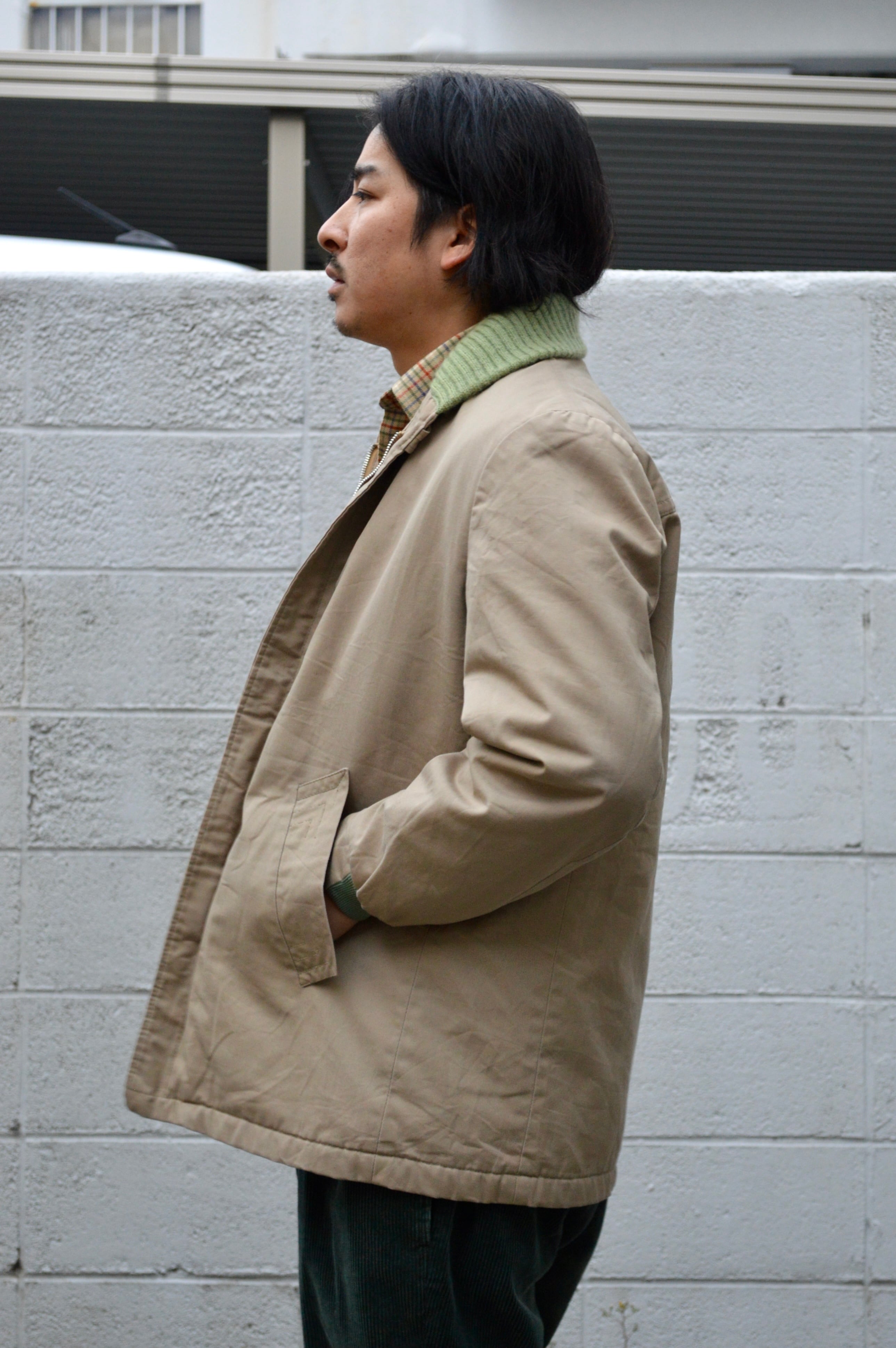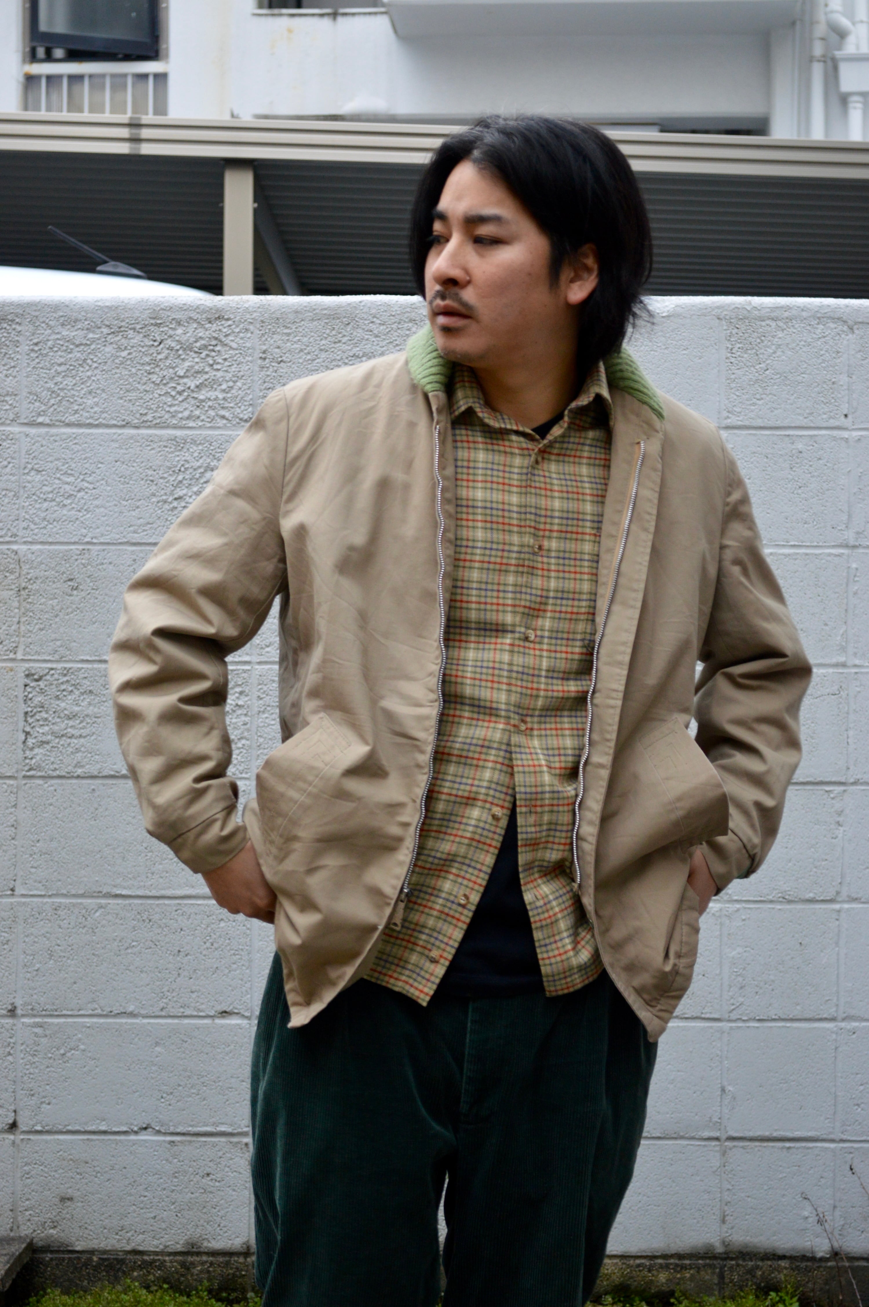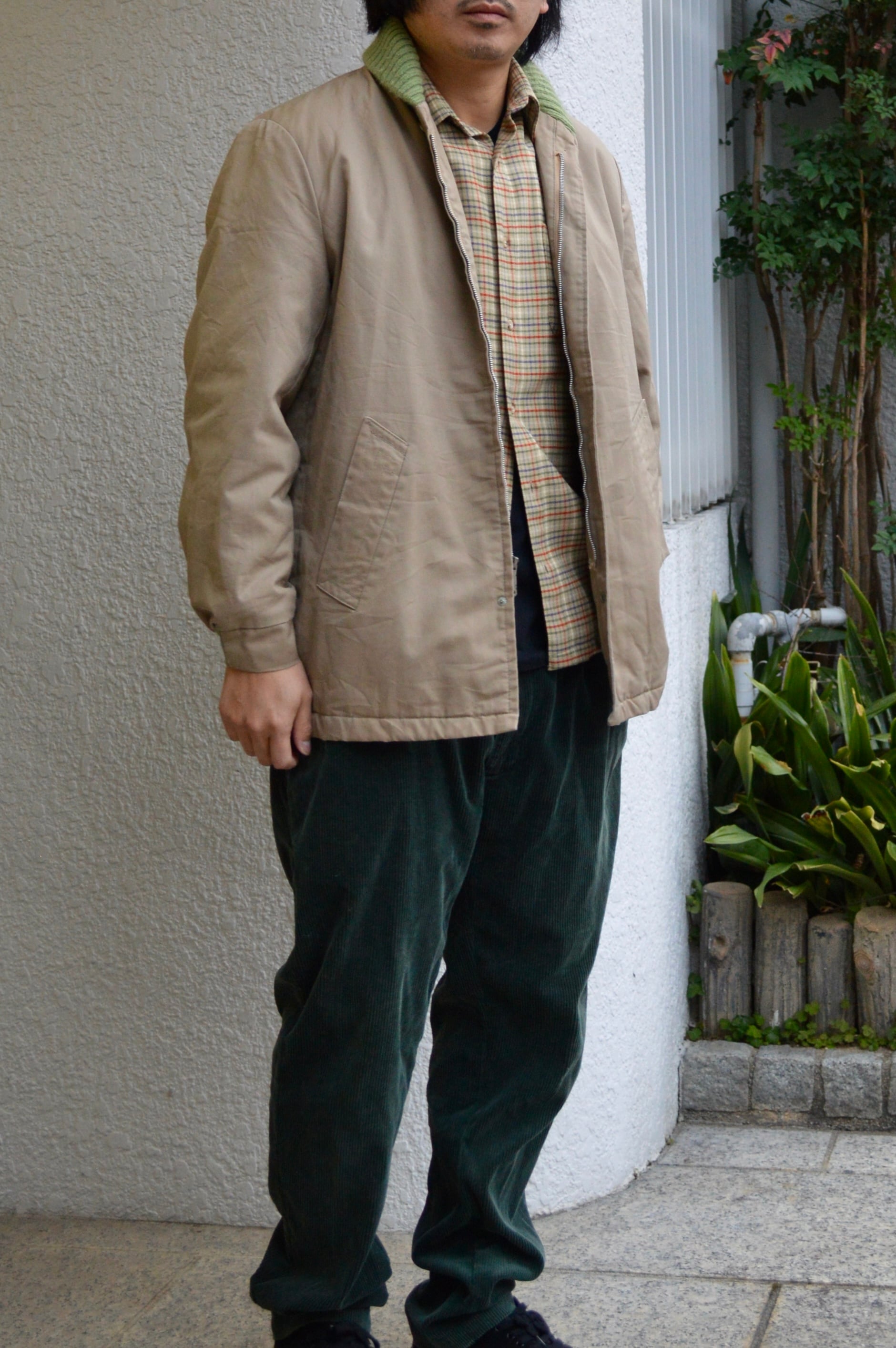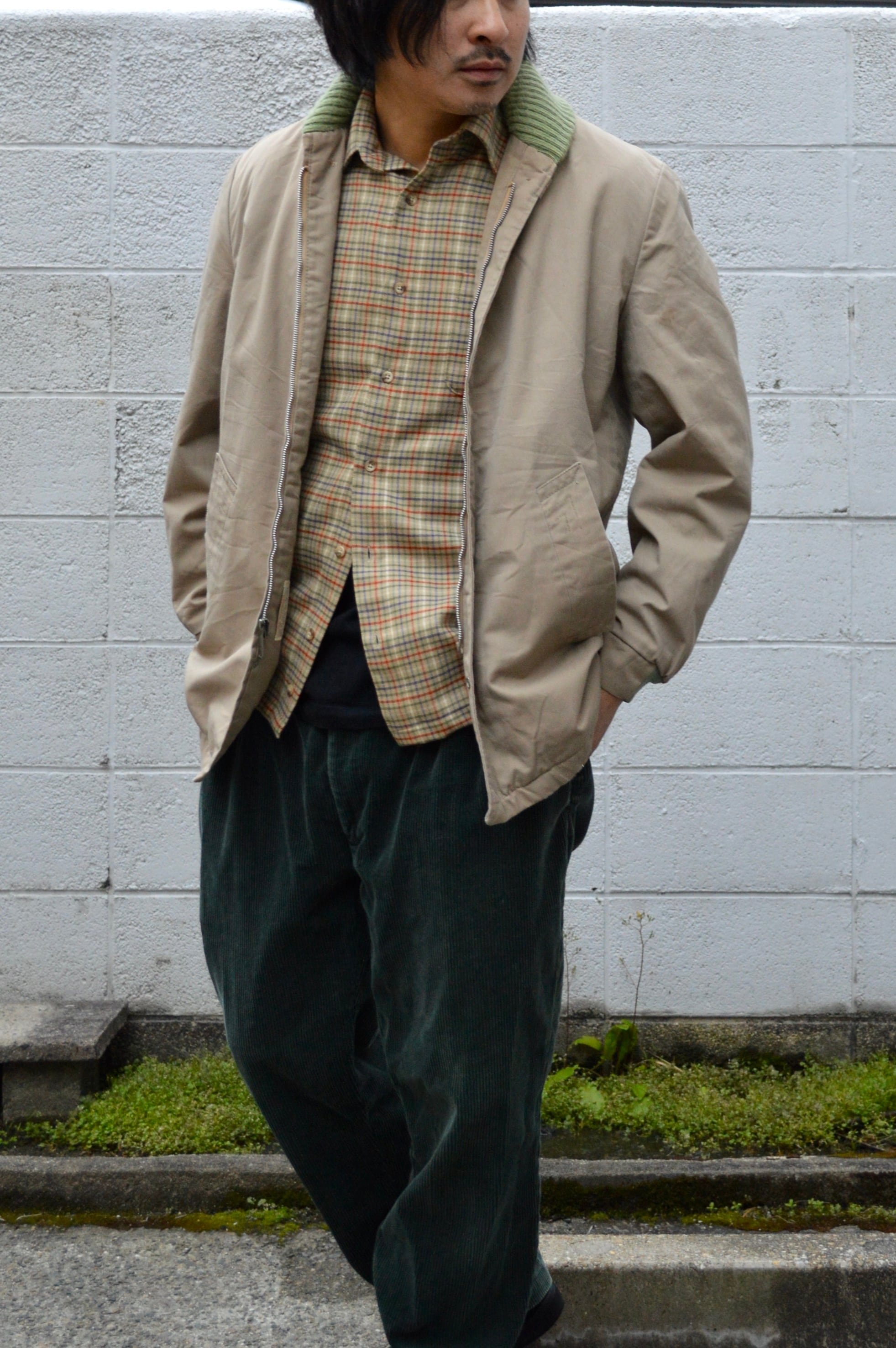 ショールリブはワークウェアでは独特なカラーマッチとなるベージュにライトグリーン配色。