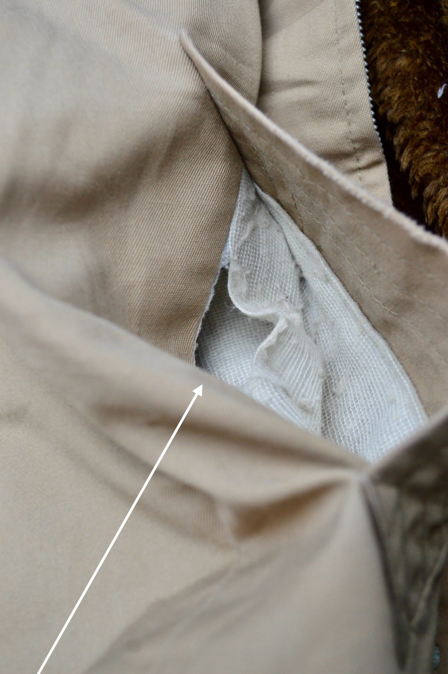 ・ファスナー先端生地劣化