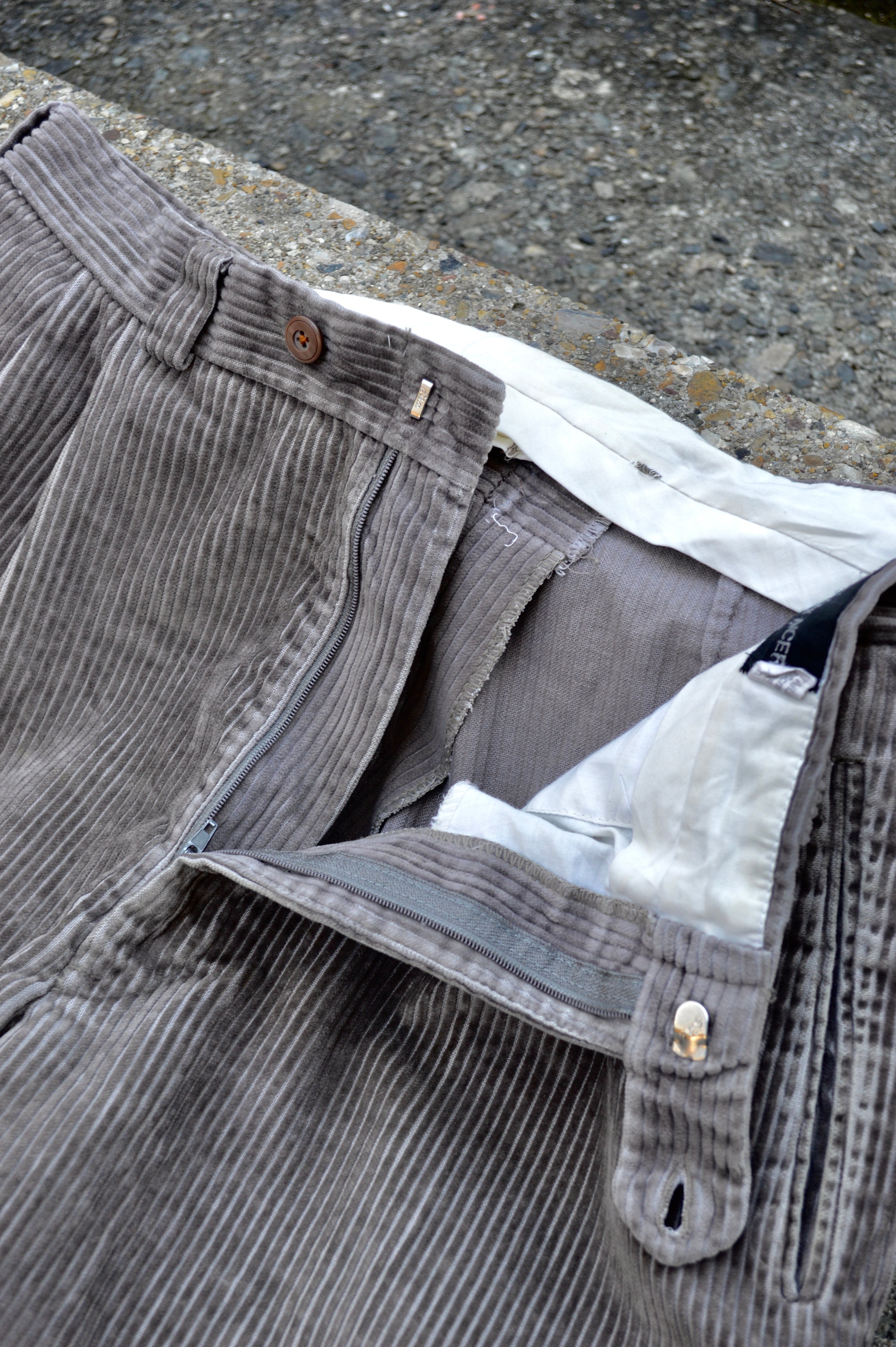 色味はグレーに淡くベージュ掛かったグレージュカラーのコーデュロイで珍しさある色味も古着として唆られる価値ポイントの一つです。