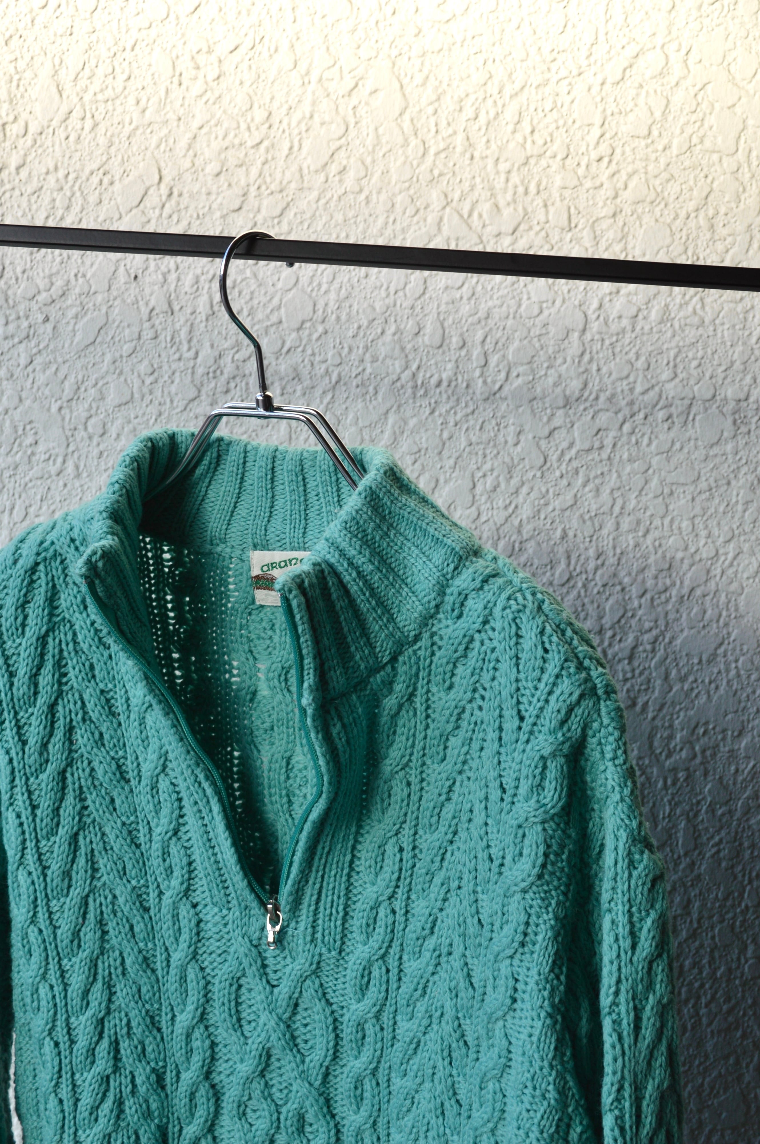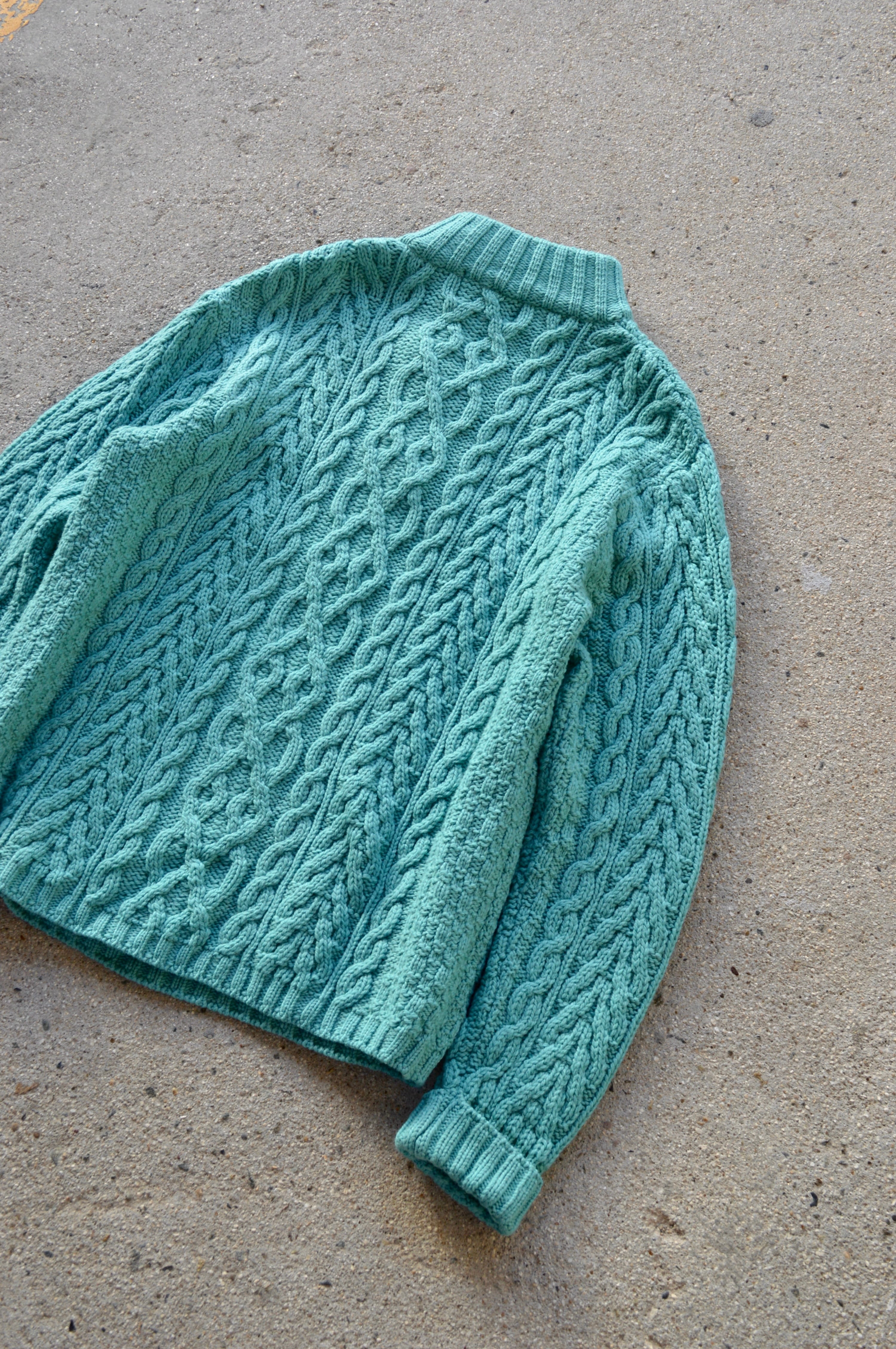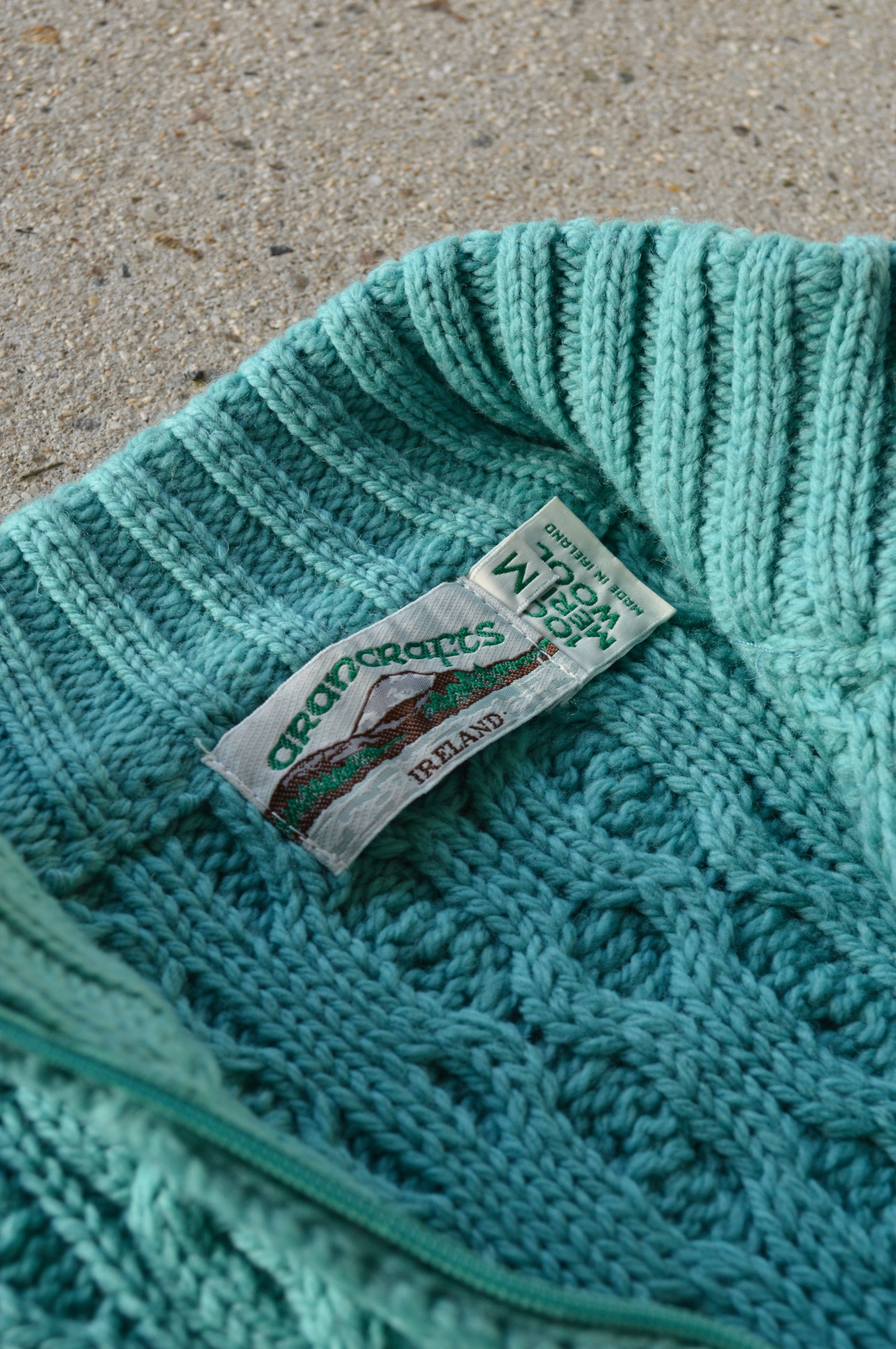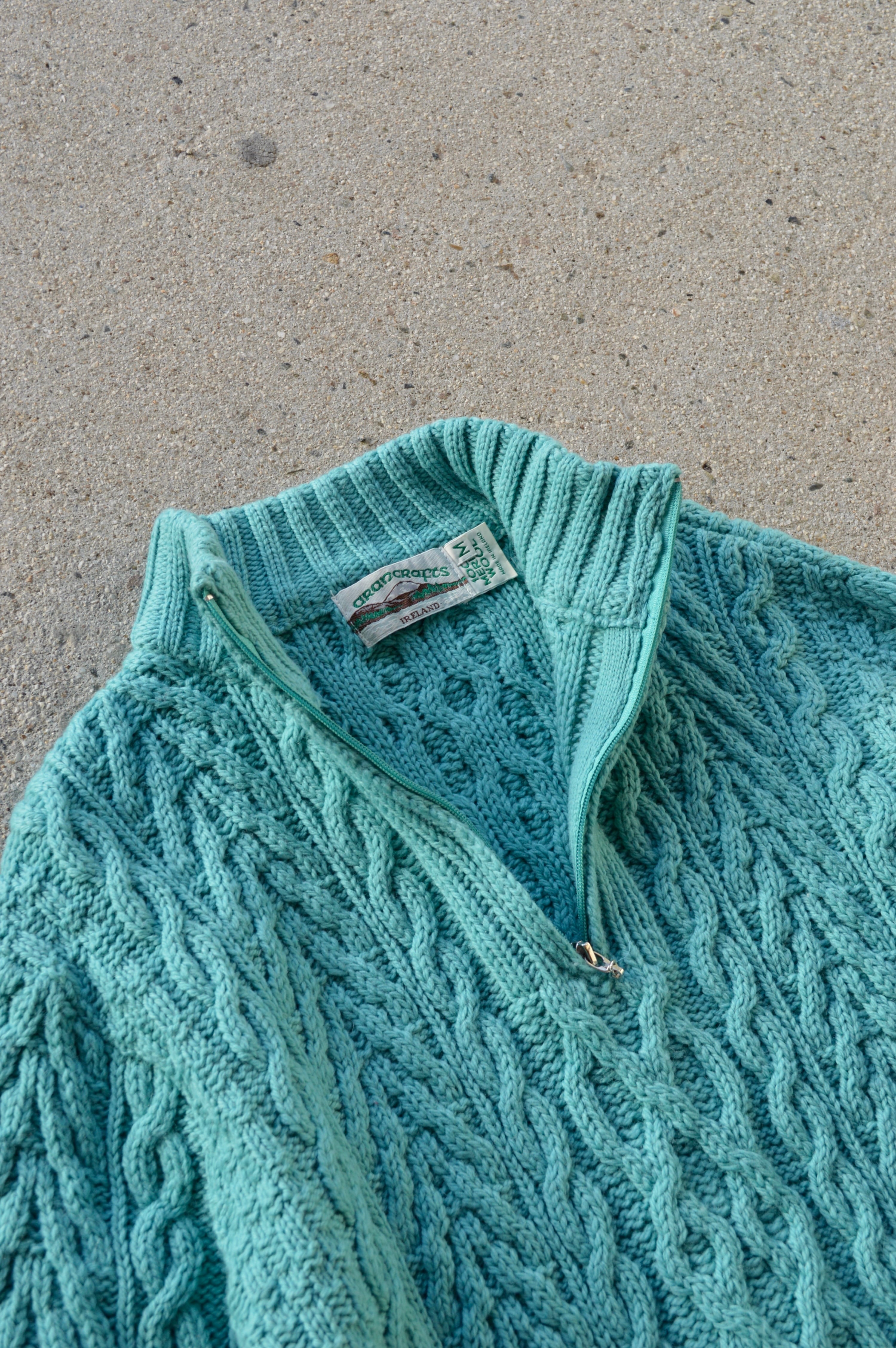 arancrafts 90s Harf Zip Fisherman Sweater Made in Ireland Merino Wool Turquoise アランクラフト 90年代 フィッシャーマンセーター
