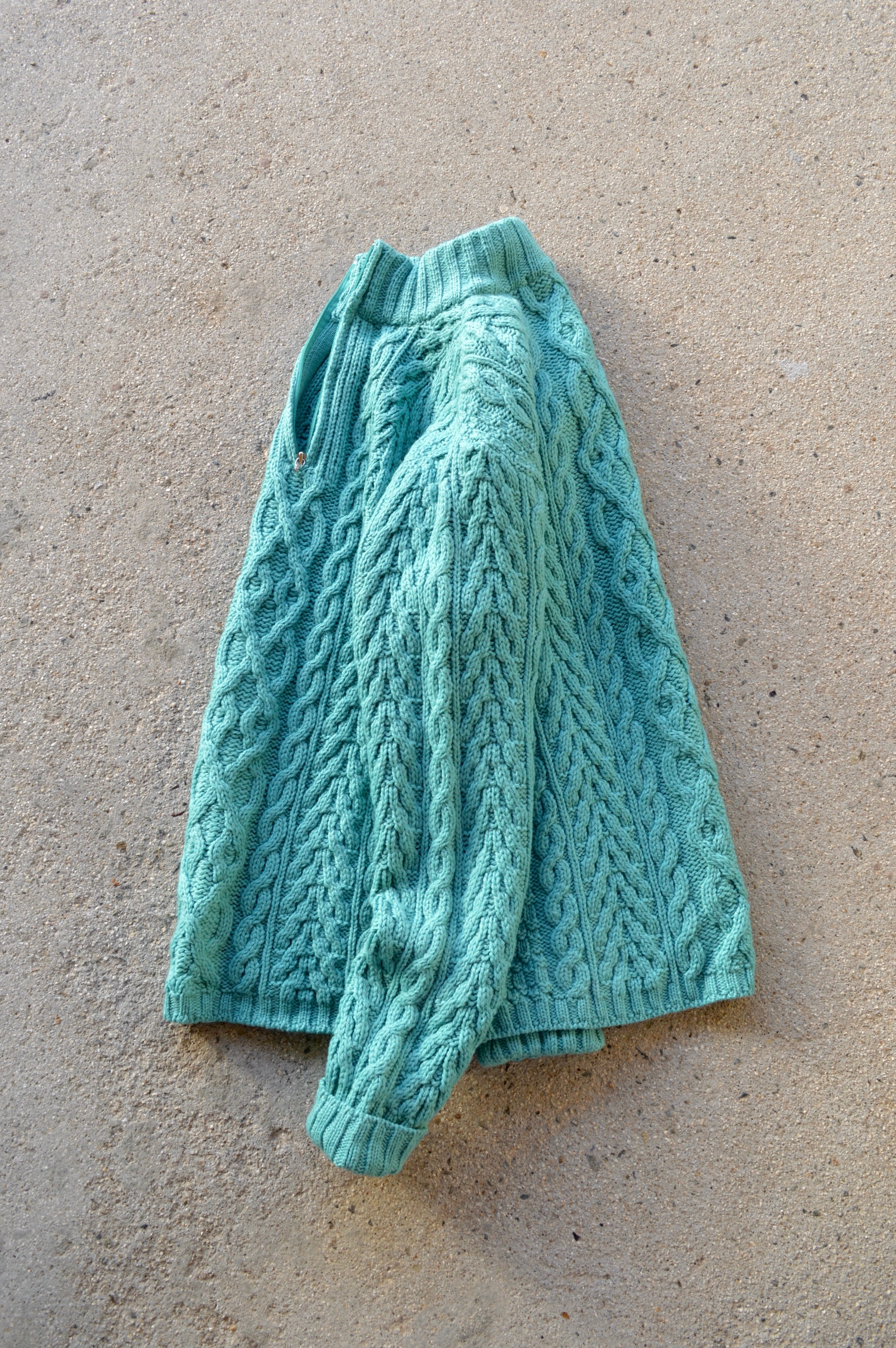 90年代制の油分を取り除いたローゲージミドルウエイトのフィッシャーマン編みハーフジップセーター。