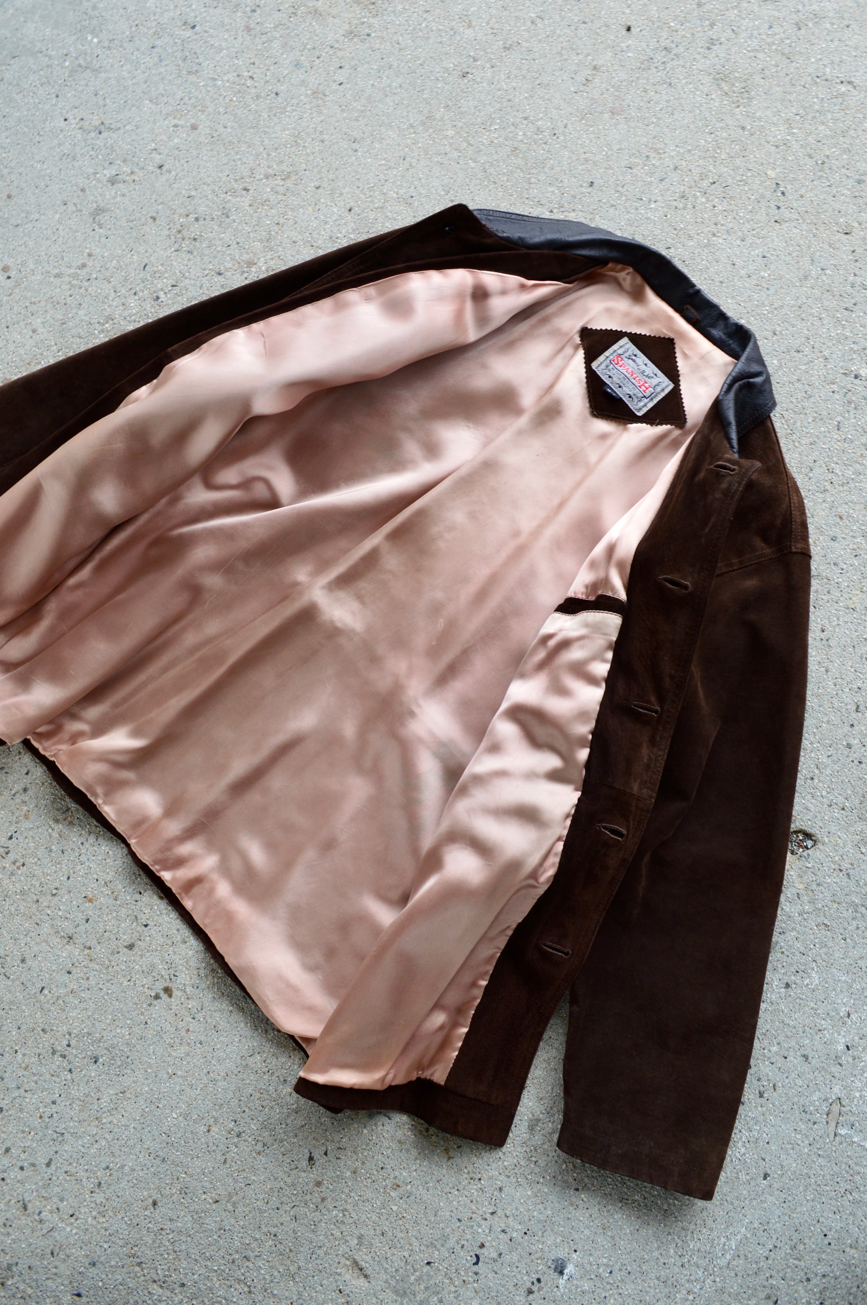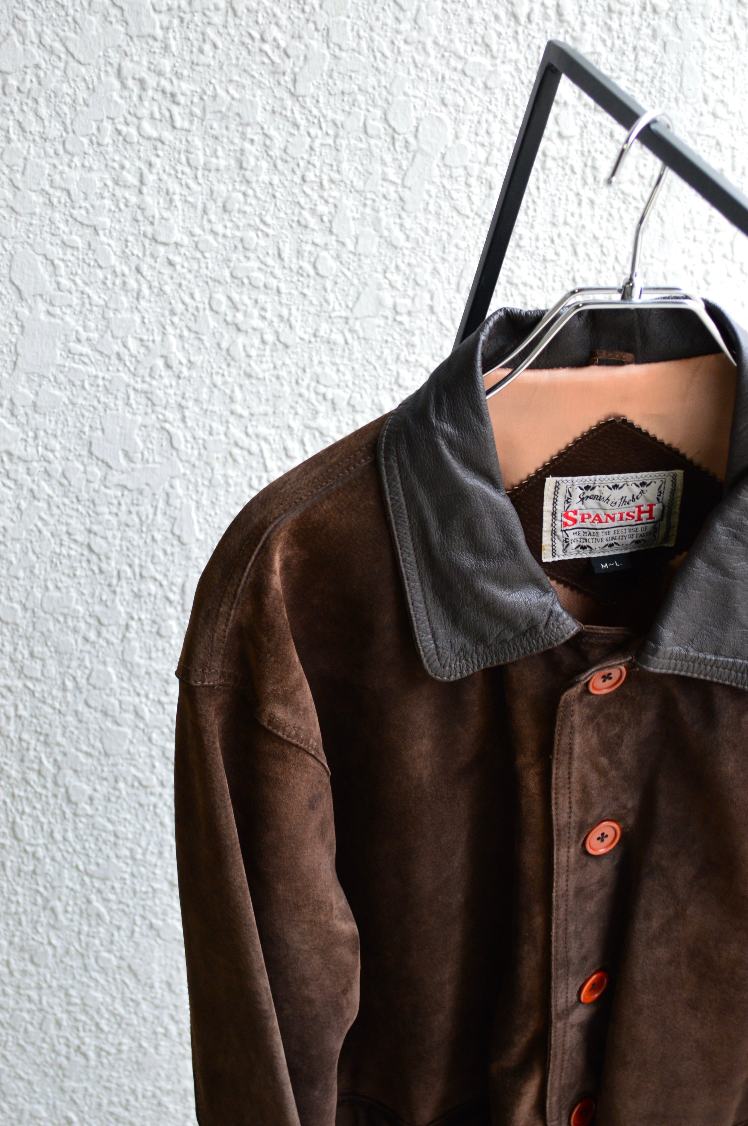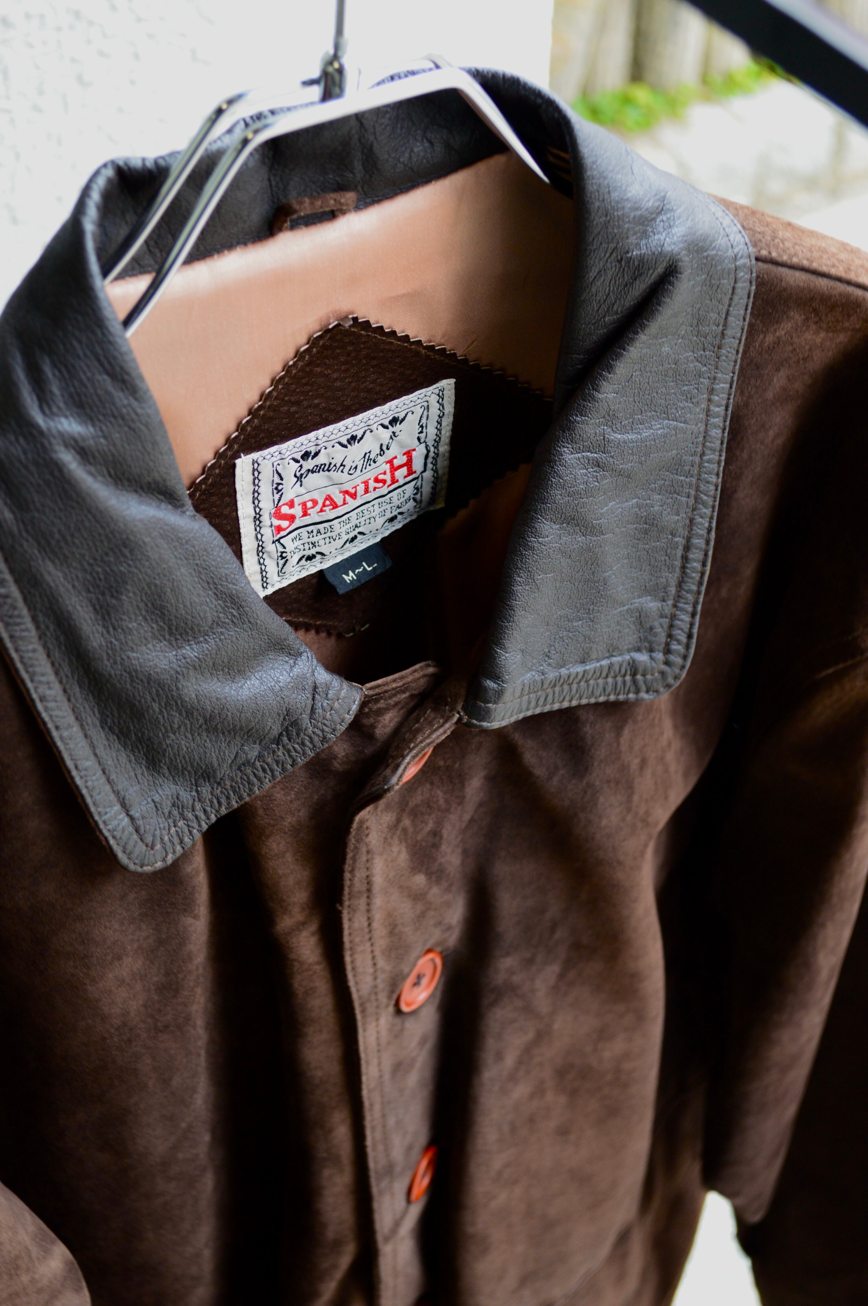 《Spanish Asian Used Old Leather 1980-90's Pig Suede Leather Car Coat》