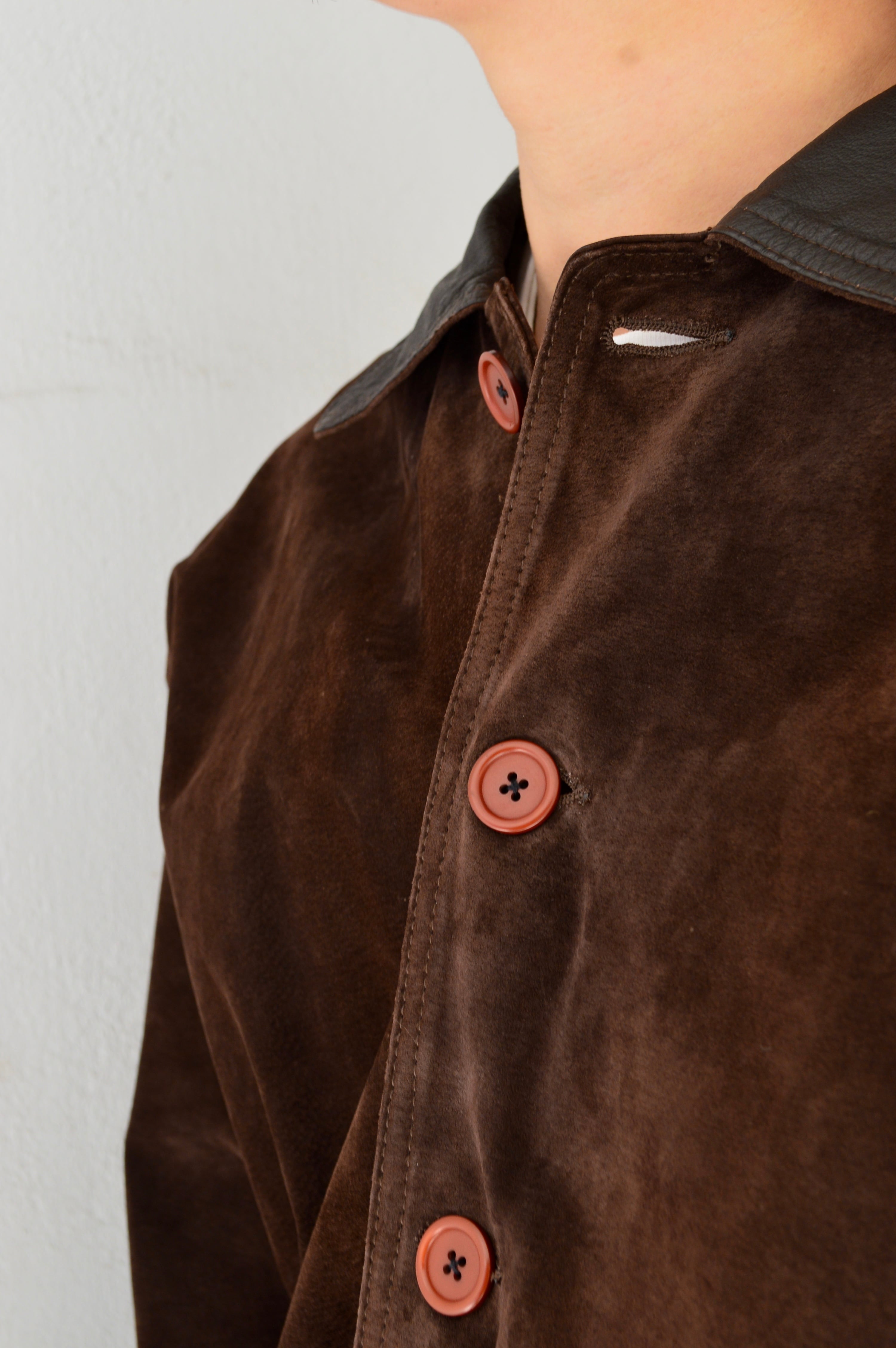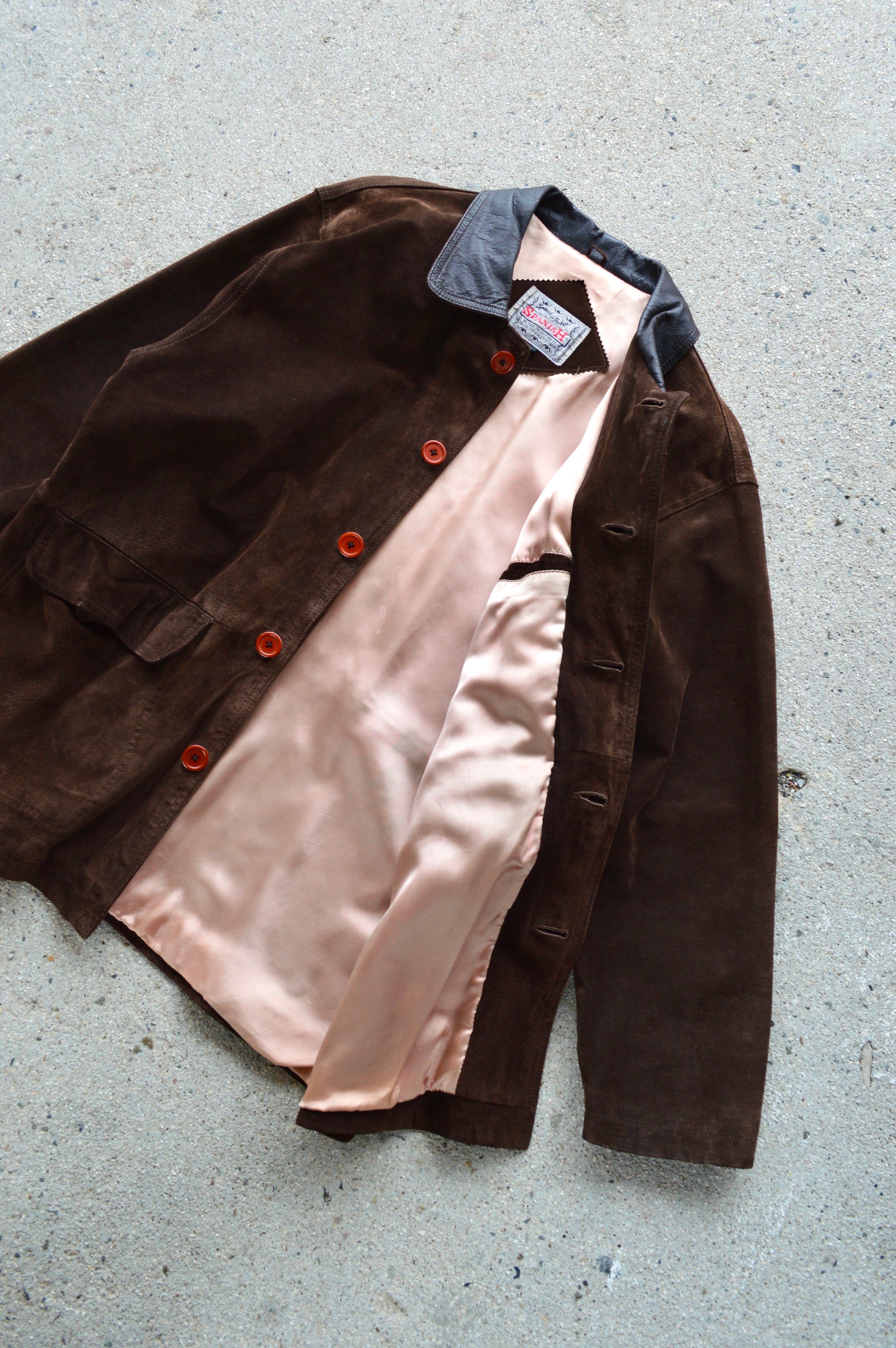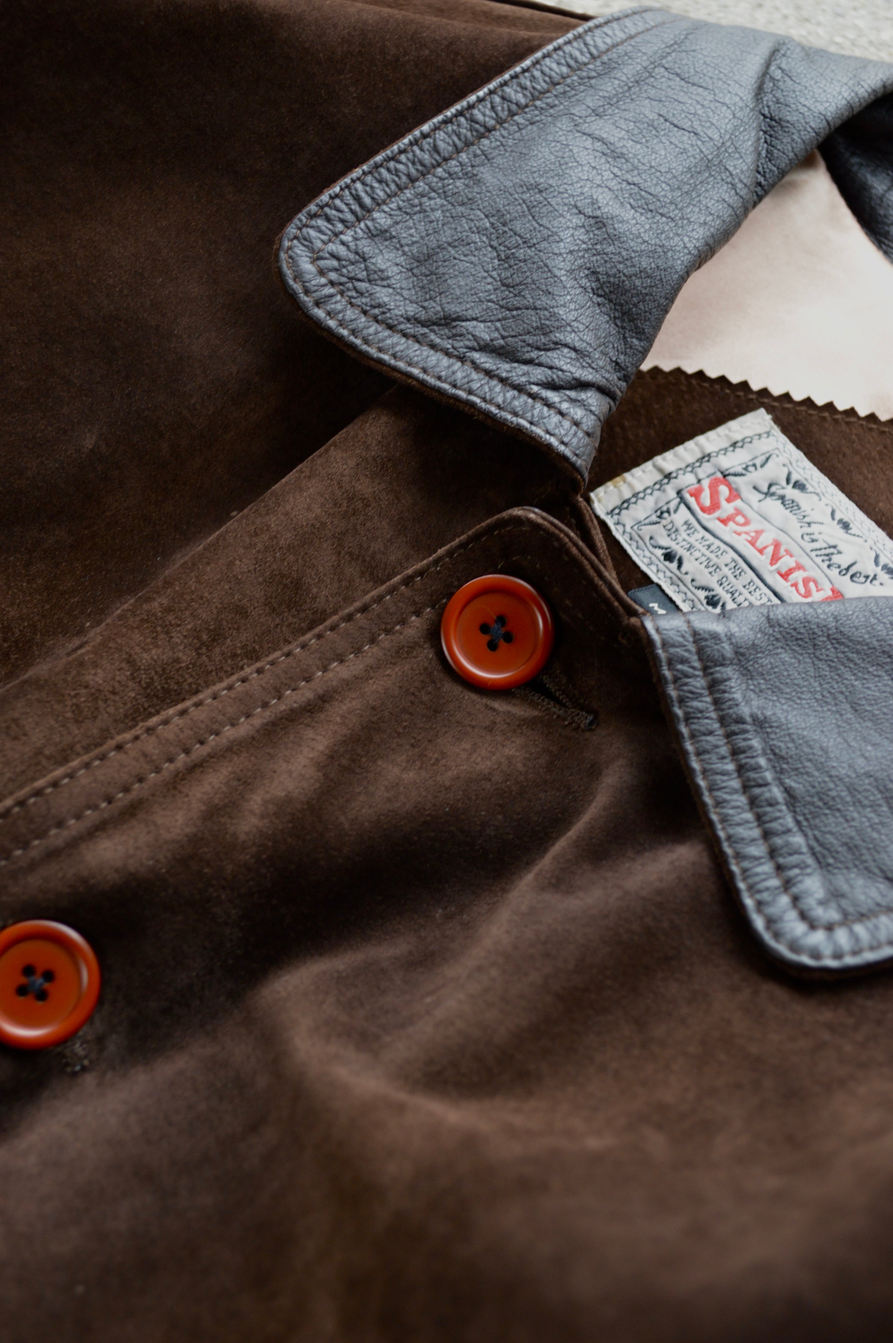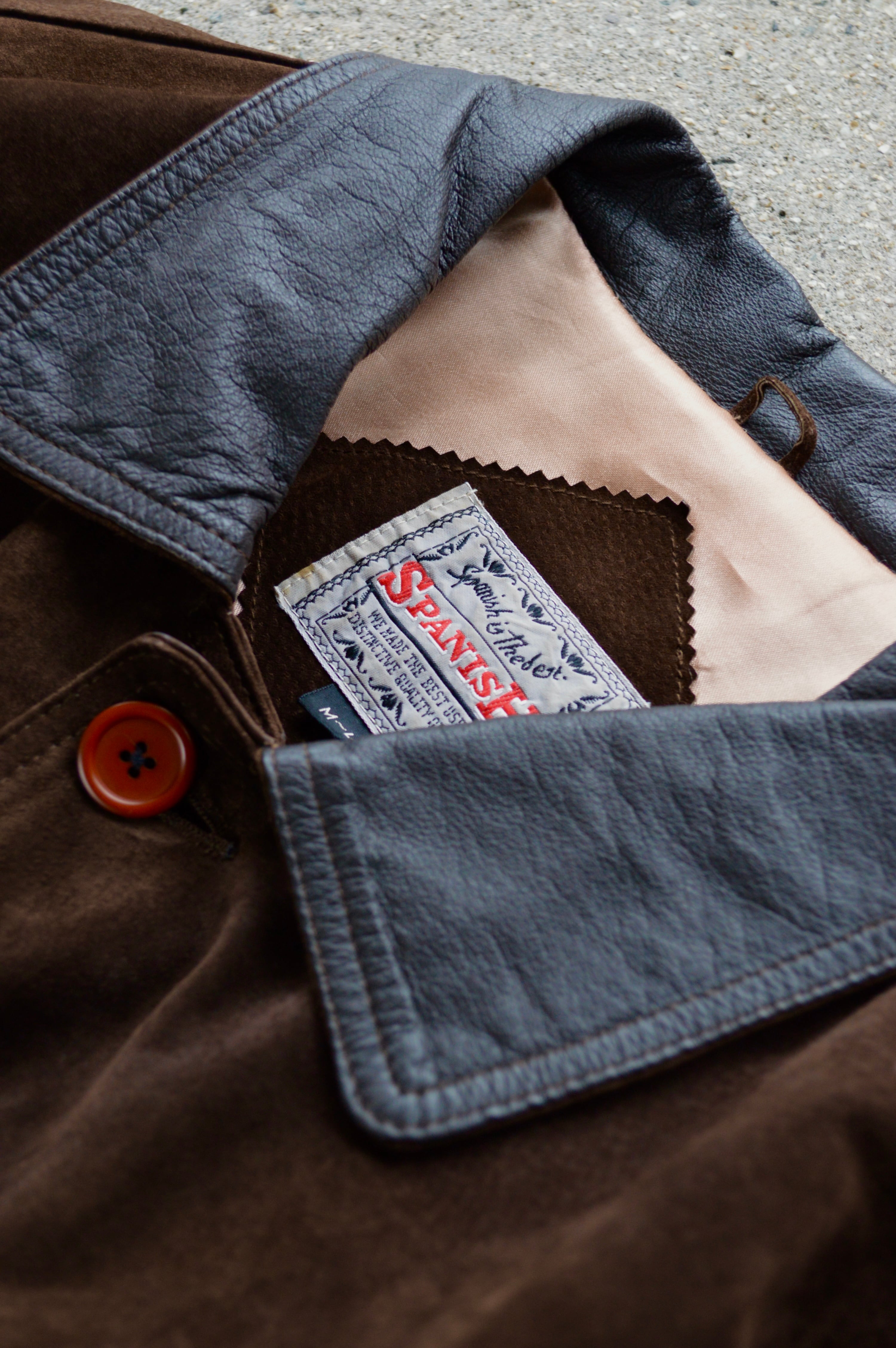 《Spanish Asian Used Old Leather 1980-90's Pig Suede Leather Car Coat》
