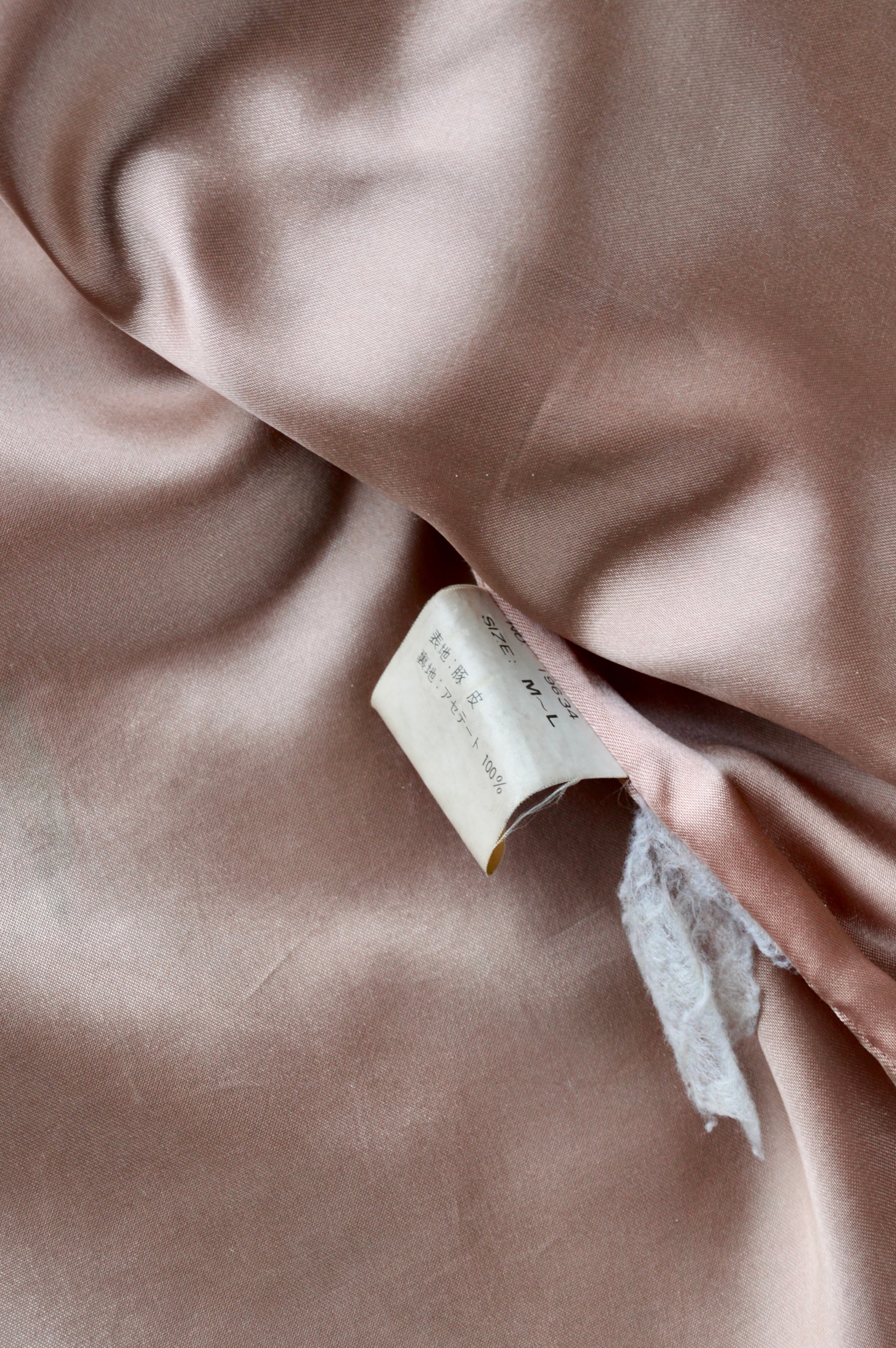 裏地は同系の淡いサーモンピンクのアセテート裏地が施され、滑りも良く重ね着も難なく可能。