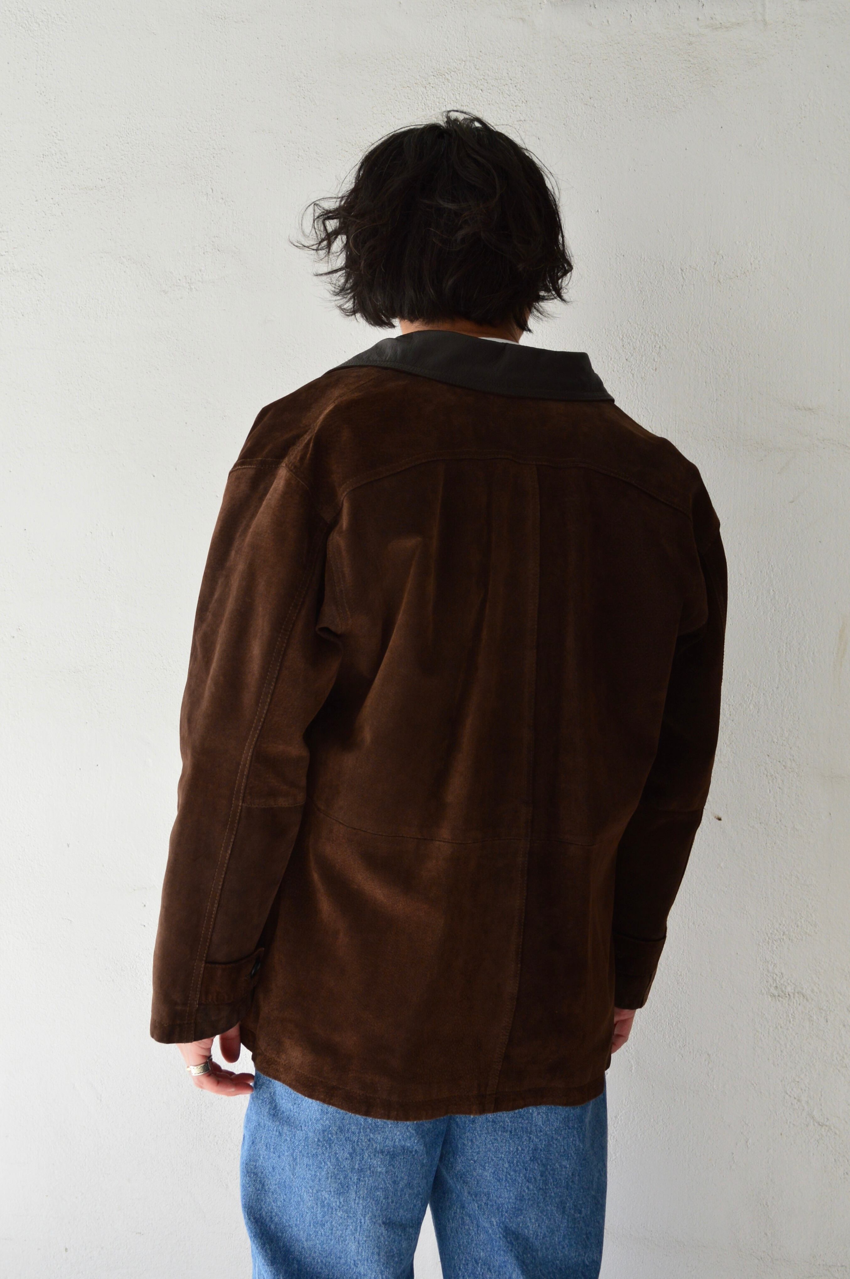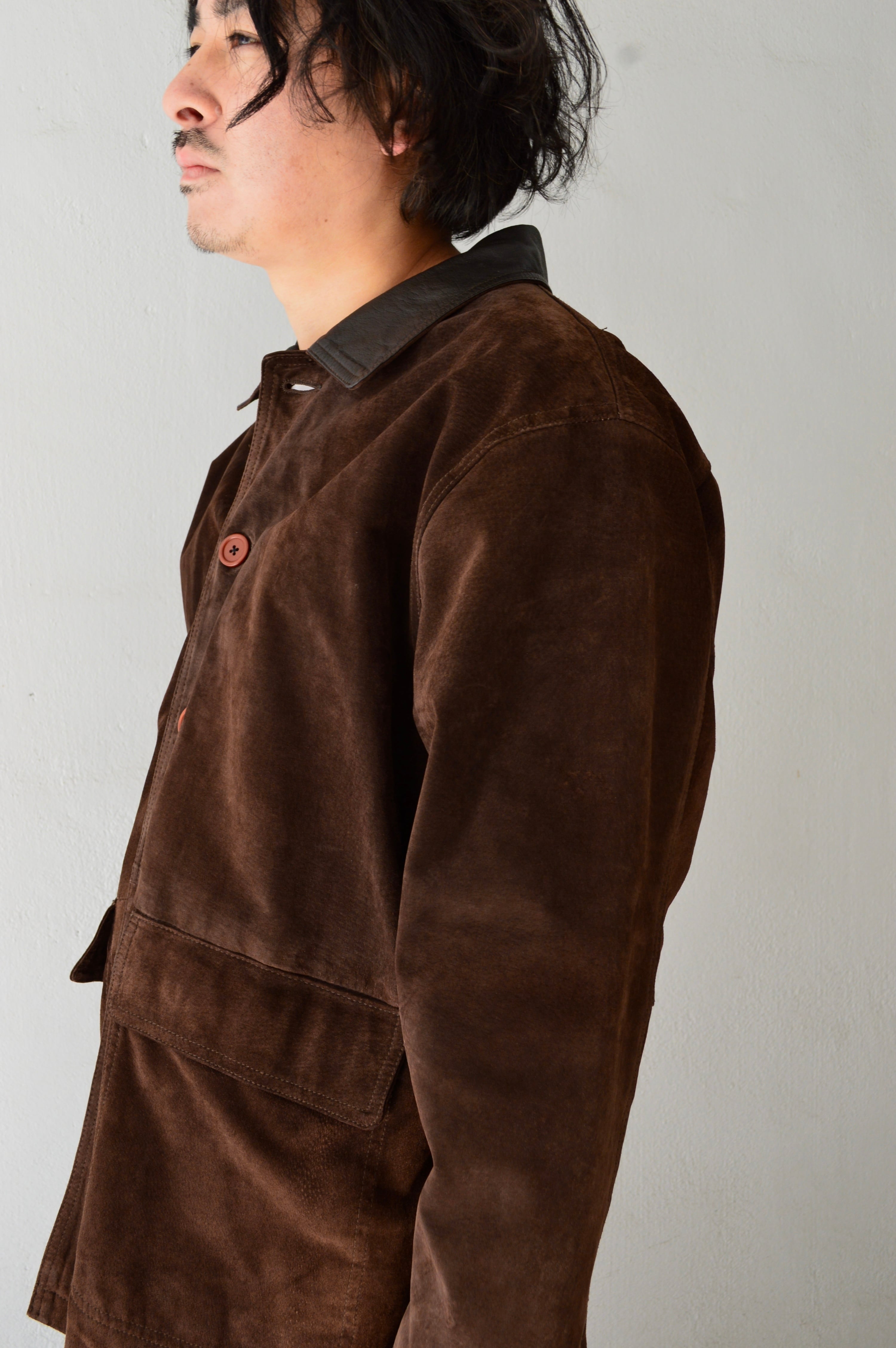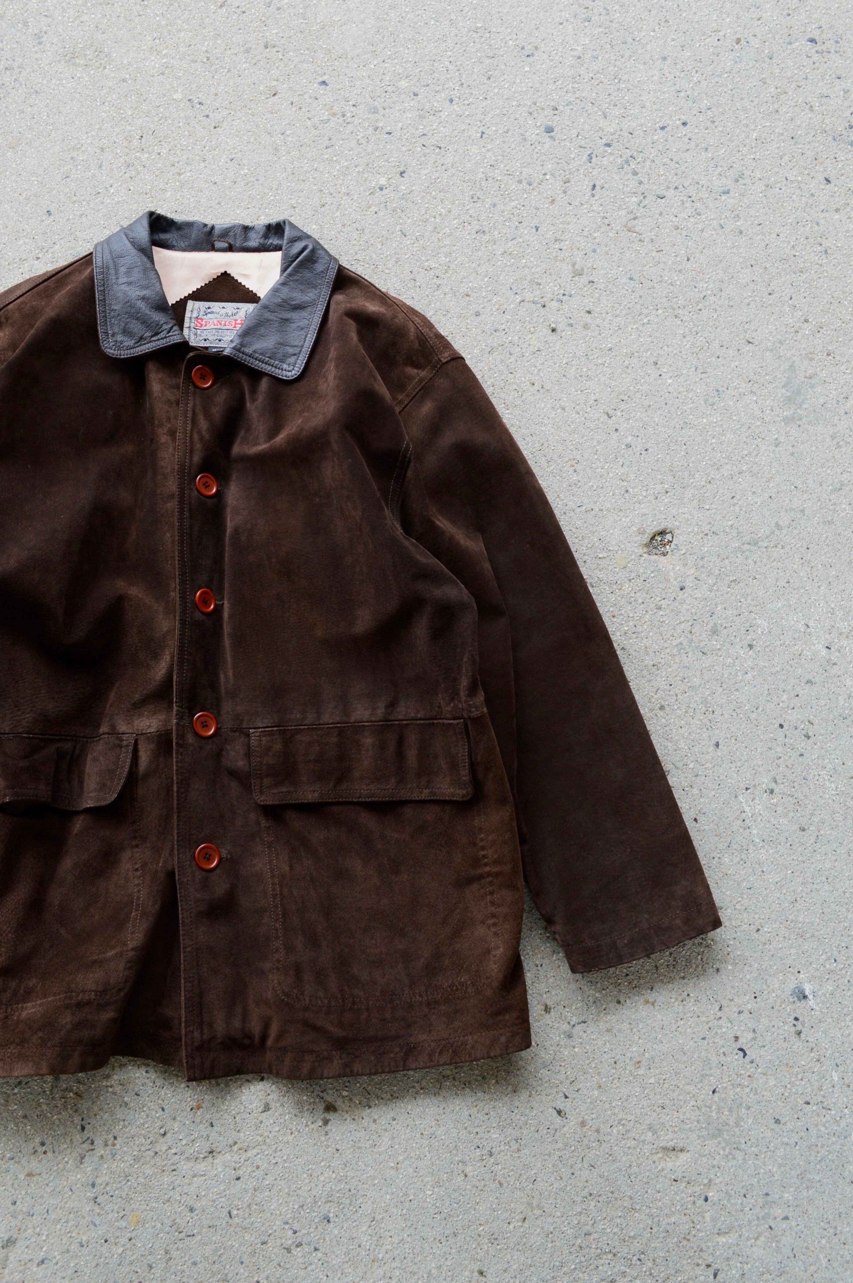 Spanish Asian Used Old Leather 1980-90's Pig Suede Leather Car Coat カーコート 90s スエードレザー