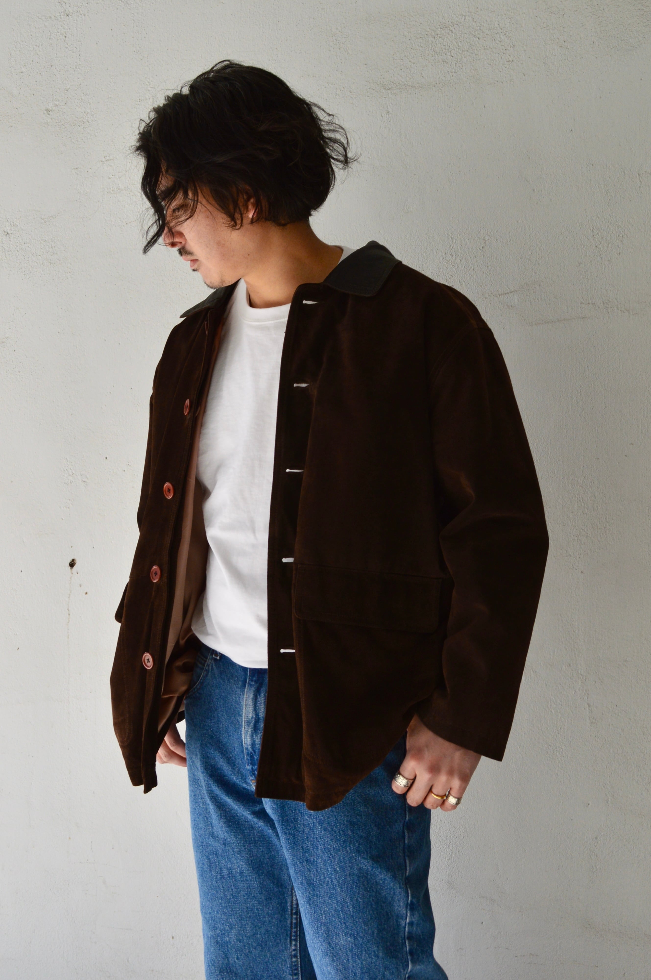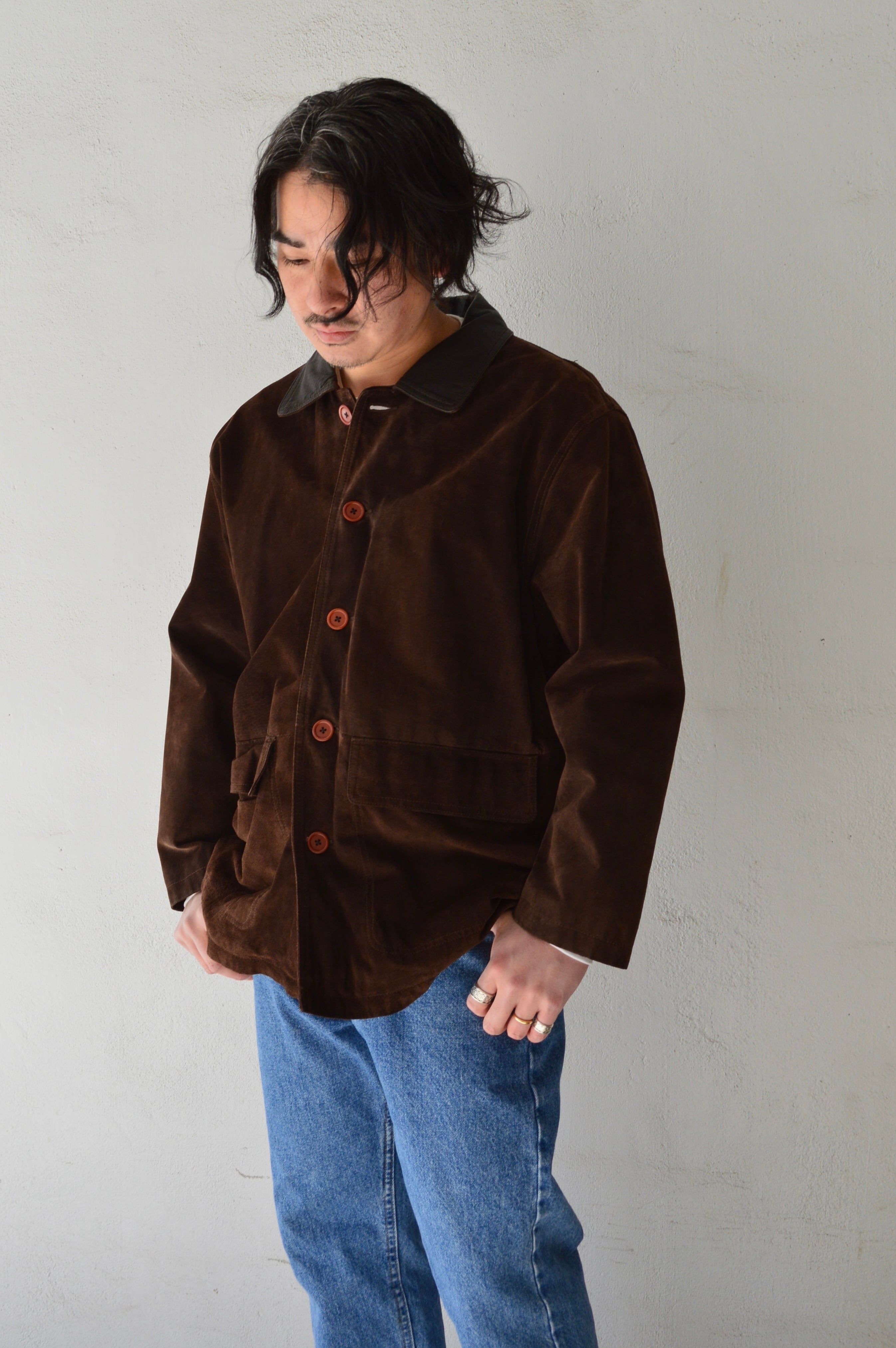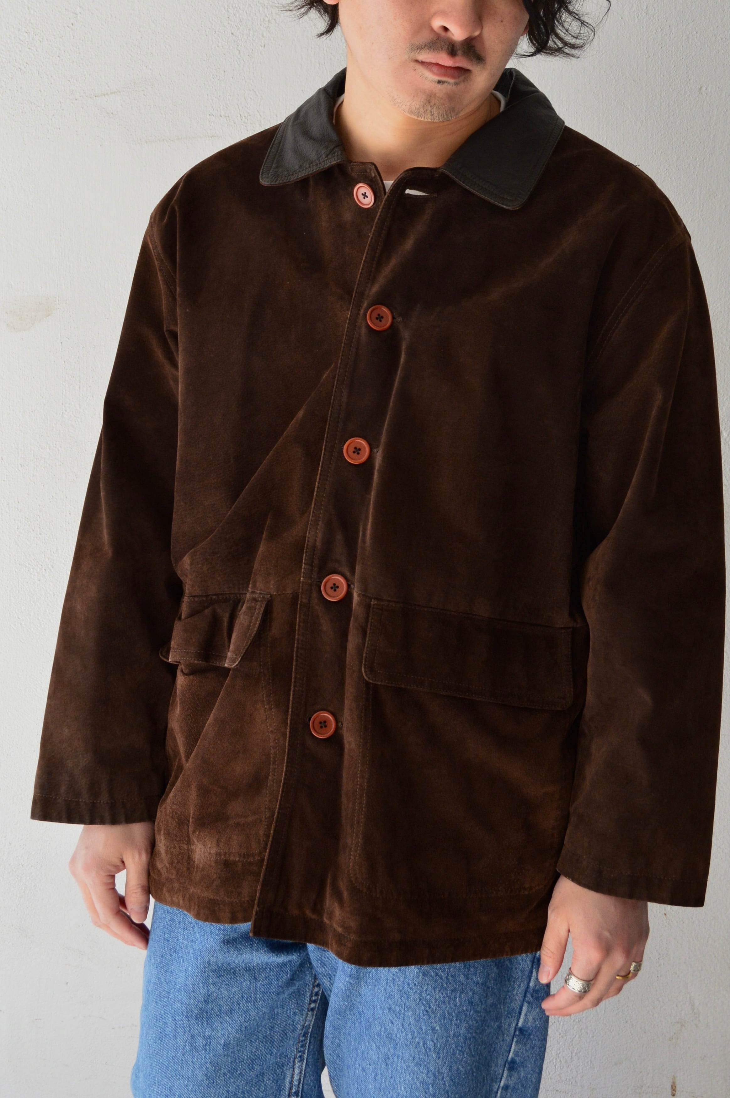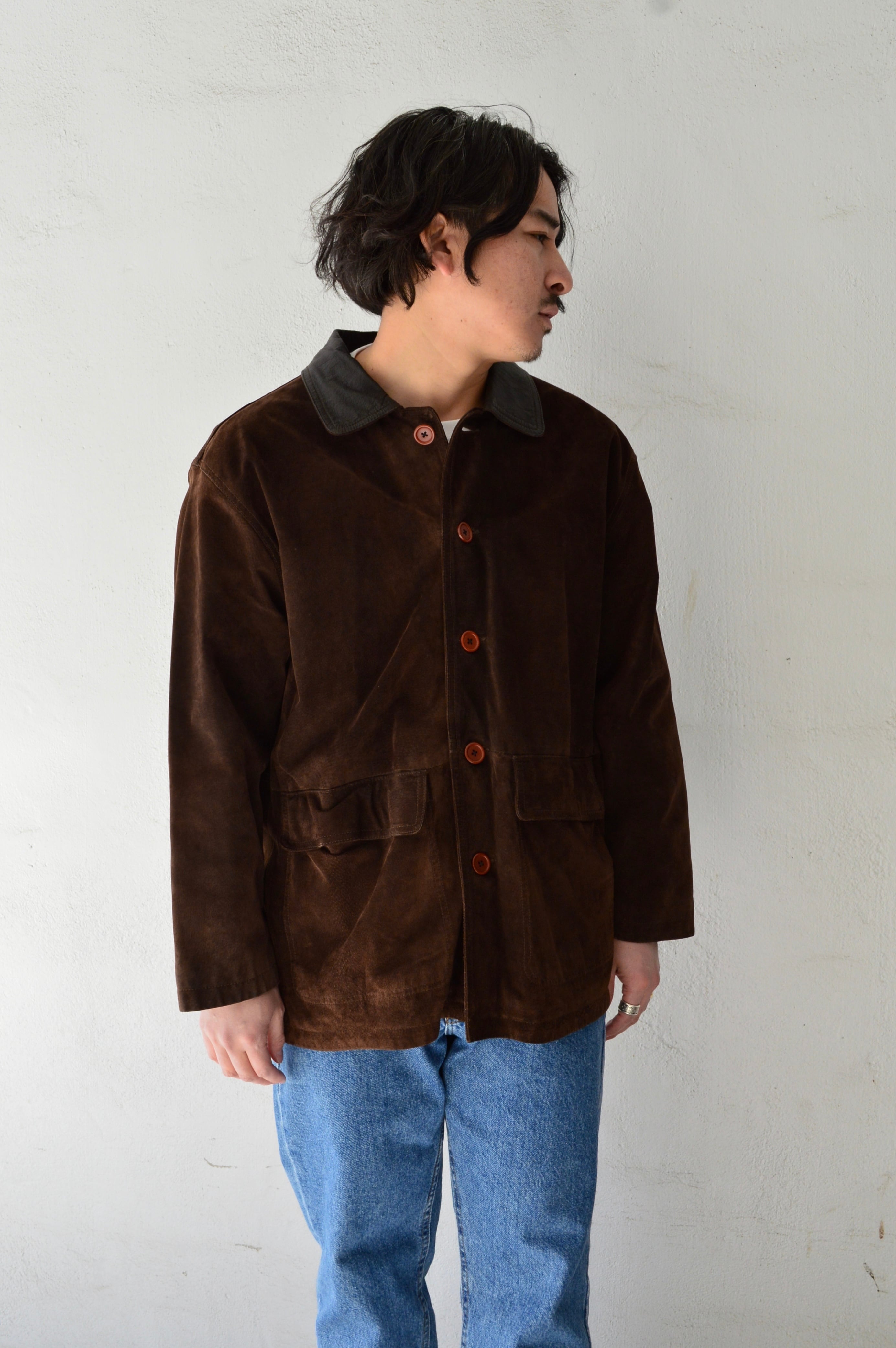 Spanish Asian Used Old Leather 1980-90's Pig Suede Leather Car Coat カーコート 90s スエードレザー
