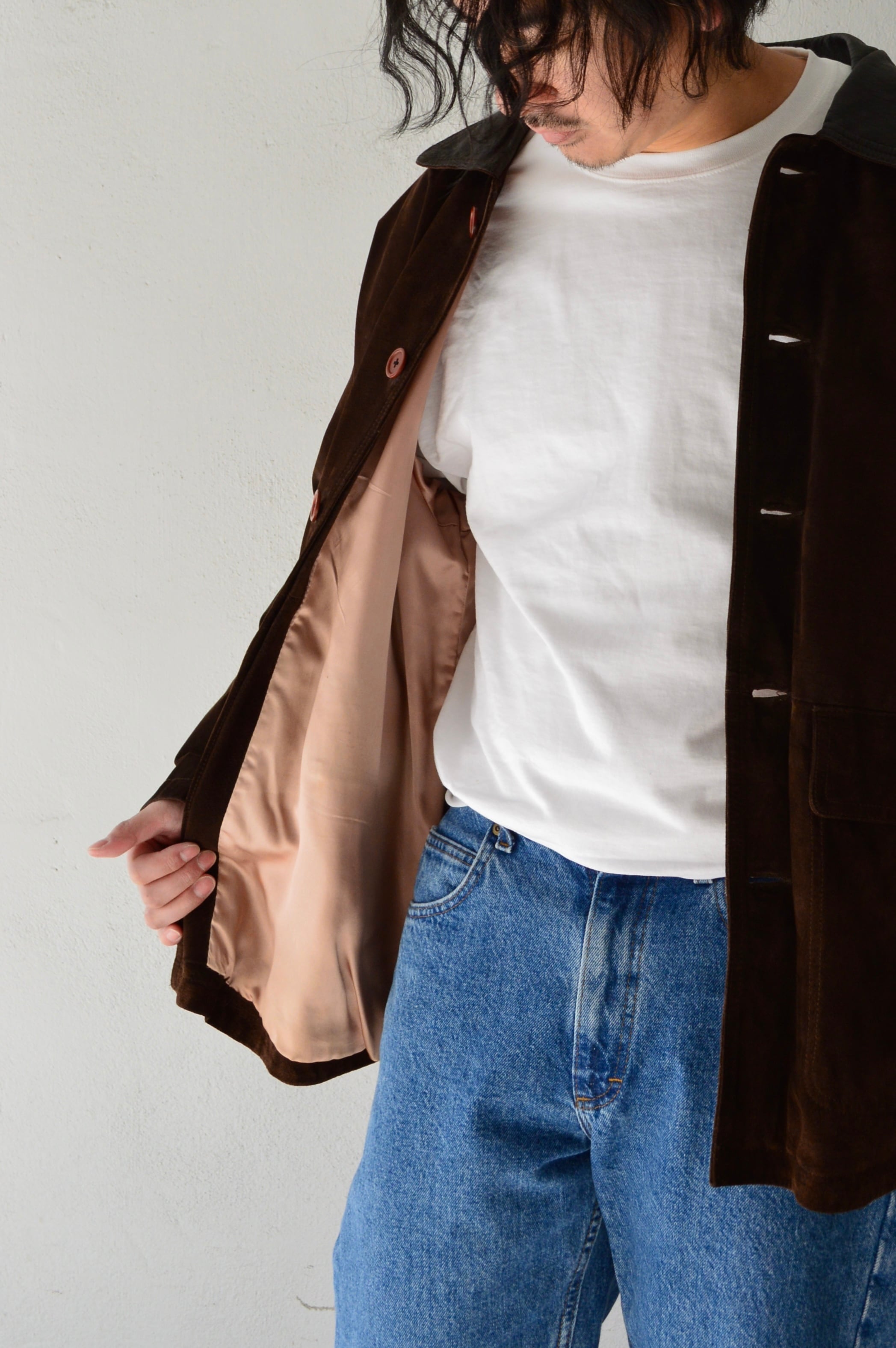 また、オールドピッグスエードならではの毛足の見える質感が表情良く、味がある一着です。