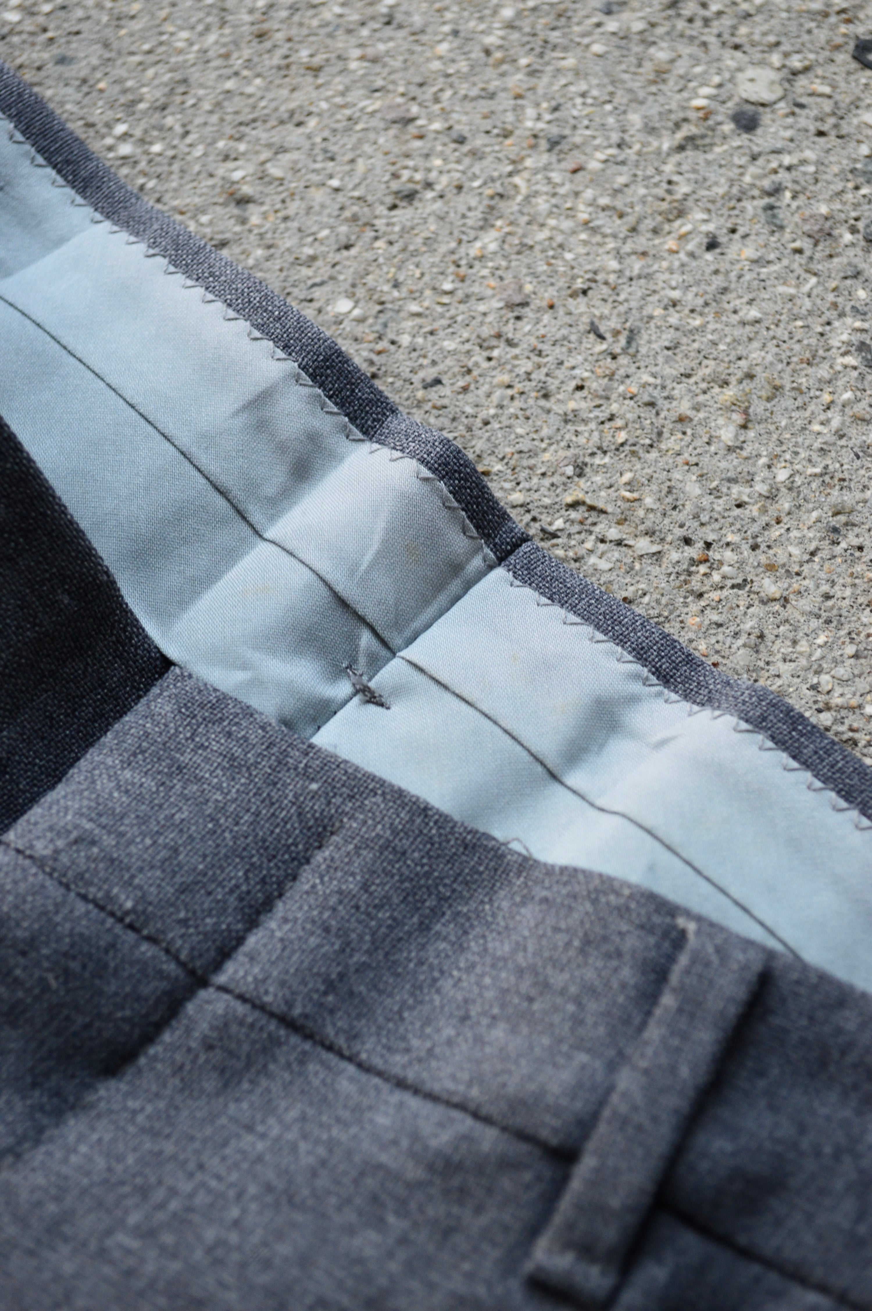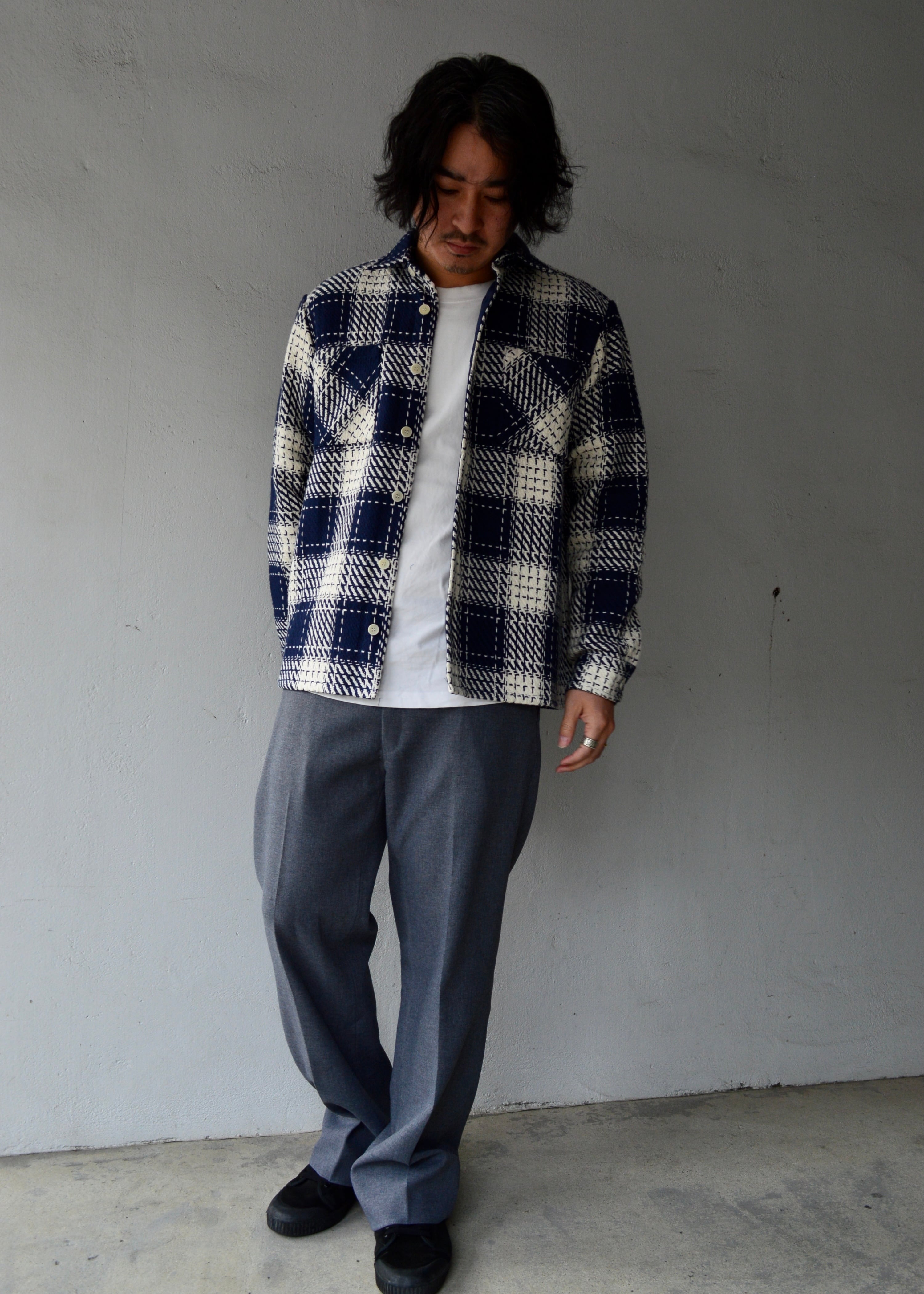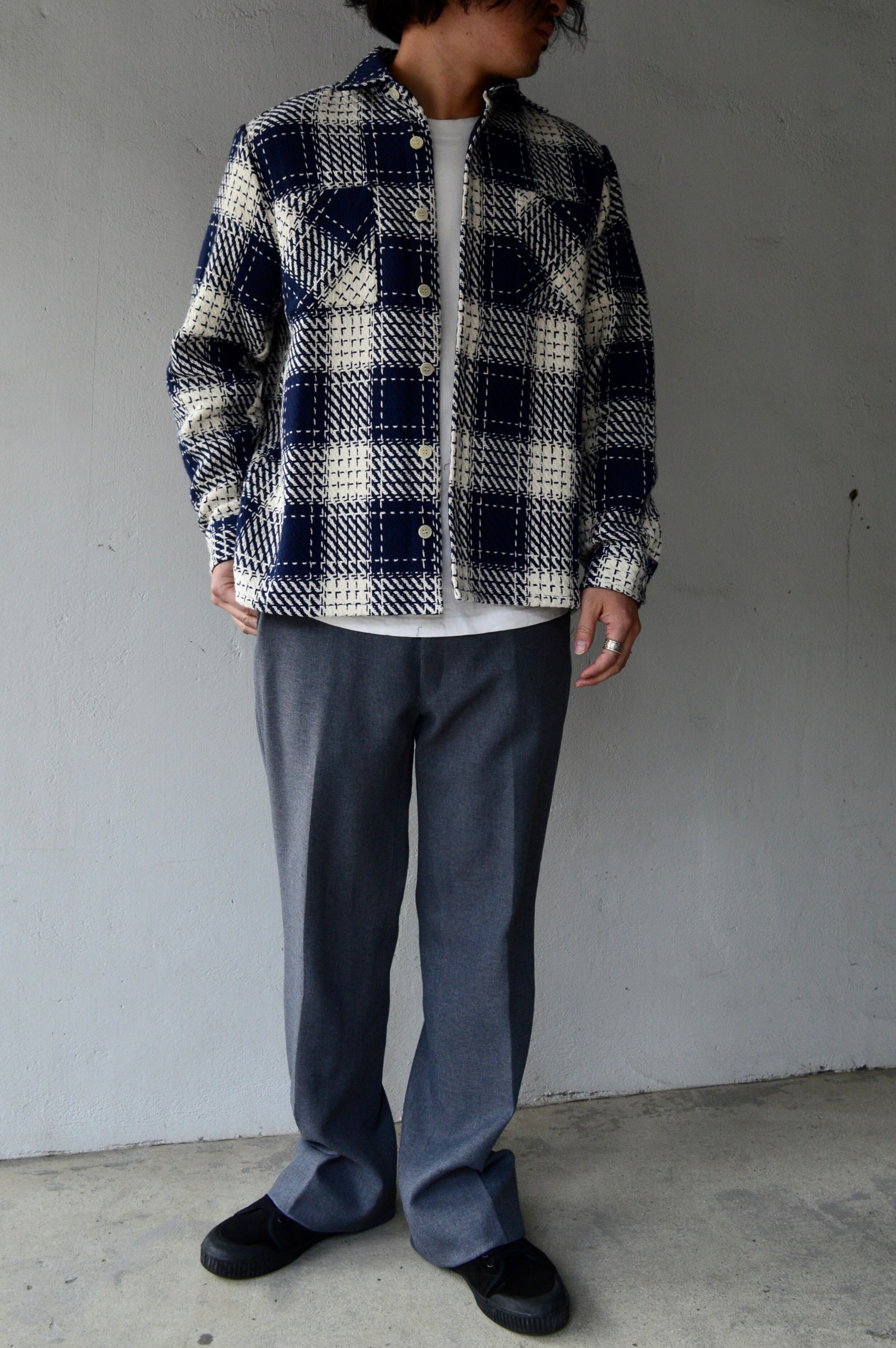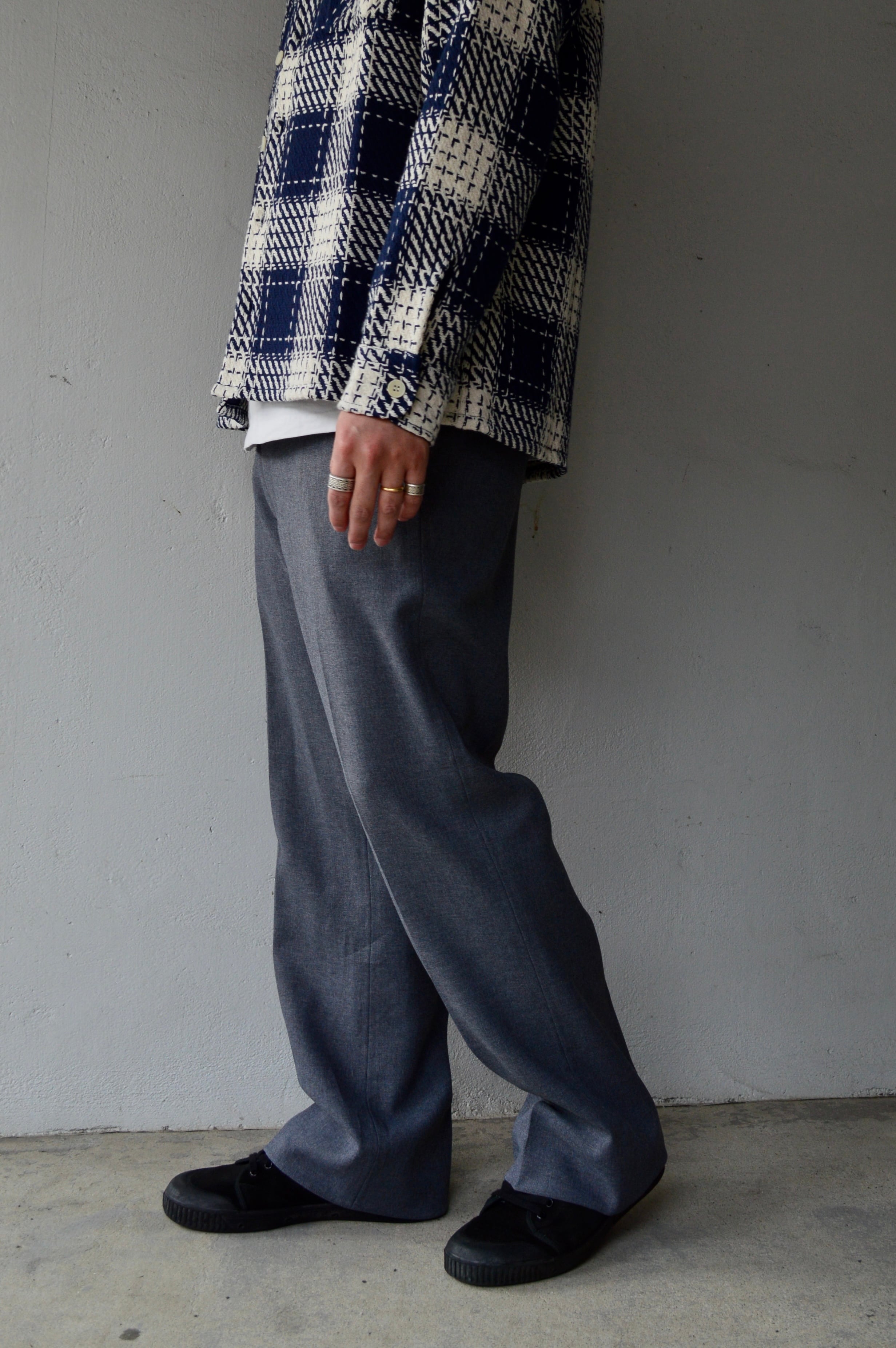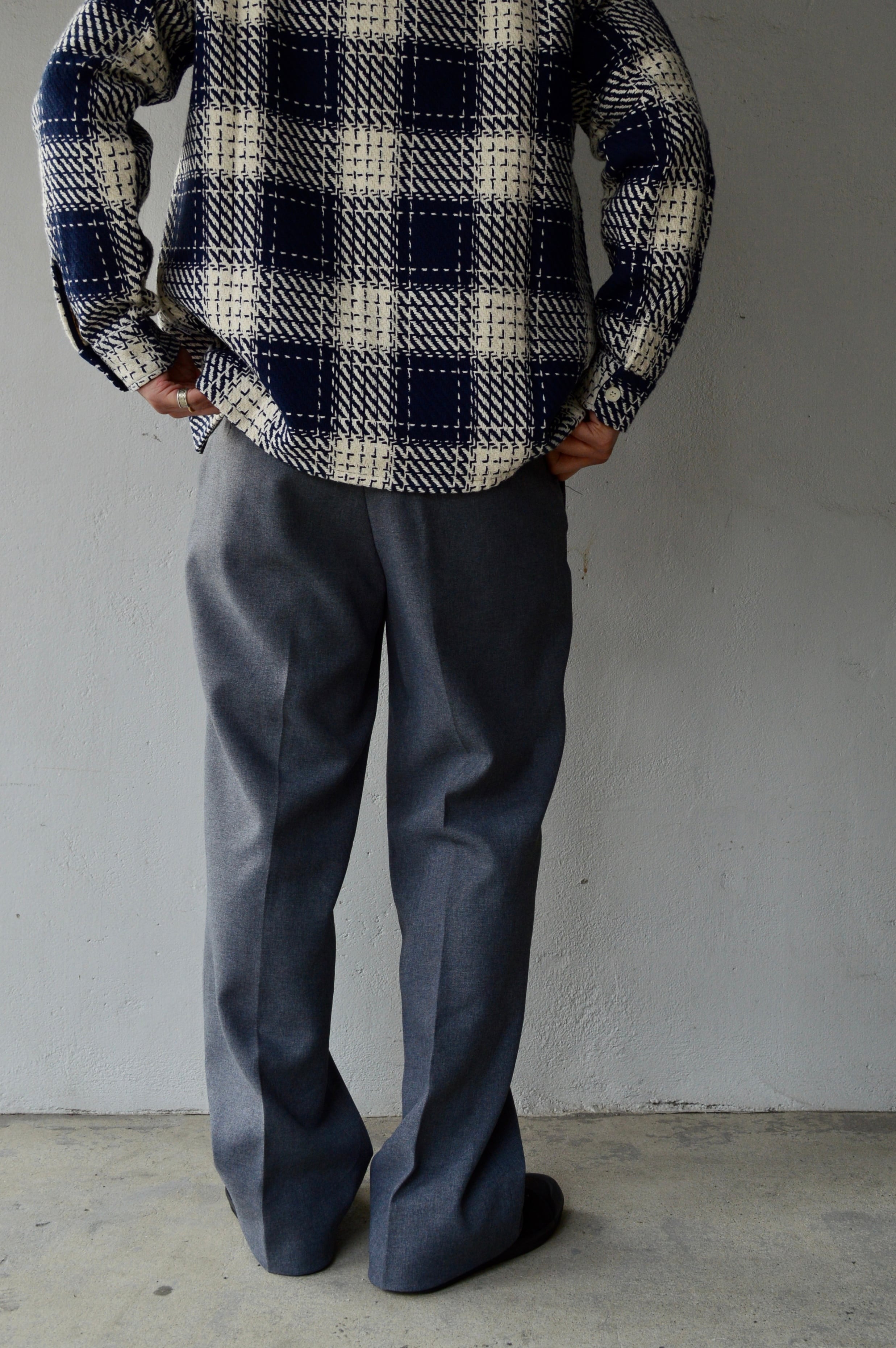 滑らかなポリスラックスになり、クラシックなセミフレア型の太めシルエット。