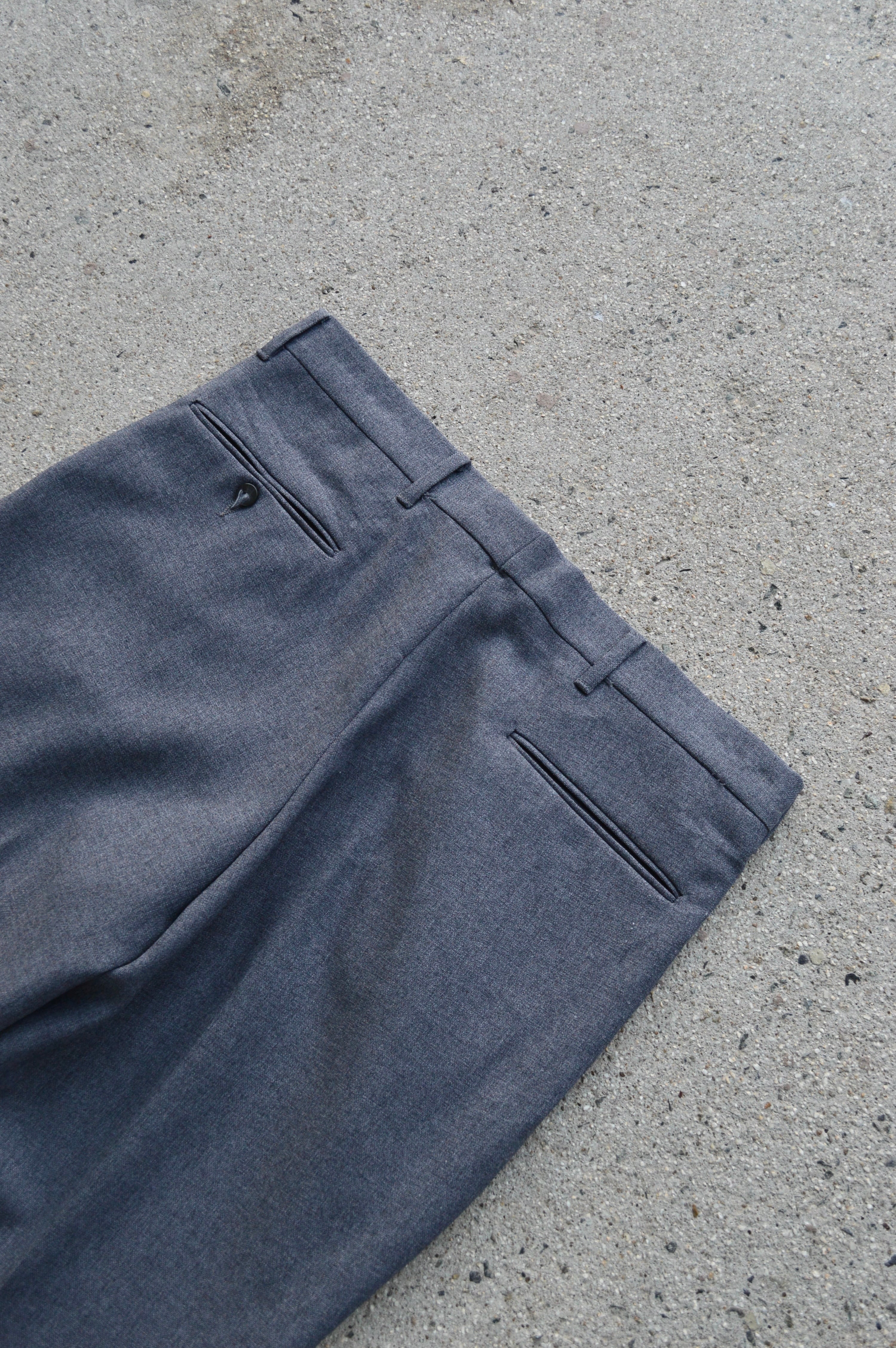 デッドワークパンツ特有の内シールラベルが付いたままのデッドストックになり、色や質感、シルエット共に揃ったオールドポリスラックス。