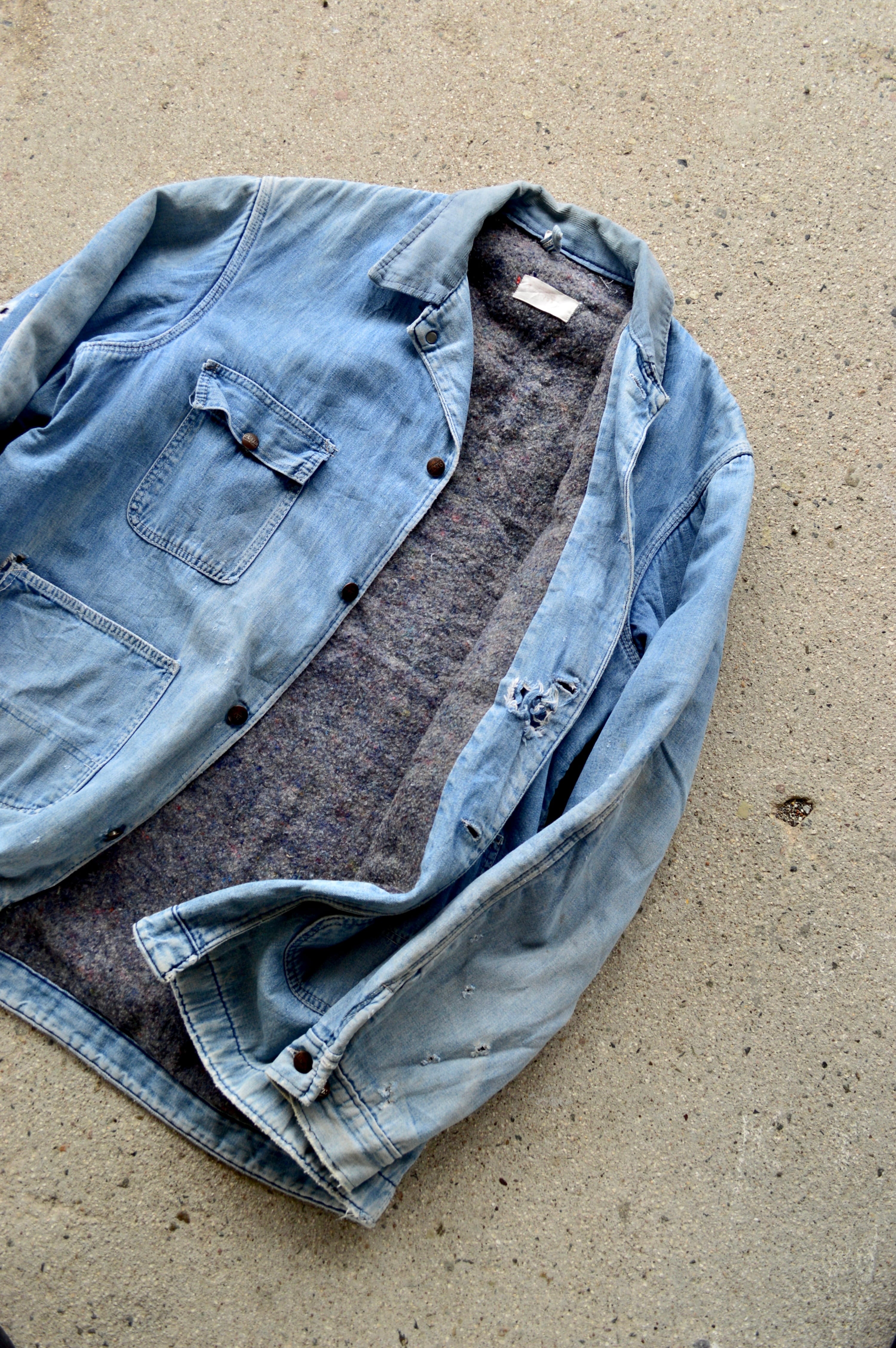 緩やかなフィットフーディ合わせなど重ね着に適した48サイズ。カットソー合わせで春着用にもおすすめです。ブランケットライナーが破れなく付いた、希少な48のヴィンテージアイテム。