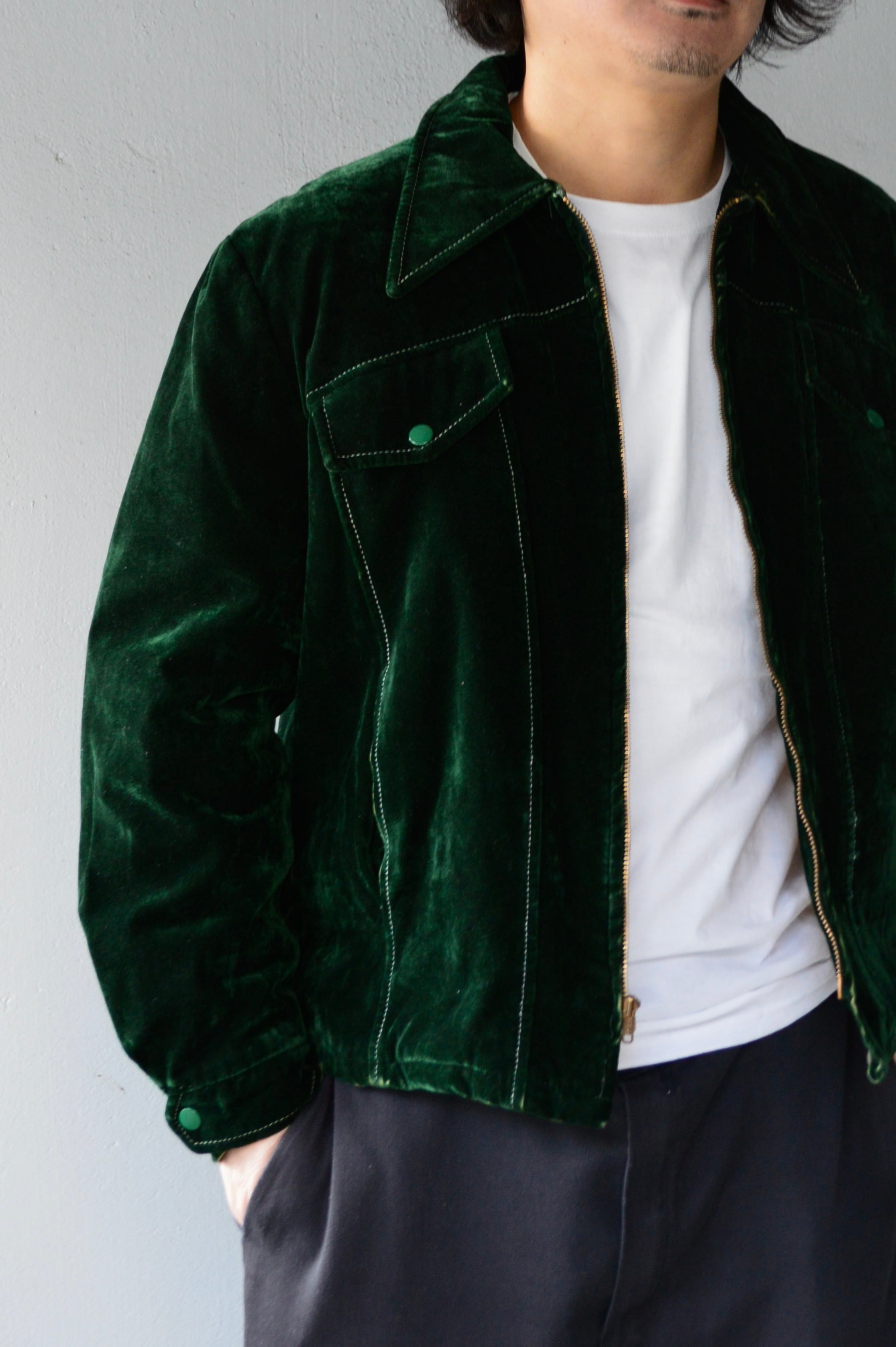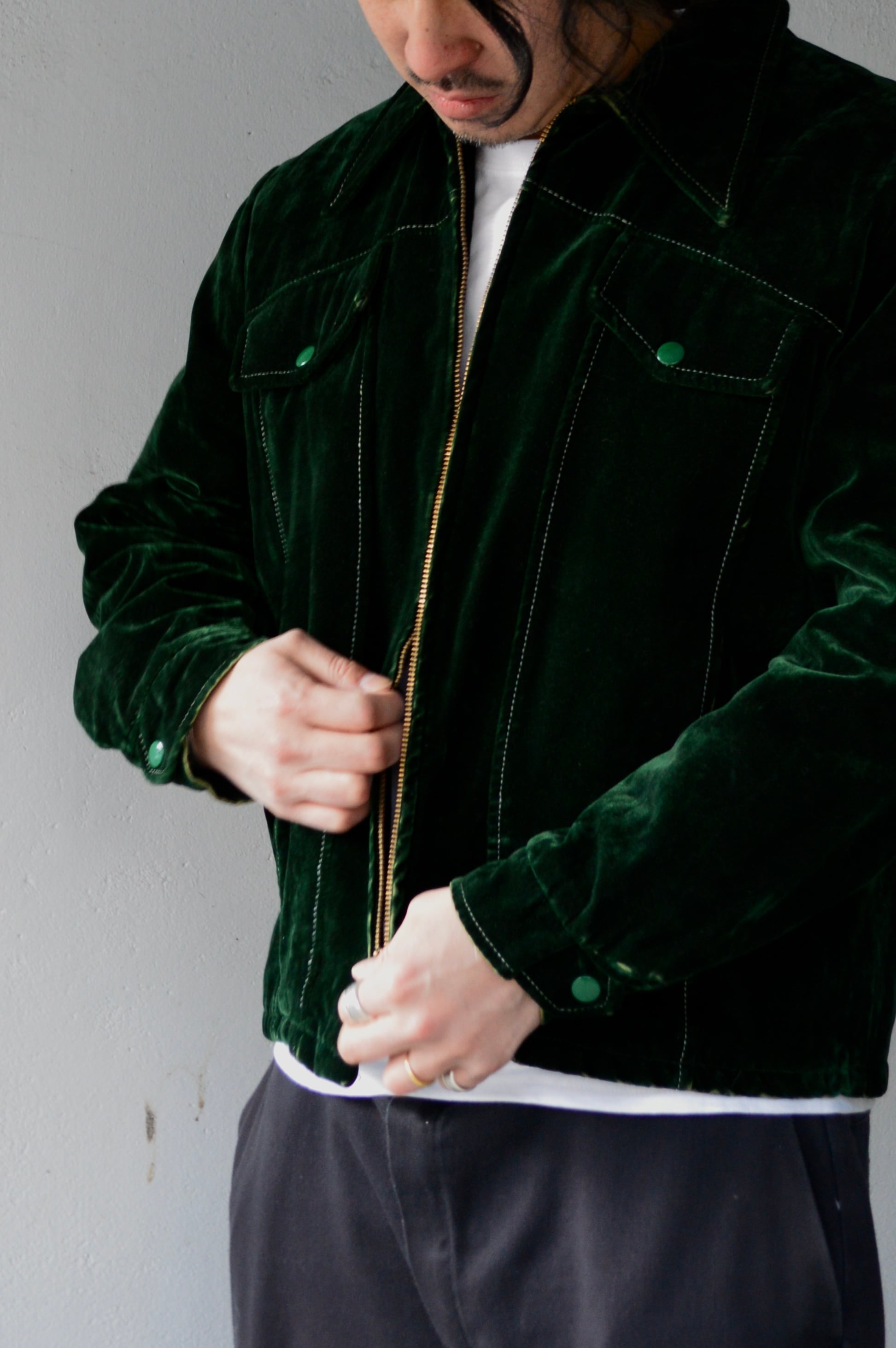 珍しいベルベットタイプのジッパートラッカーになり、重厚感ある一着。