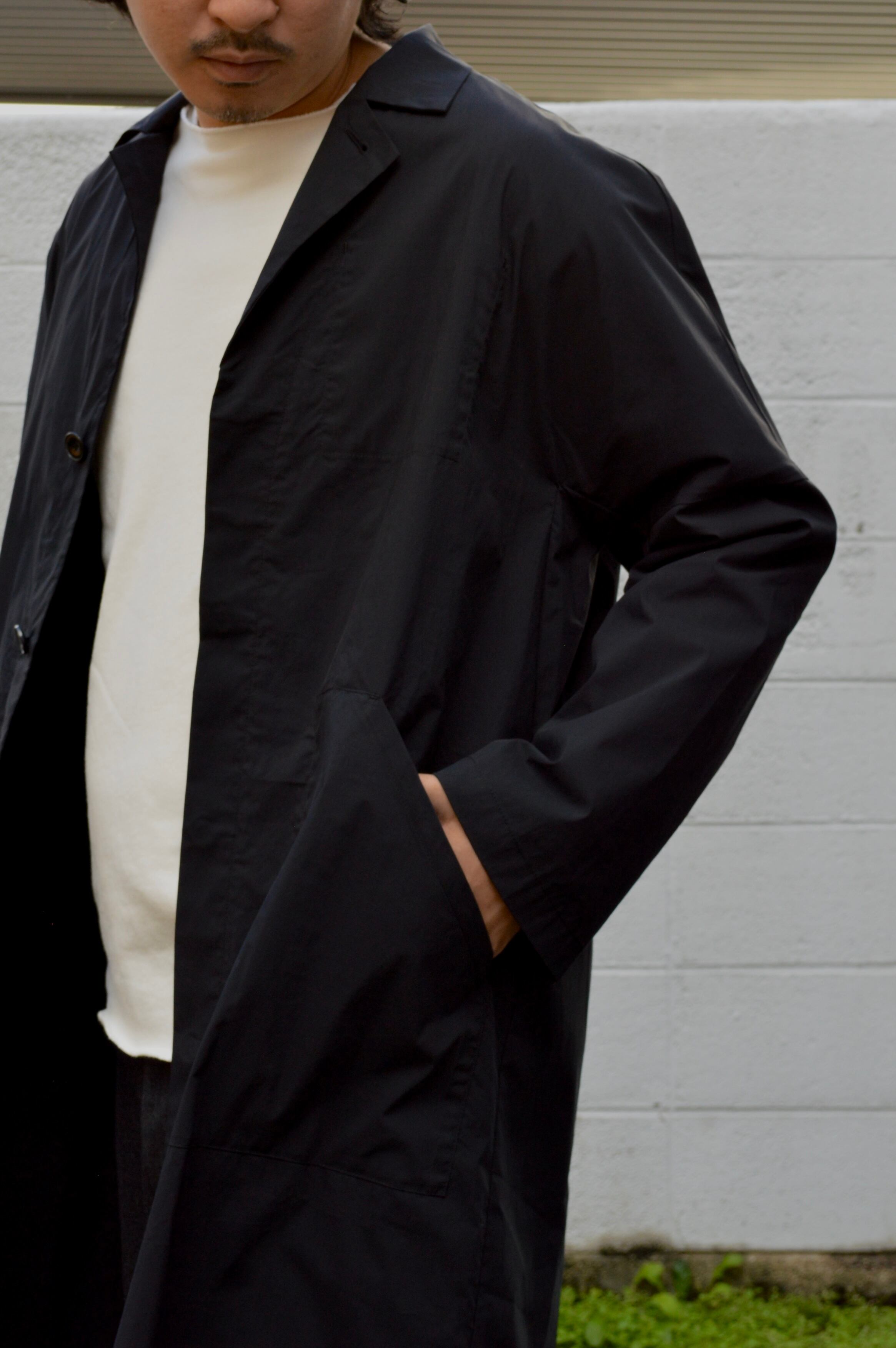 もともと軍用開発されたウェザークロスナイロンをベースに、ファッション用途向けに改良された生地の薄手スプリングシャツコート。