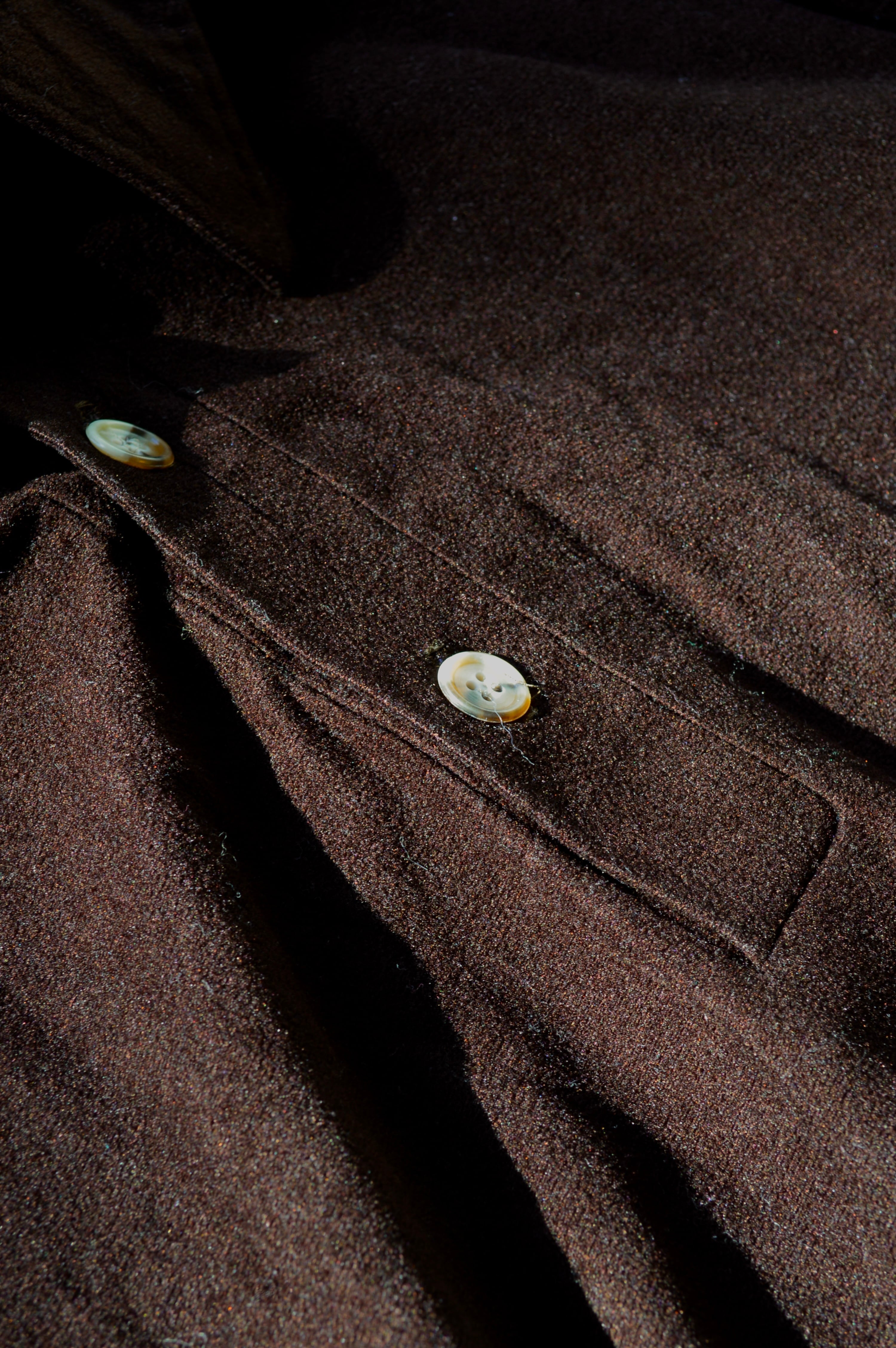 カラーマッチしたマーブルボタンもブラウン別珍と相性良く、シンプルでもさりげないデザイン性が際立つUS古着です。