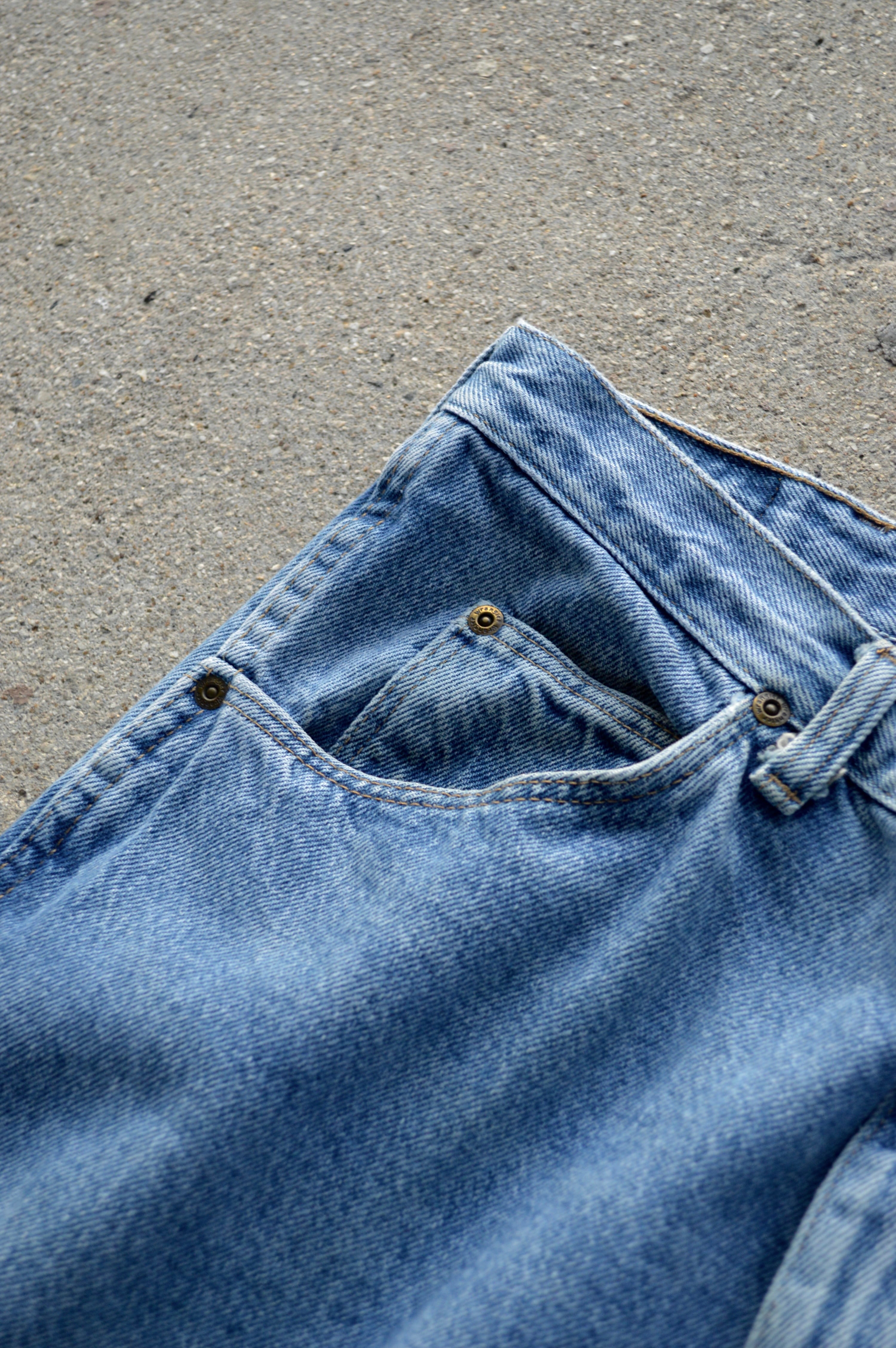 デニム生地全体の硬さは健在し、紙パッチ、ケアタグもしっかり残った一本になります。