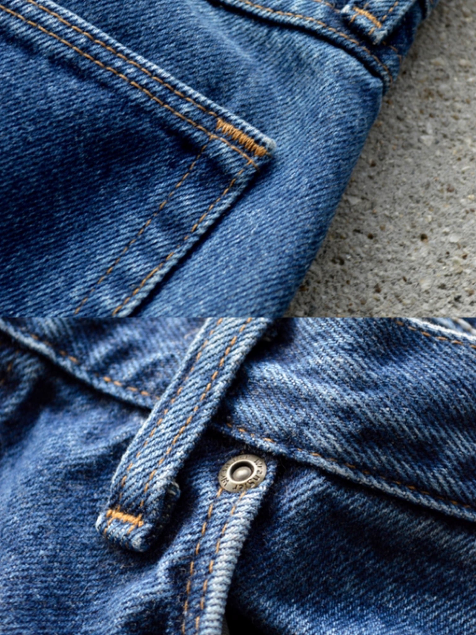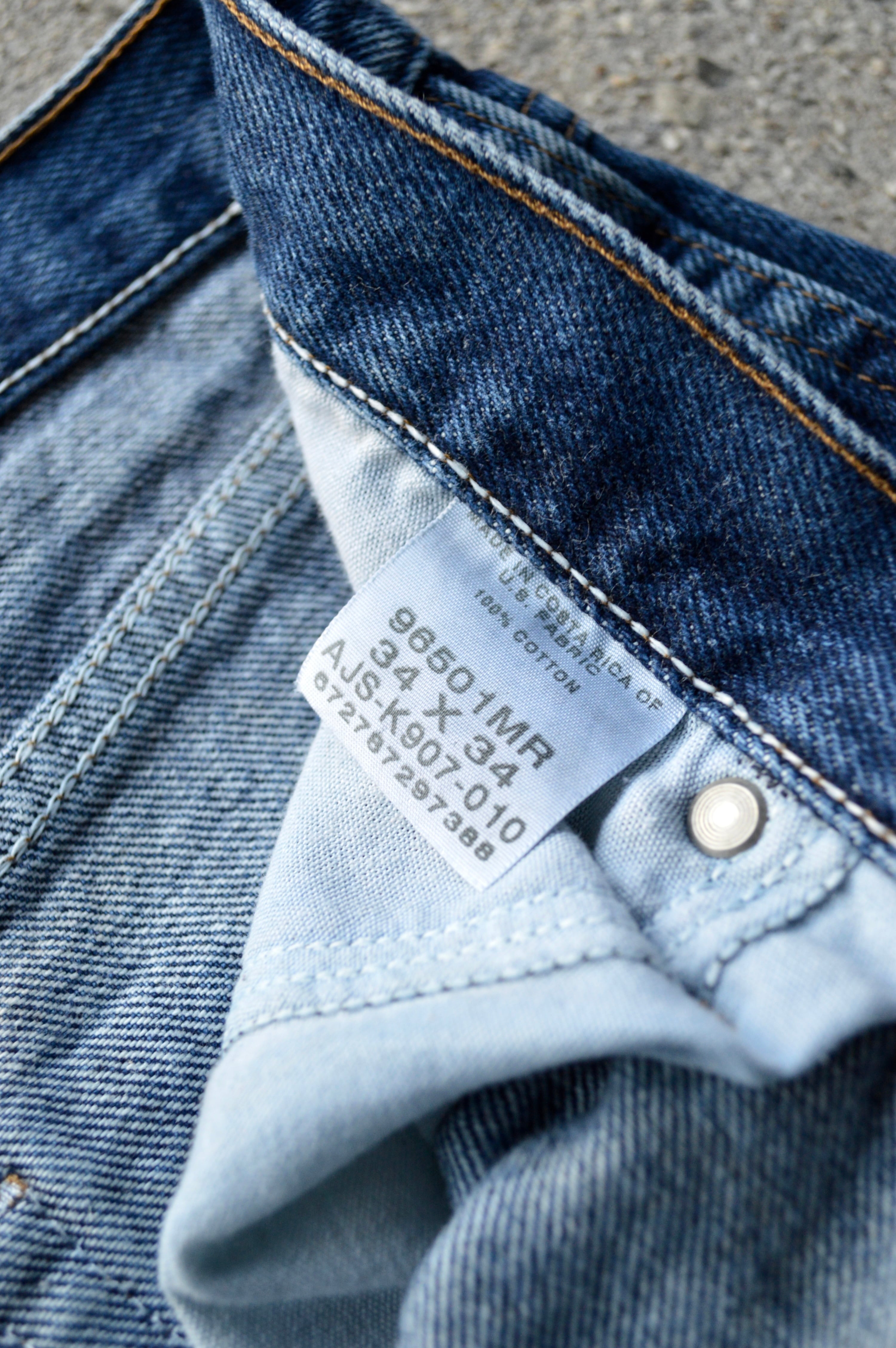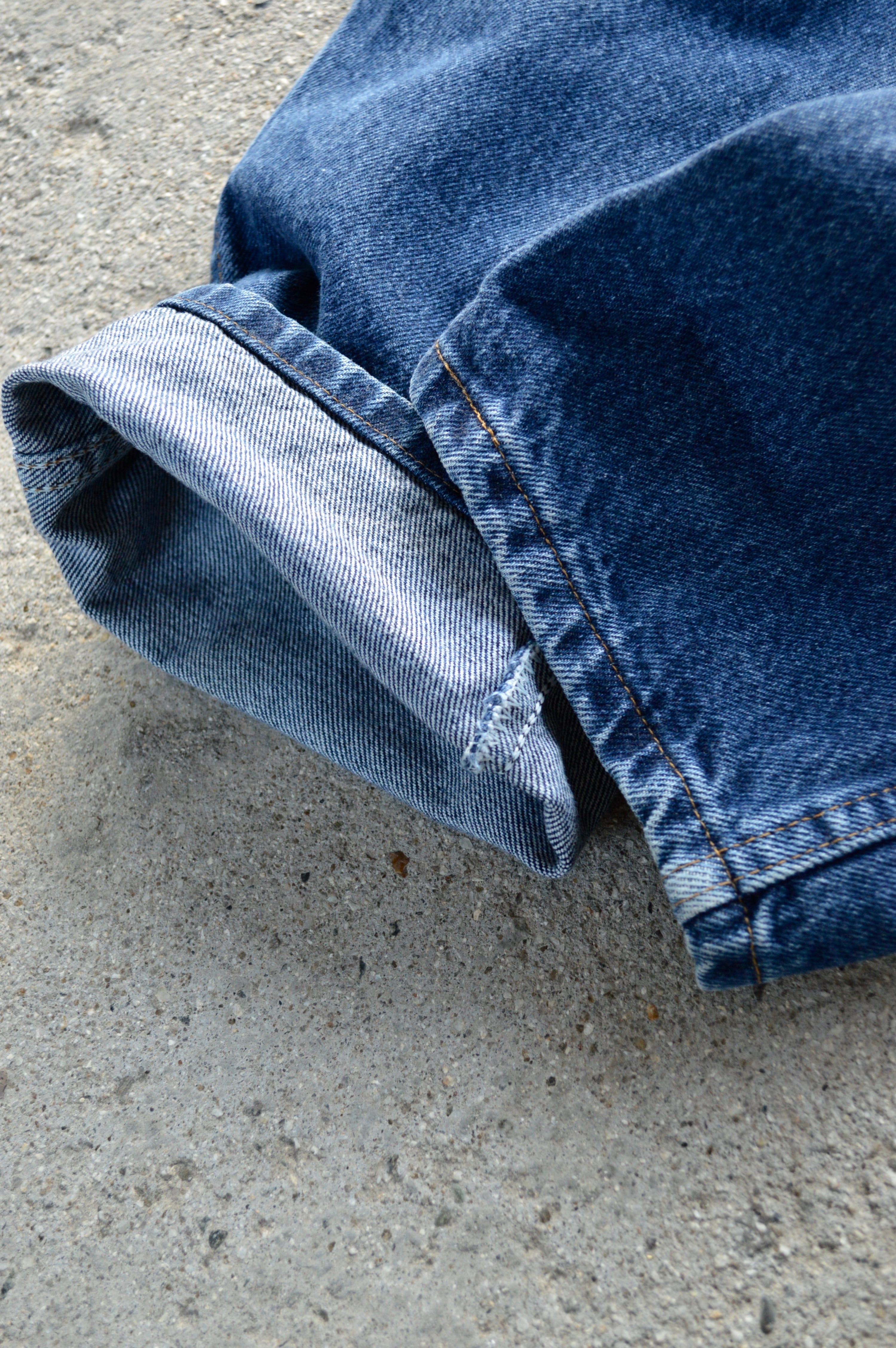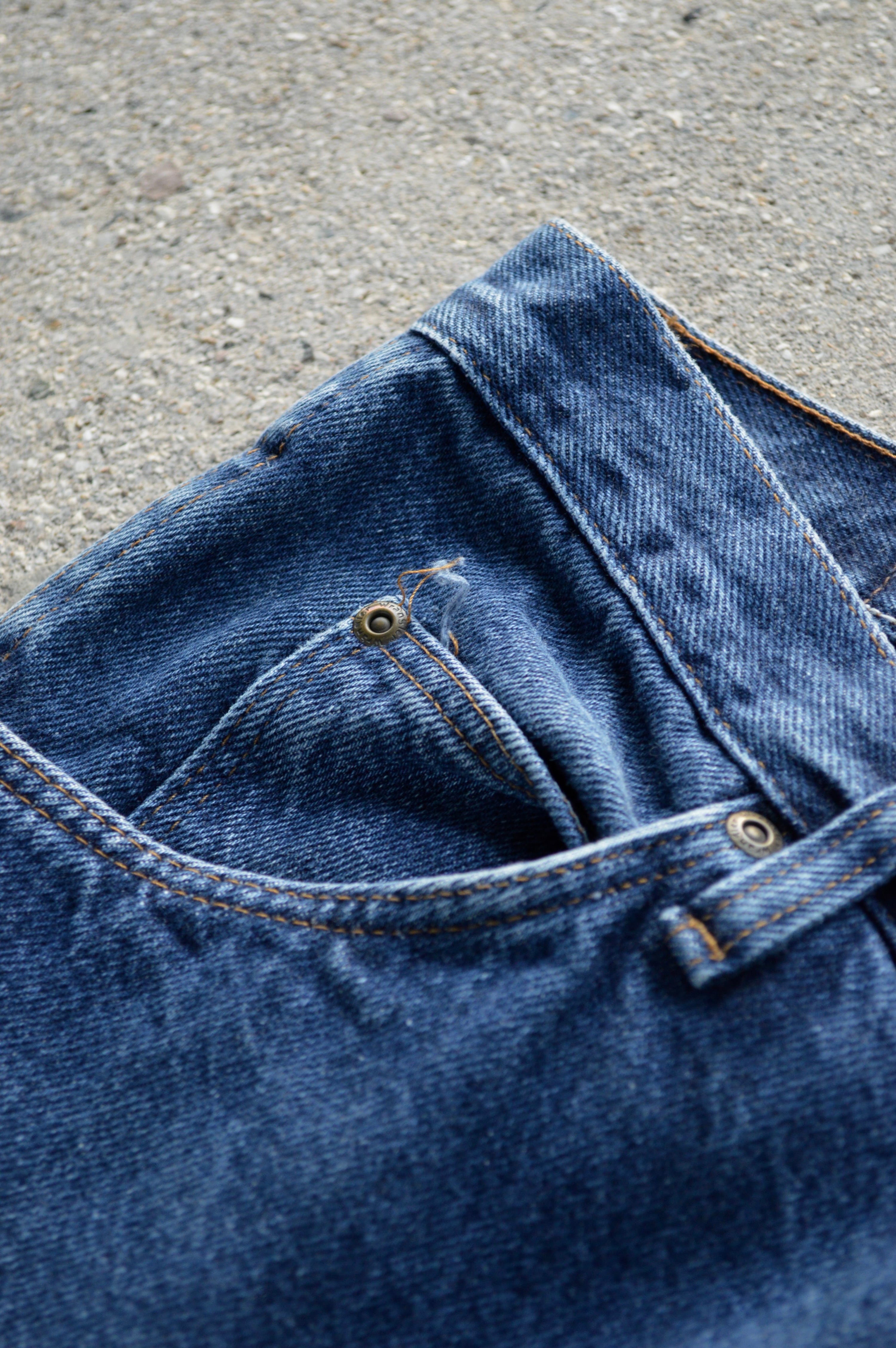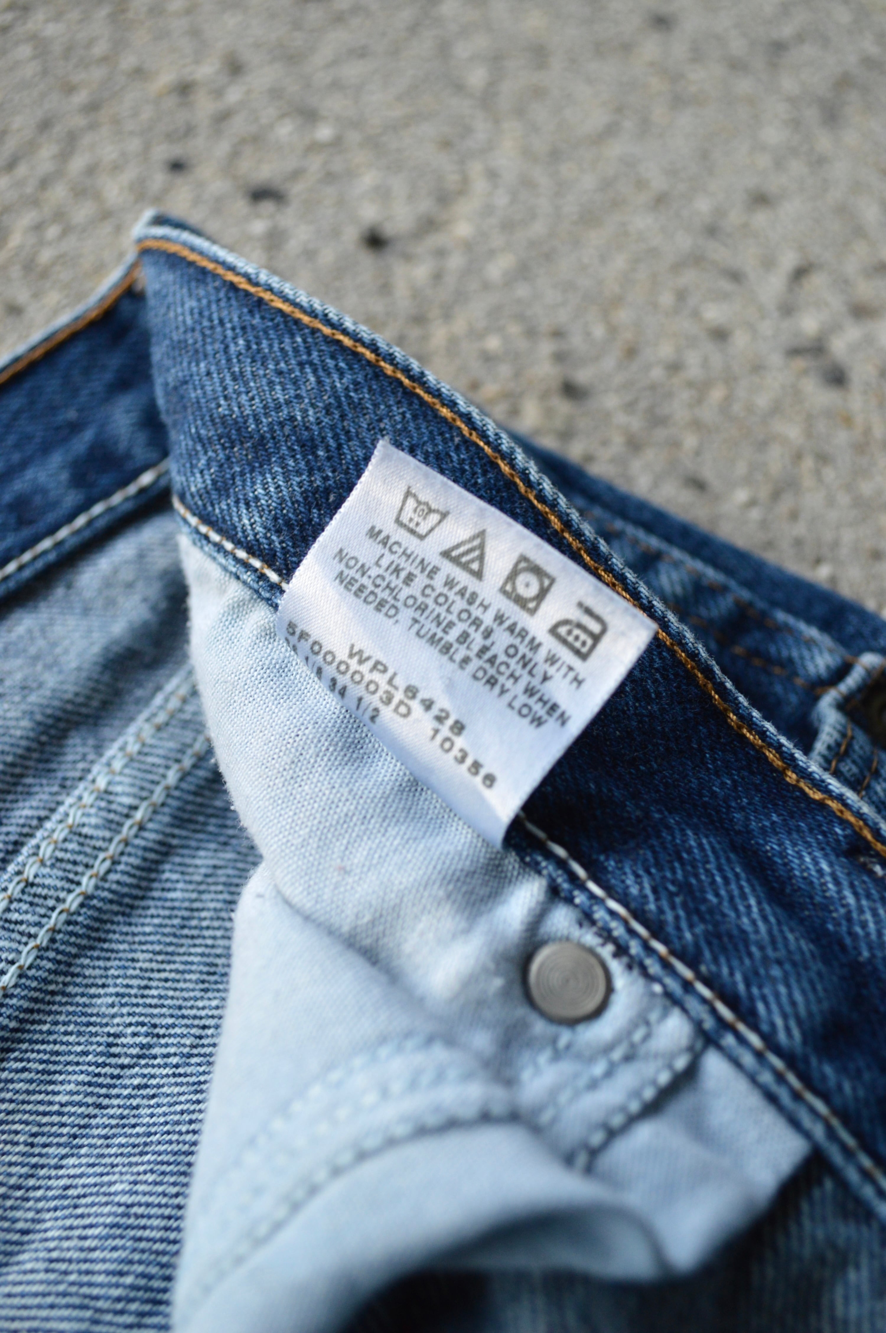 デニム生地全体の硬さは健在し、紙パッチ、ケアタグもしっかり残った一本になります。