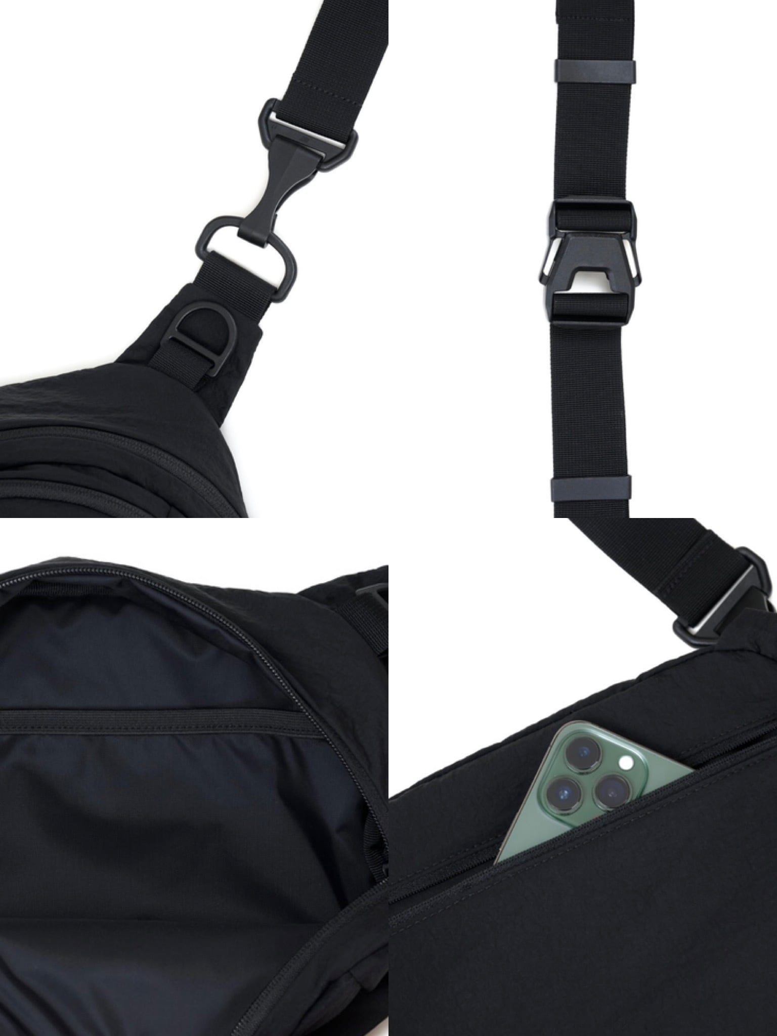 ストラップは長さ調整が可能で、ウエストポーチとしてもショルダーバッグとしても使用できる2WAY仕様となります。身体にフィットする設計で、移動の多い都市生活でも快適に使用できます。