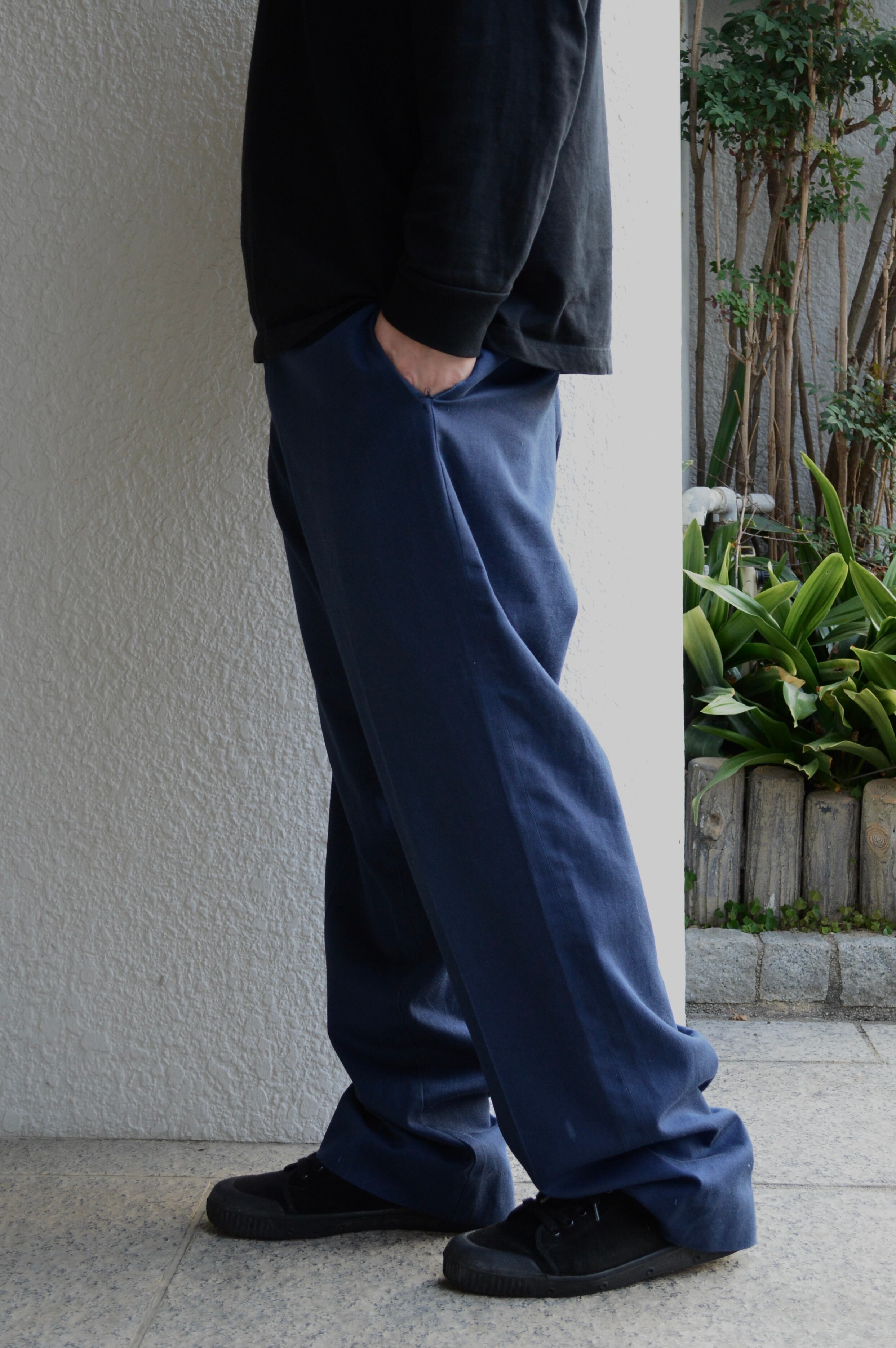 股上深く、ワタリも極太なワークツイルパンツ。