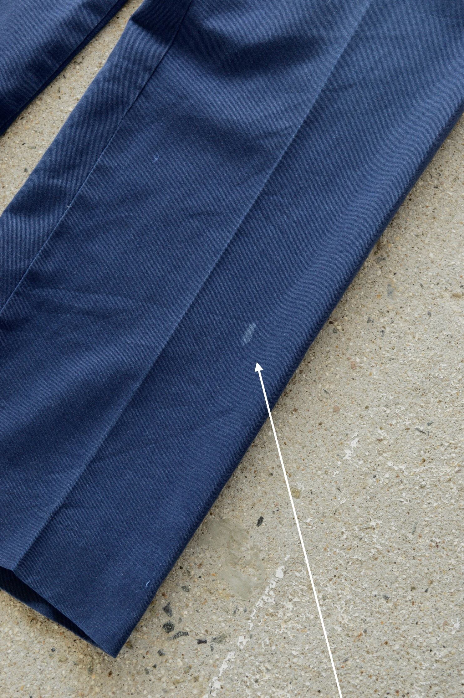 フェードの効いたネイビーで生地のやれ具合も仕上がった一本。