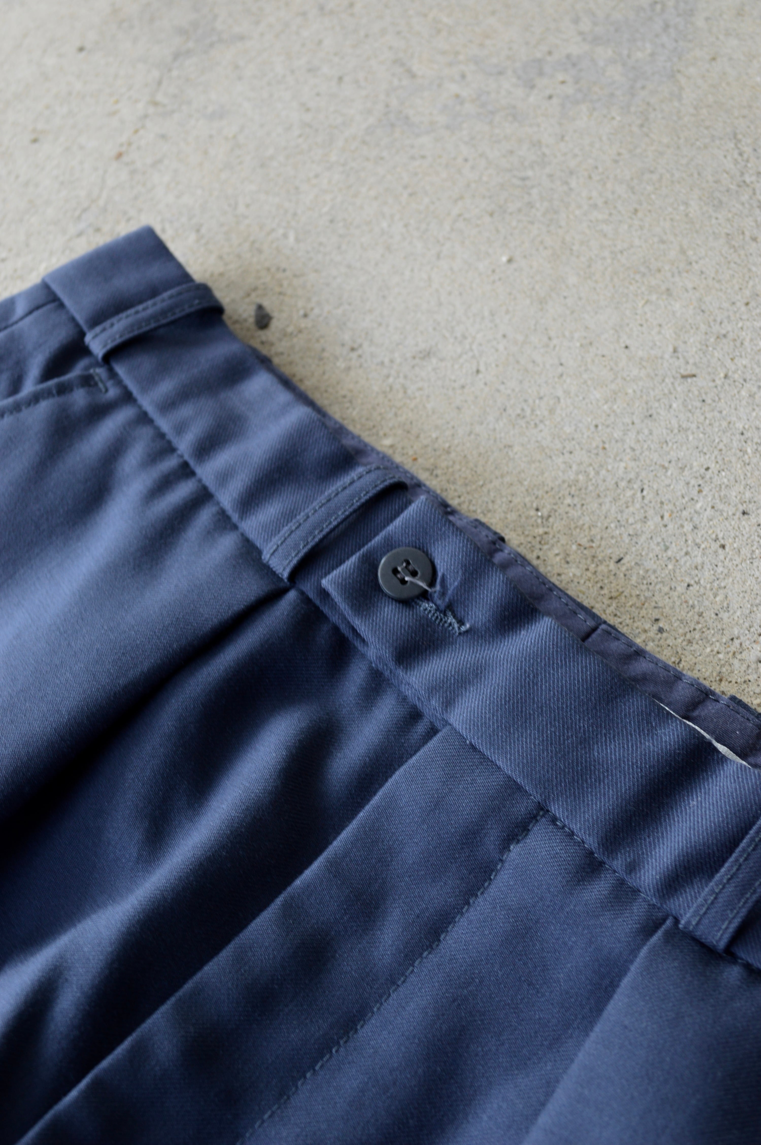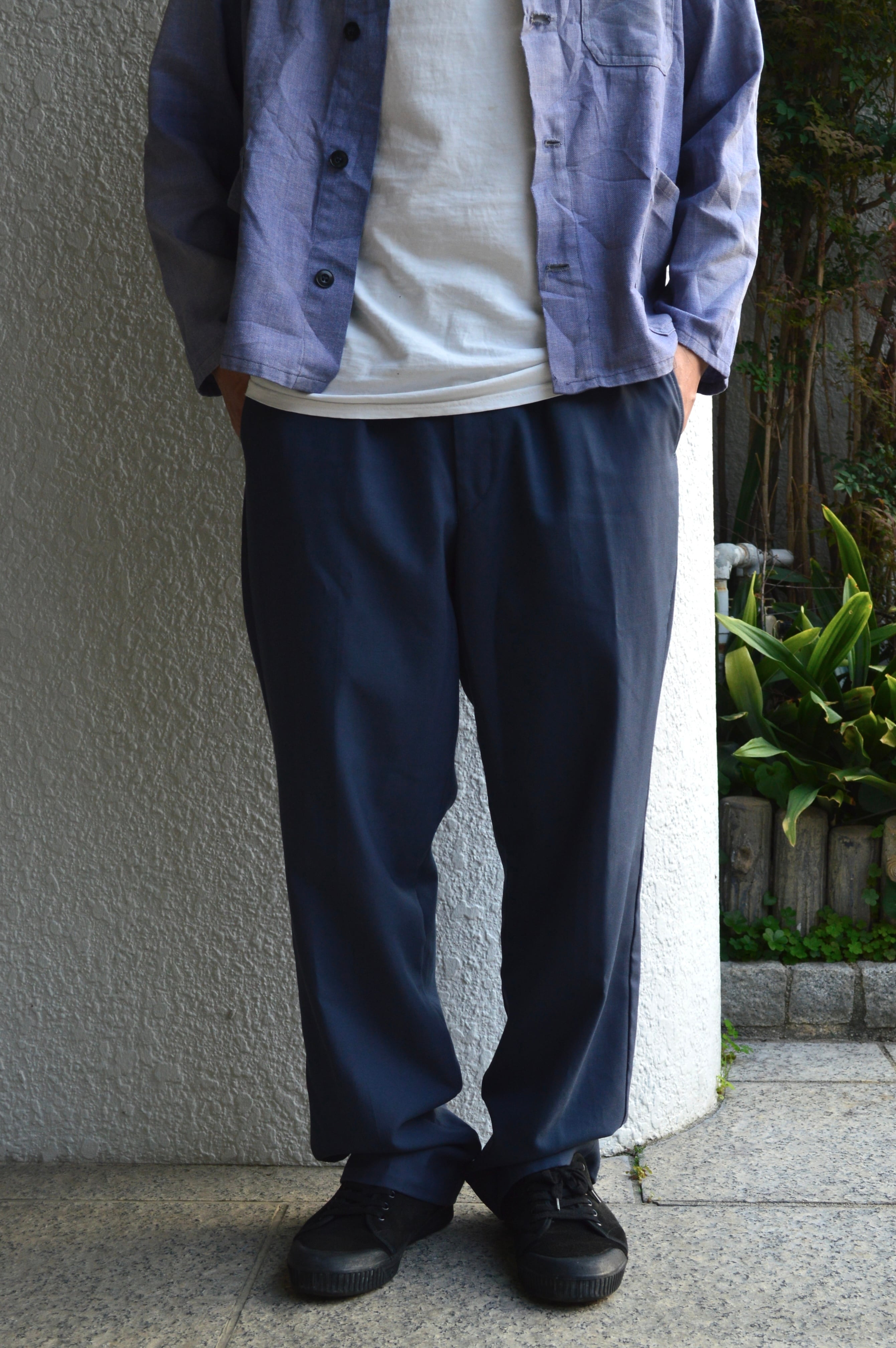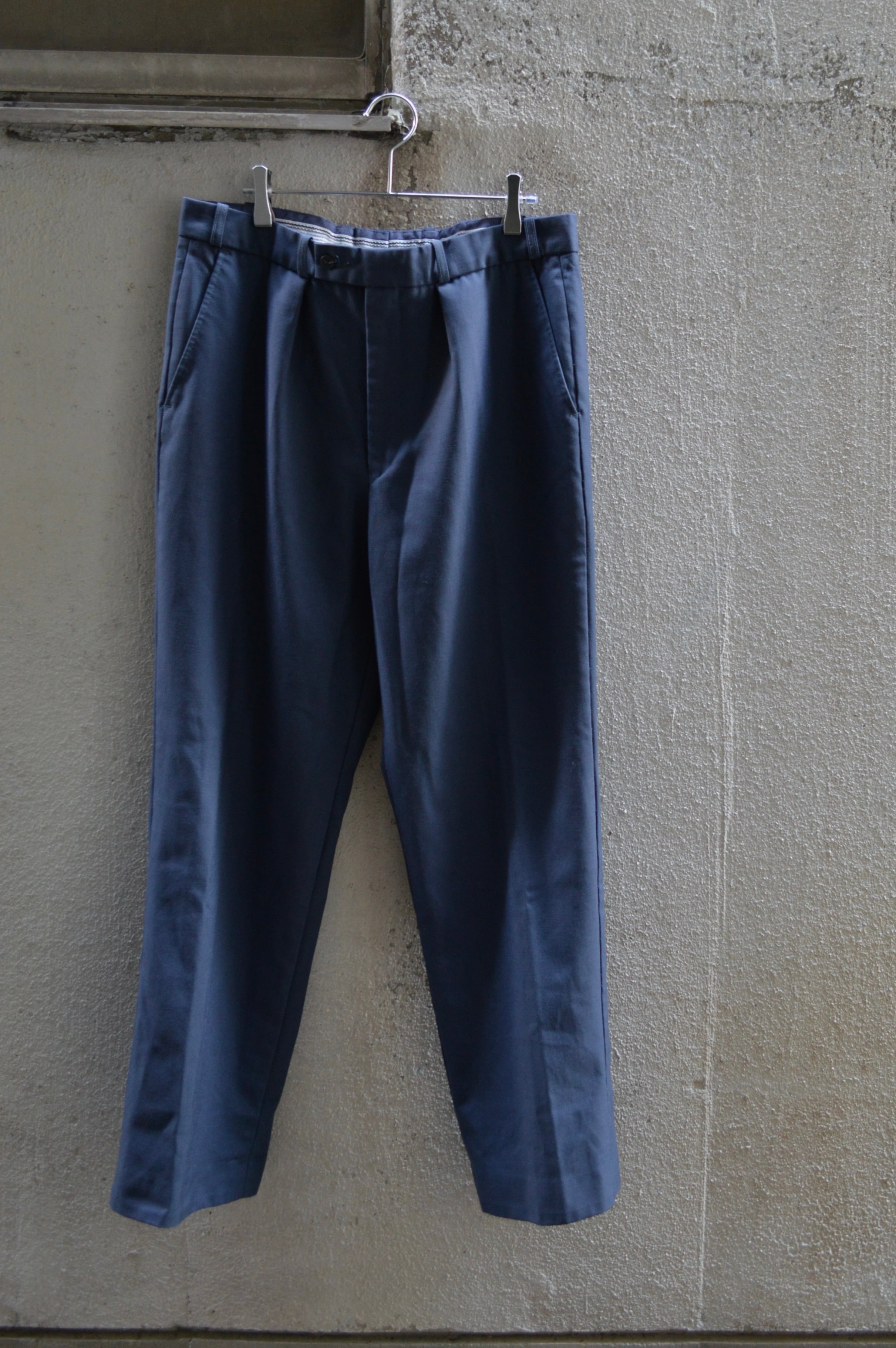 ウールをベースとした、ポリエステル混合のハリ感あるオールドスラックス。