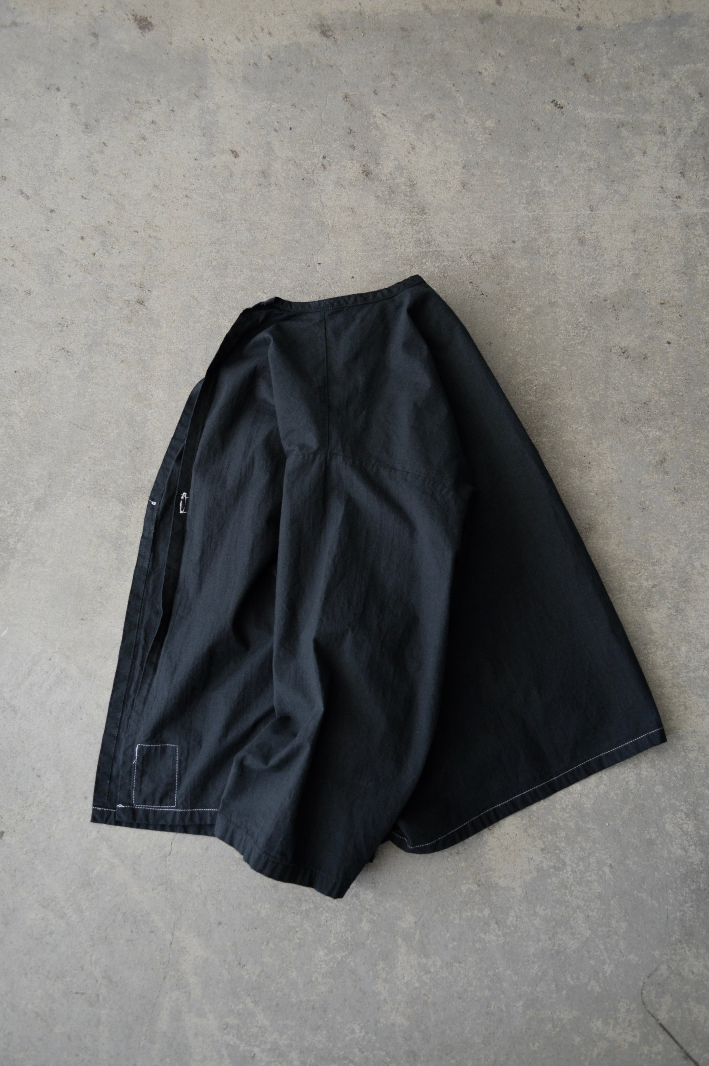 本来のロング丈からショート丈に変更し、首元を紐を排除した前開き仕様のカーディガンのように着用するハンテン型シャツ。