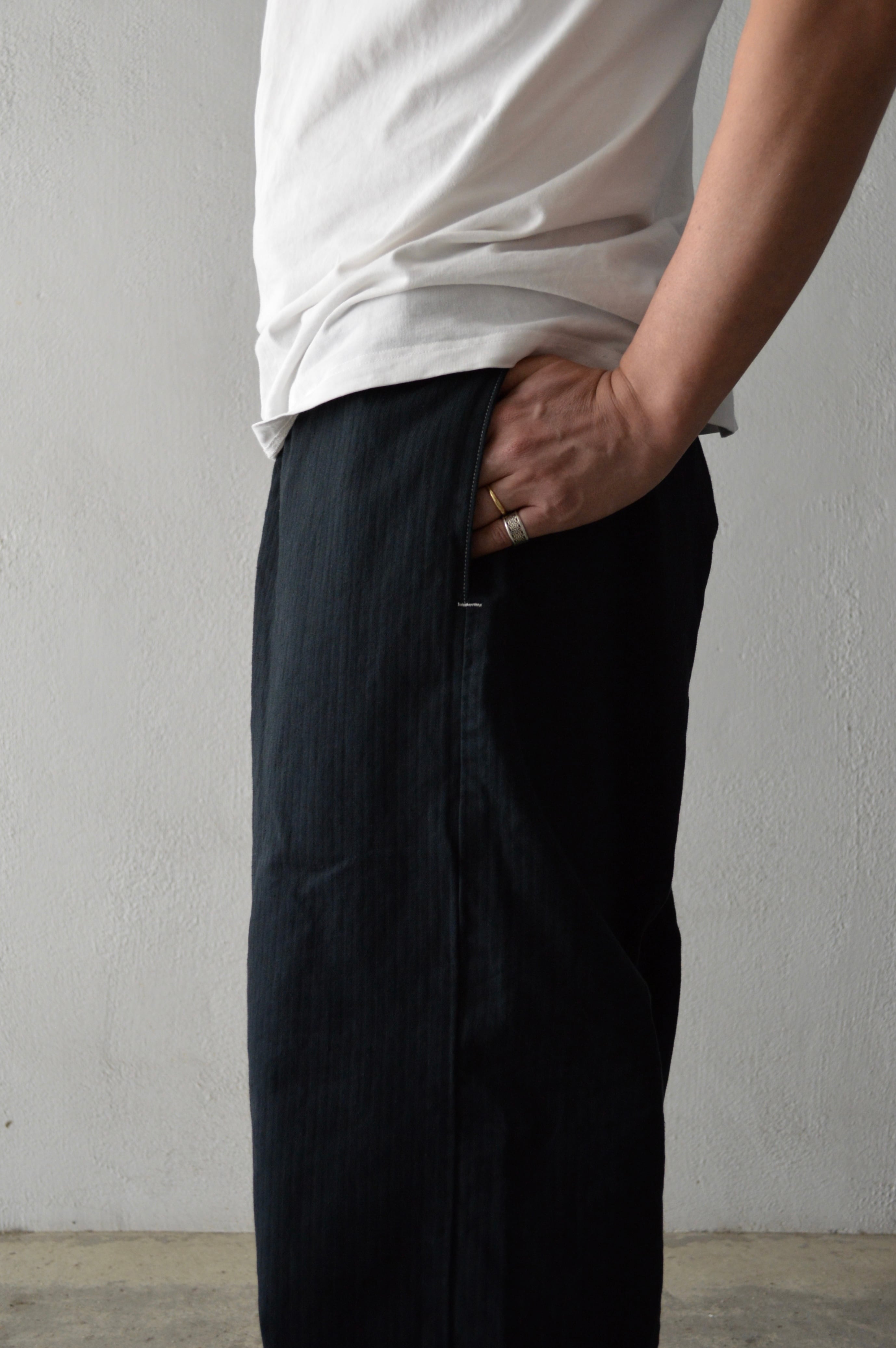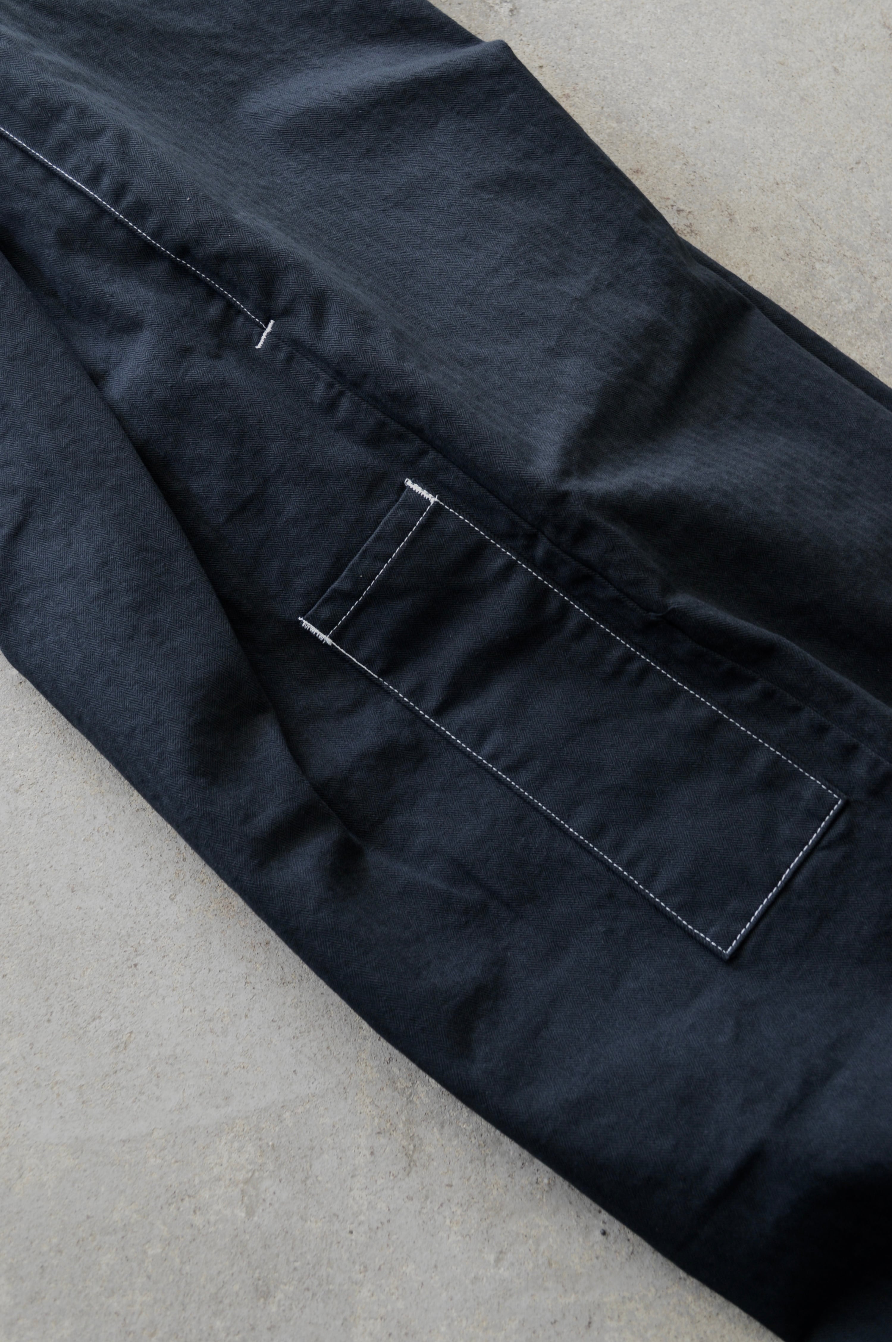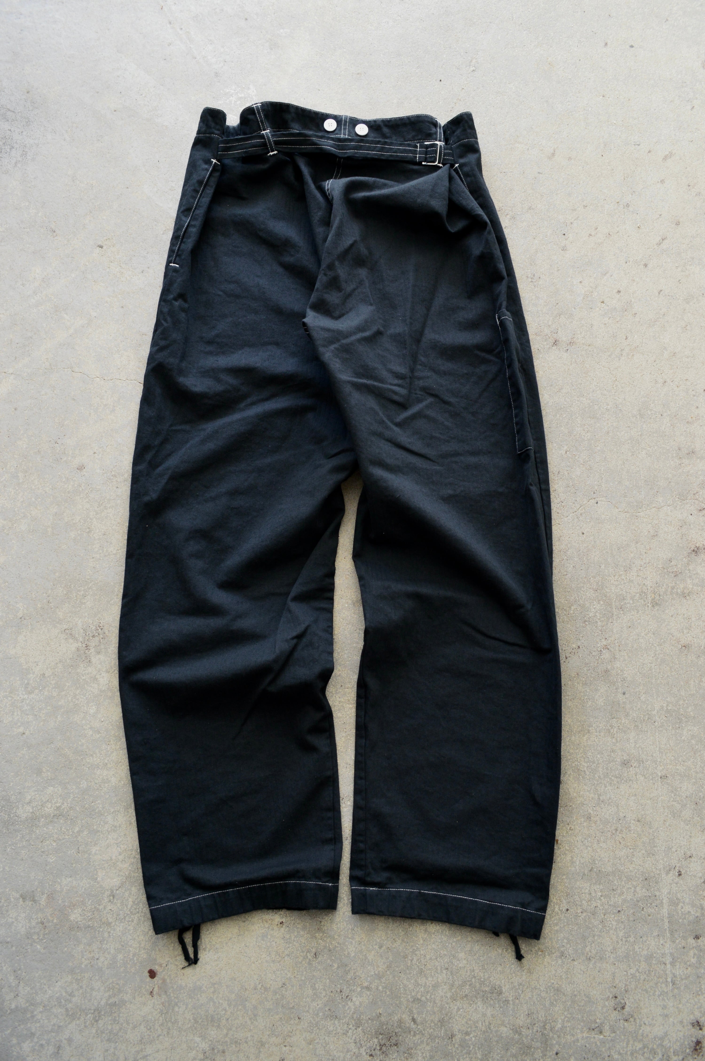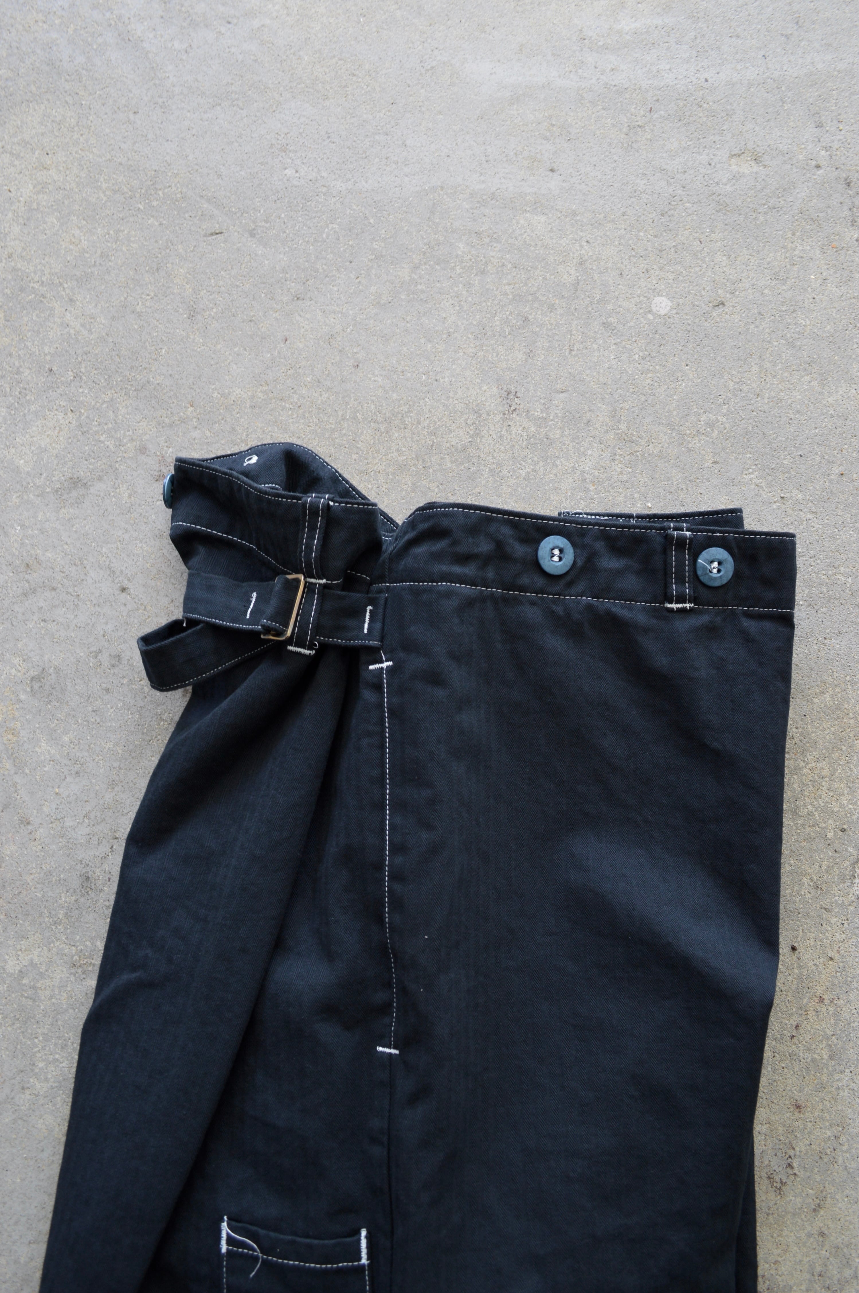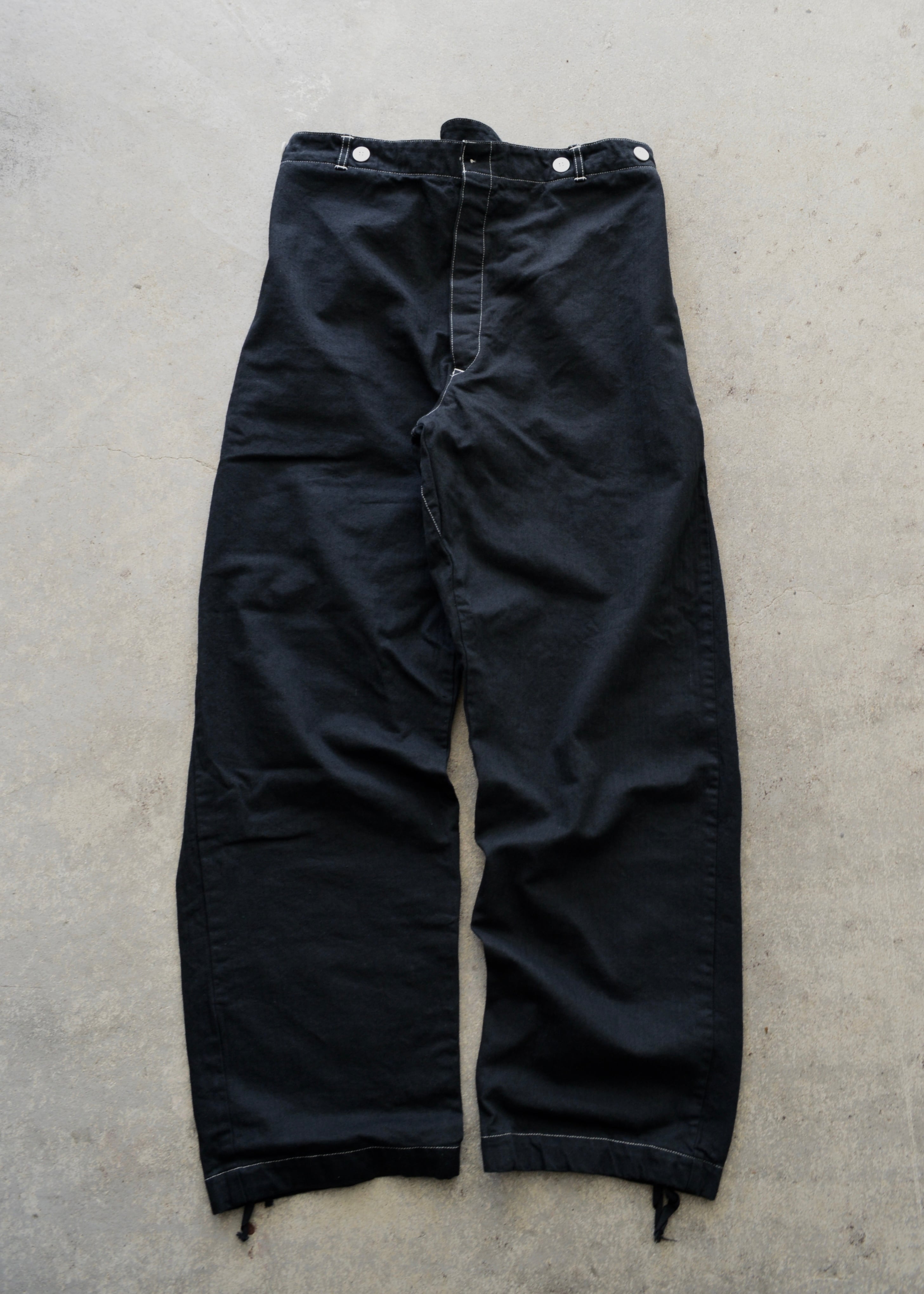 ドイツ軍1990年代のデッドストック品となる作業用、ヘリンボーンワークペインターパンツを黒染めしたカスタム製品。