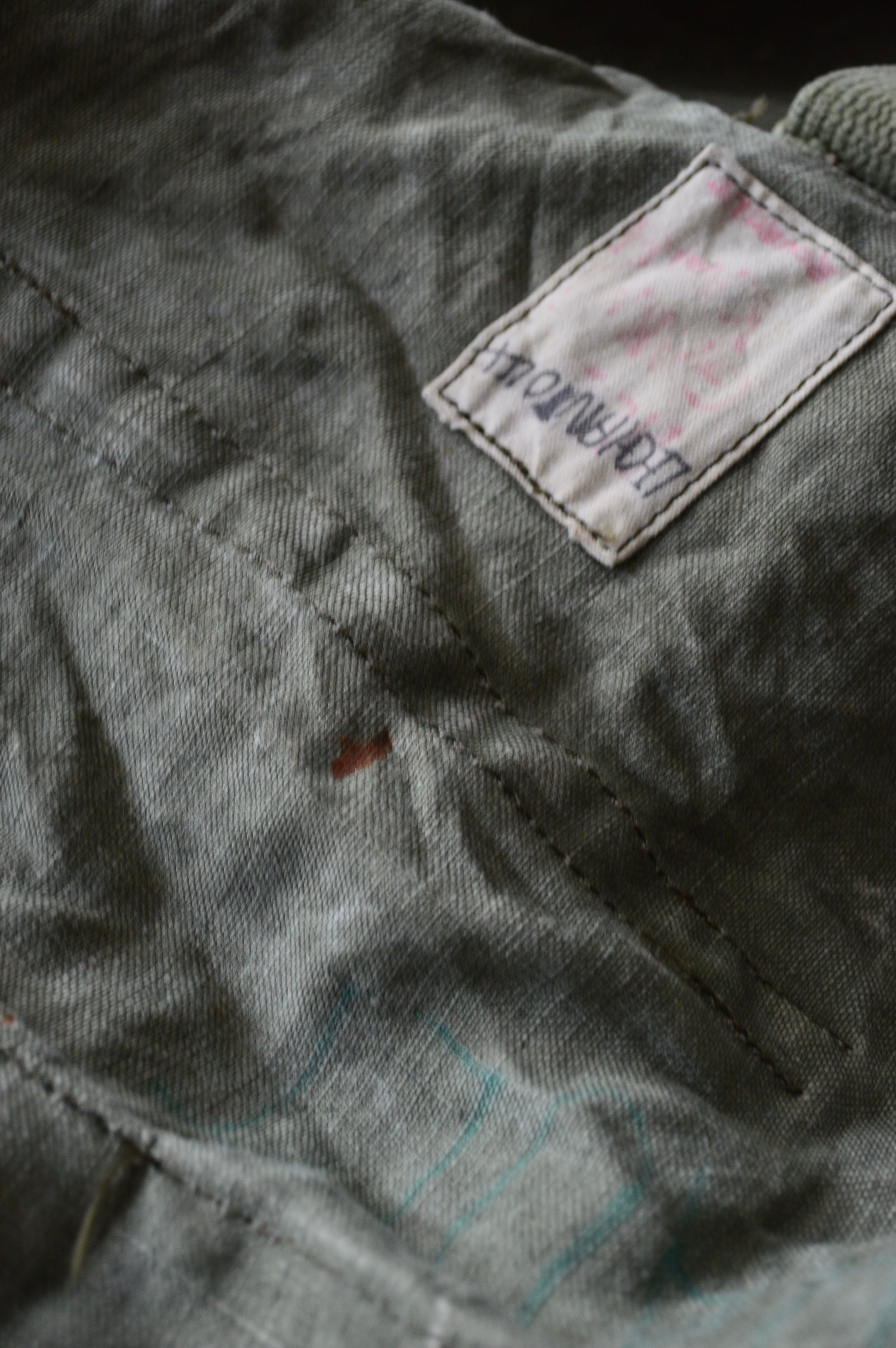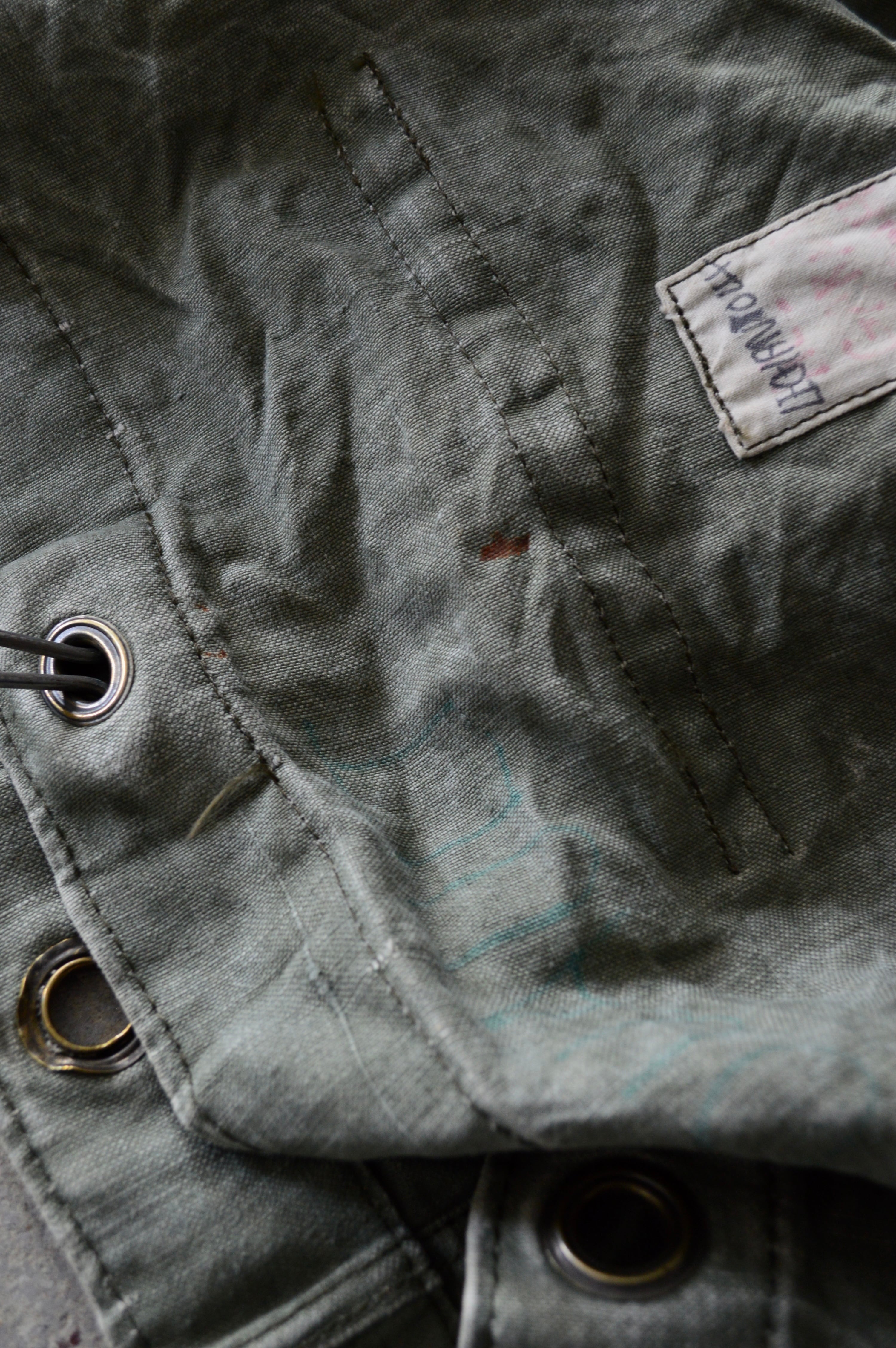 金属ハトメとフックによる堅牢なロック機能、手提げと肩掛けの2WAY仕様が特徴で、兵士のステンシルやヴィンテージ特有のヤレ感が「一点物」の雰囲気を持つ大容量バッグとなります。