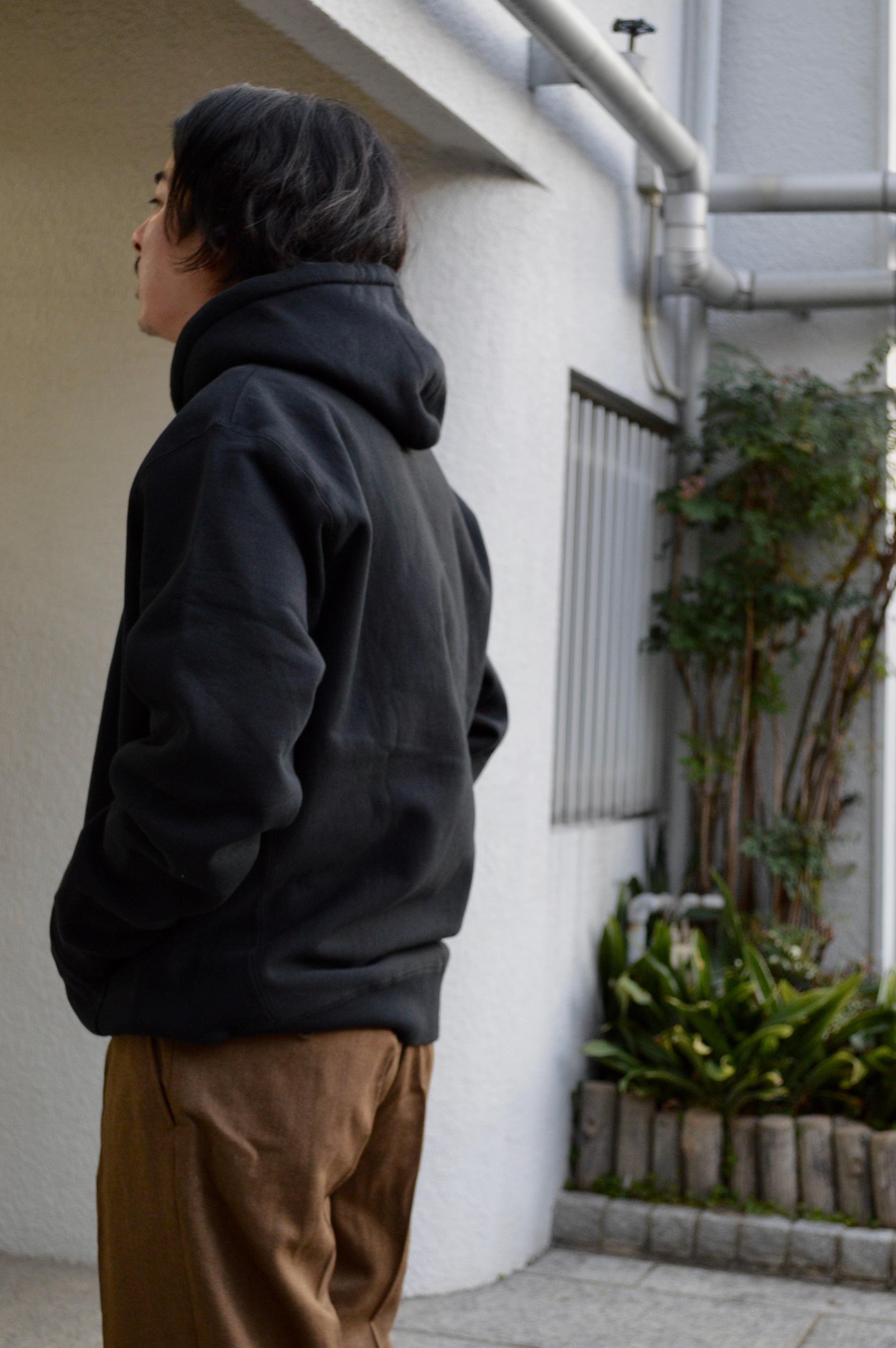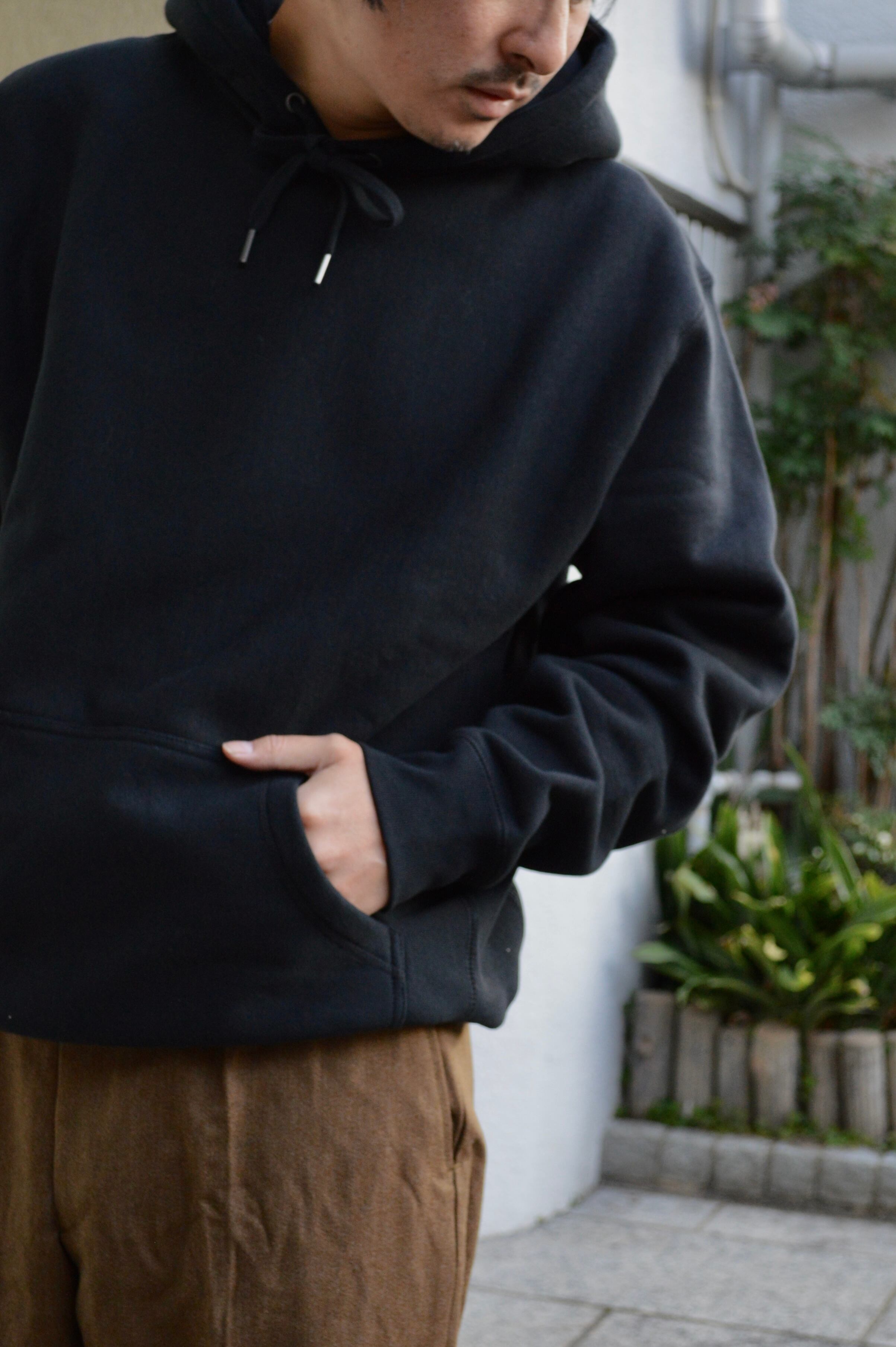 程良いルーズフィット感と袖先のたまりのバランス、目の詰まった地厚なスウェット素材、上質な裏起毛の質感など総合的にハイクオリティな一着です。