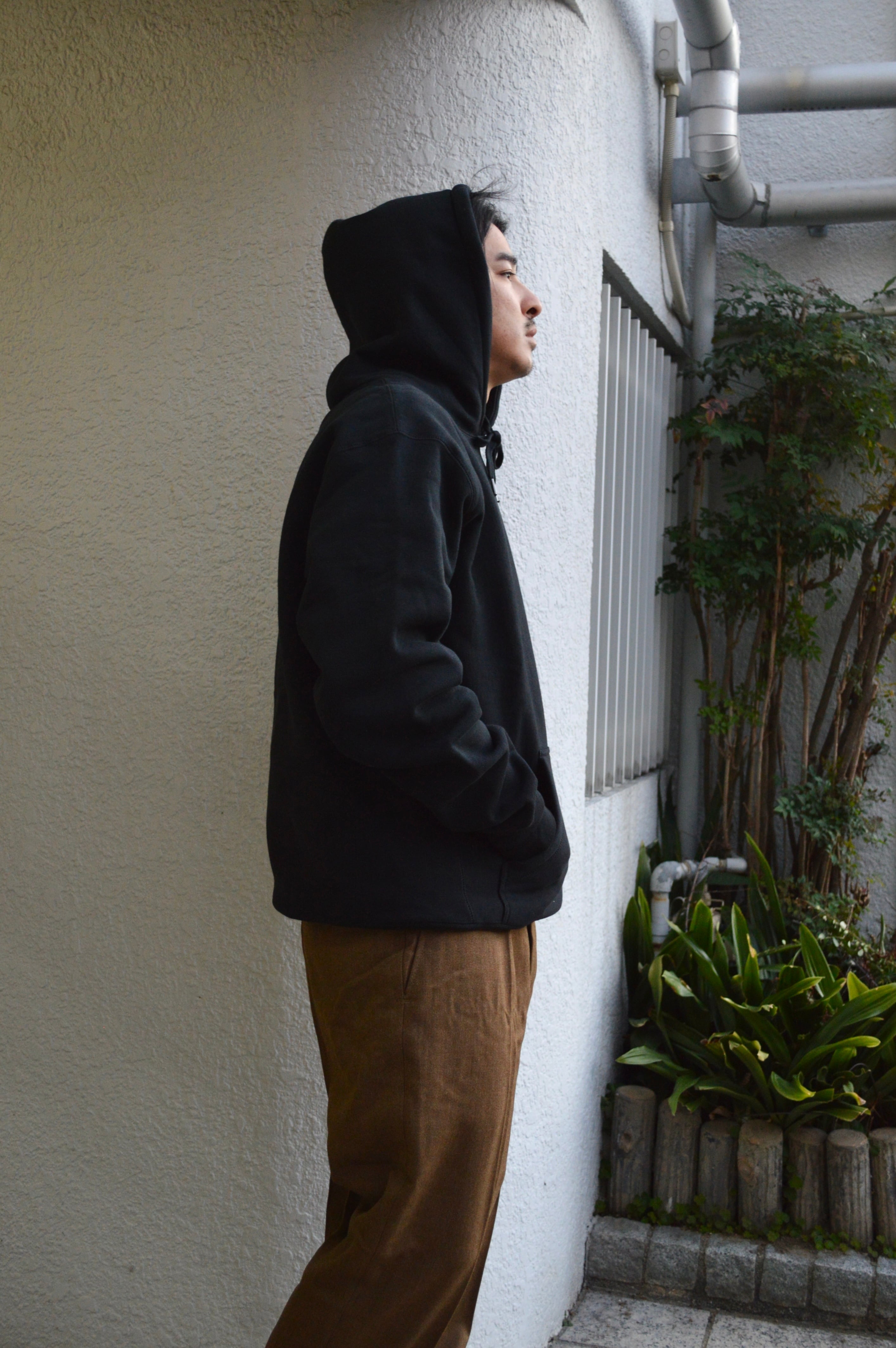 INDEPENDENT TRADING CROSS GRAIN HOODIE 450GM ULTRA HEAVY WEIGHT パーカー ヘビーウエイト リバースウイーブ BLACK